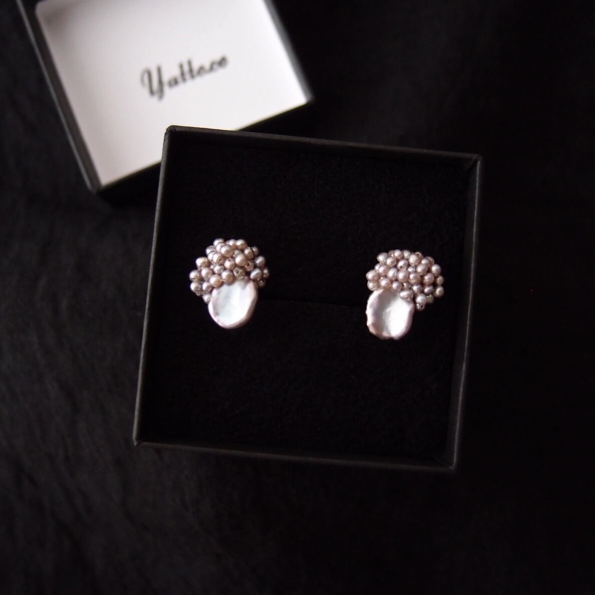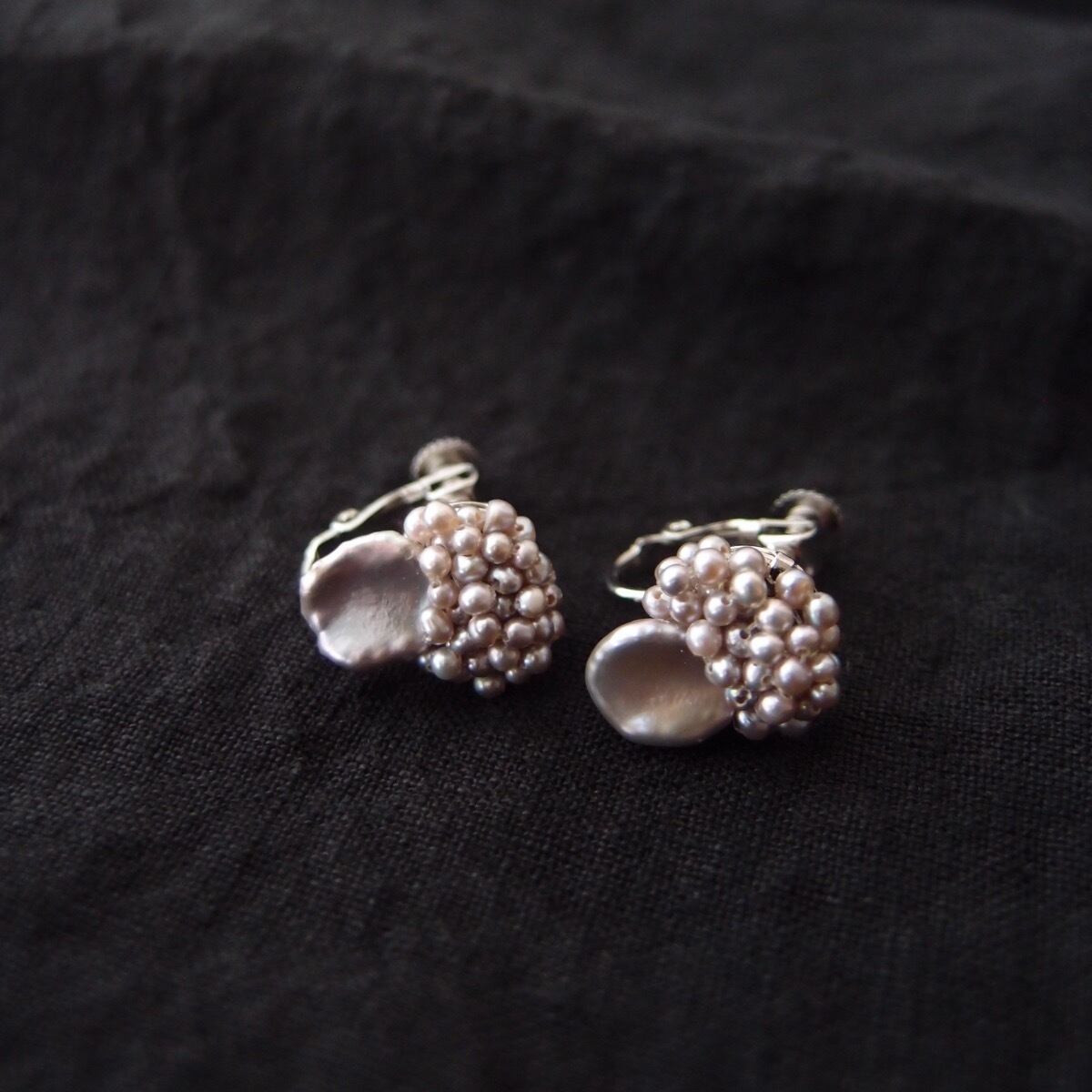 【真珠刺繍/イヤリング】petal pearl × seed pearl(gray)