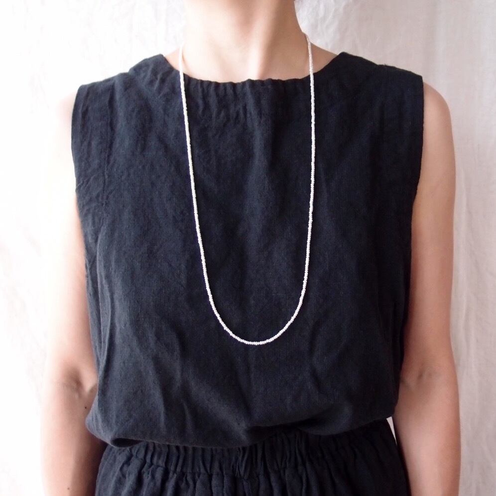 シンプルに通した真珠のロングネックレスです。