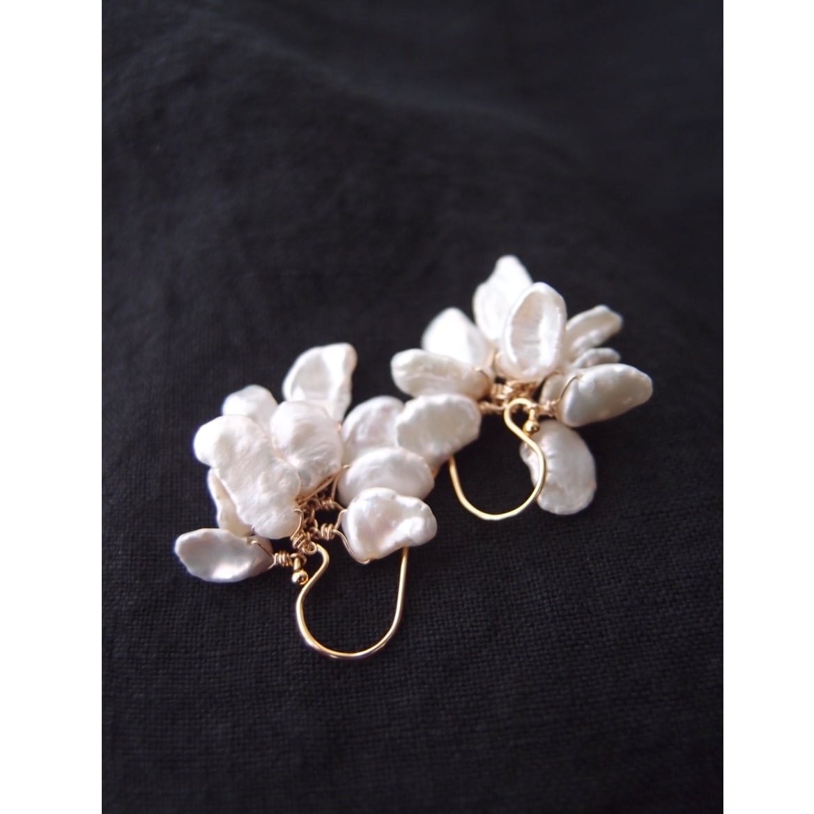 Petit Petal Pearl Earrings【K14gf】花びらパールのふさふさピアス/medium
