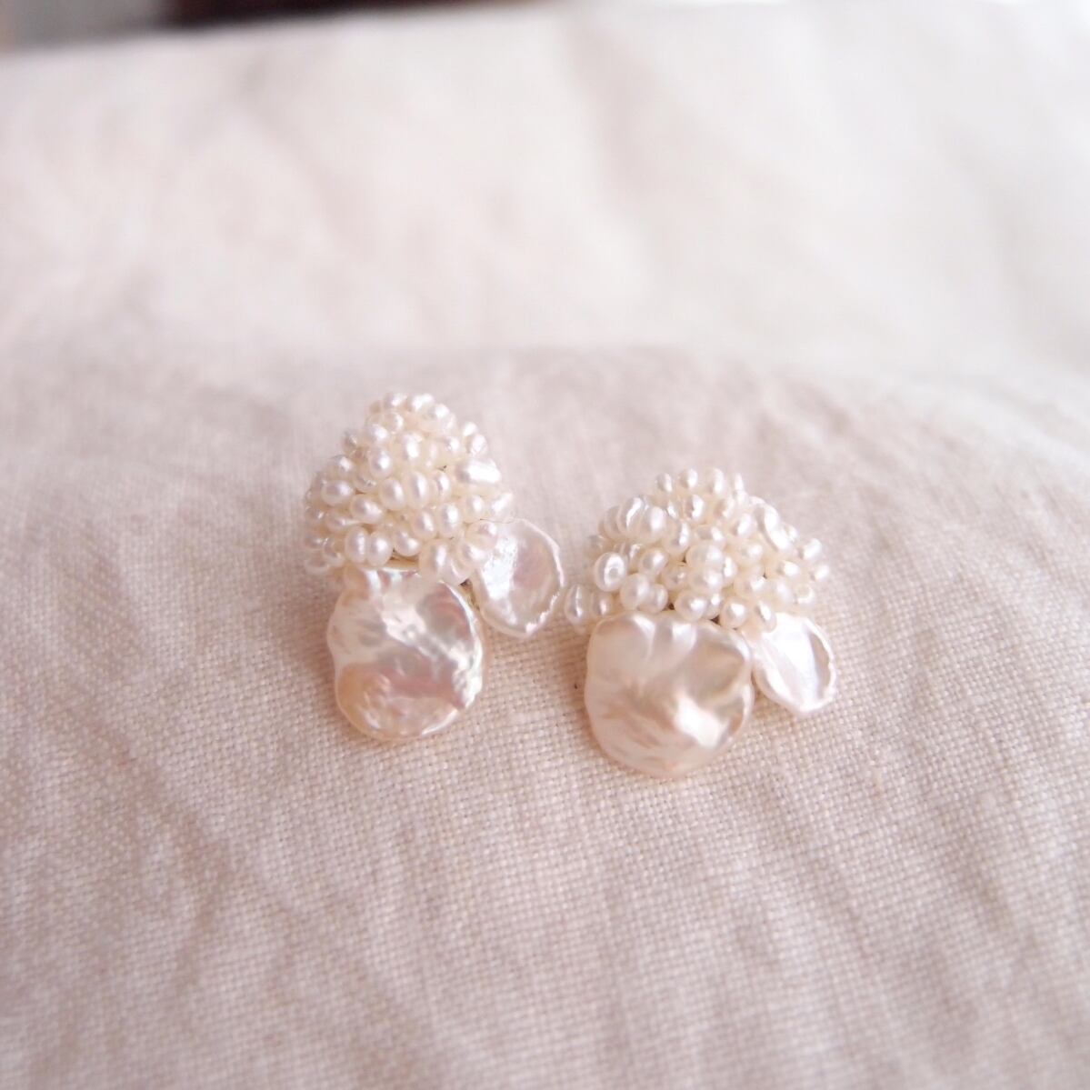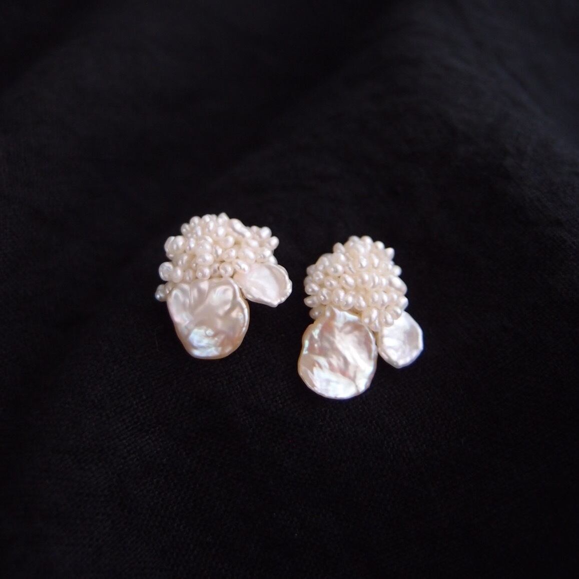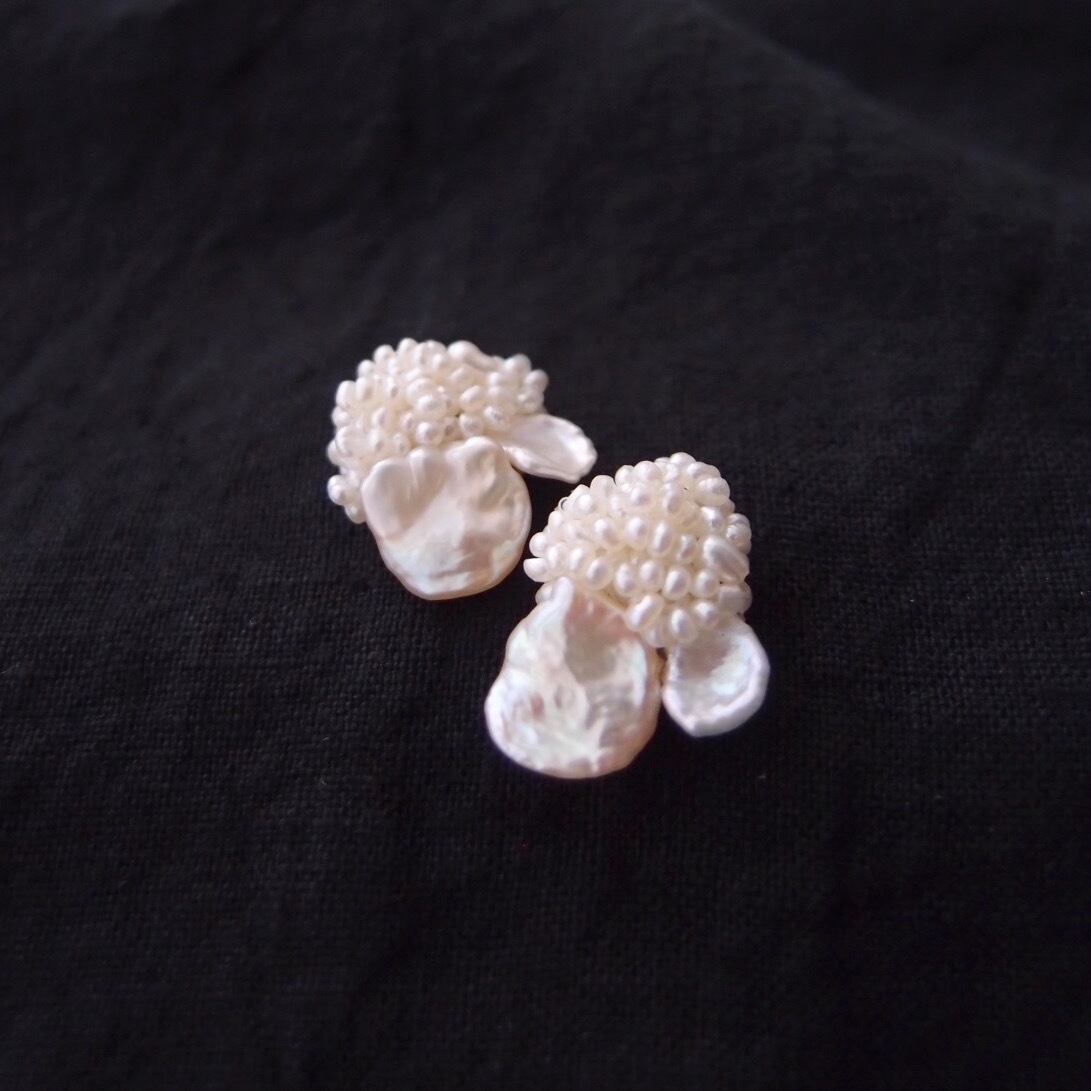 【真珠の刺繍ピアス】petit petal × seed pearl(MIX)