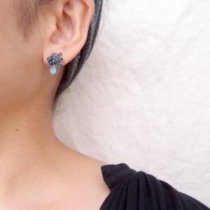 アクセントをつけたブルーグレーの刺繍ピアス。