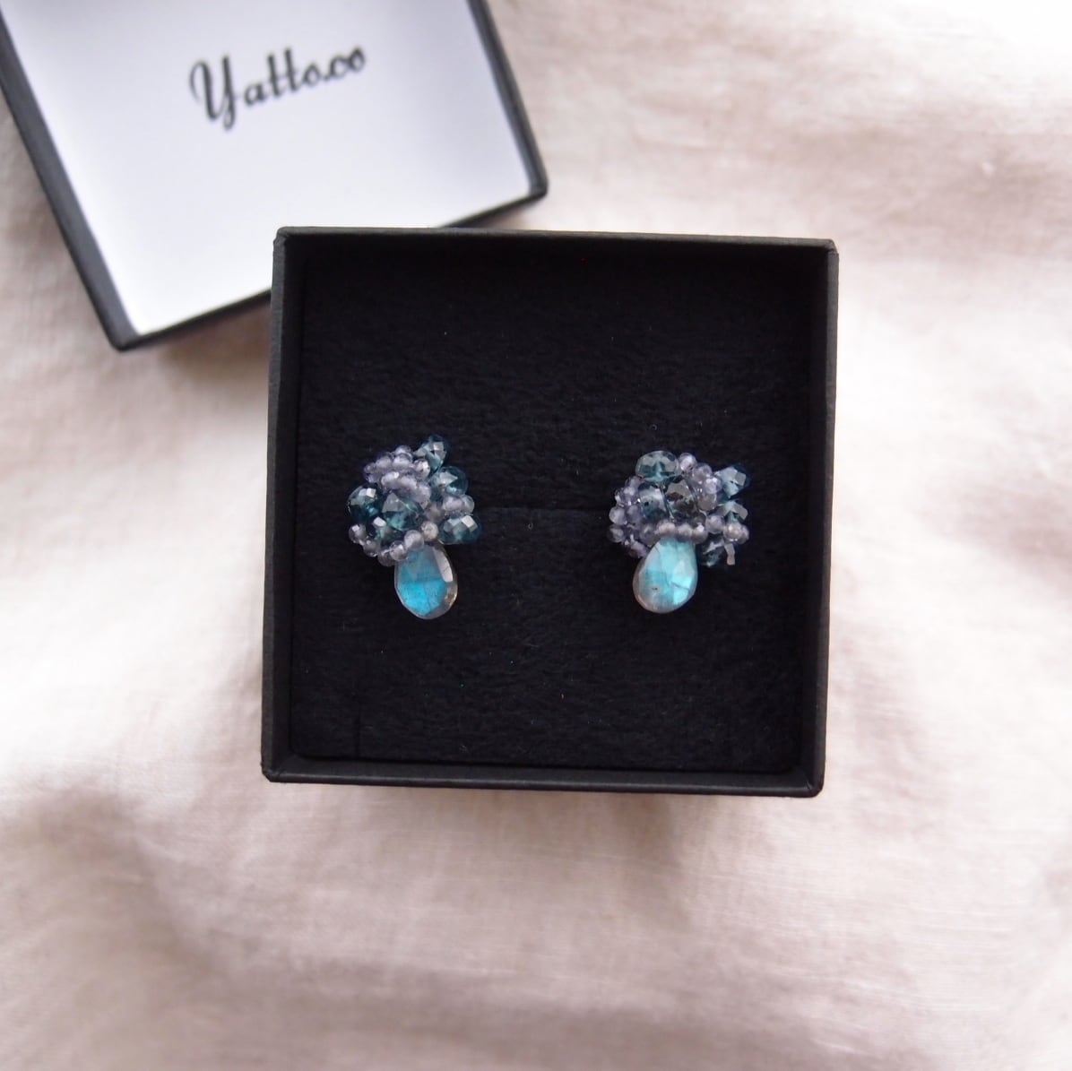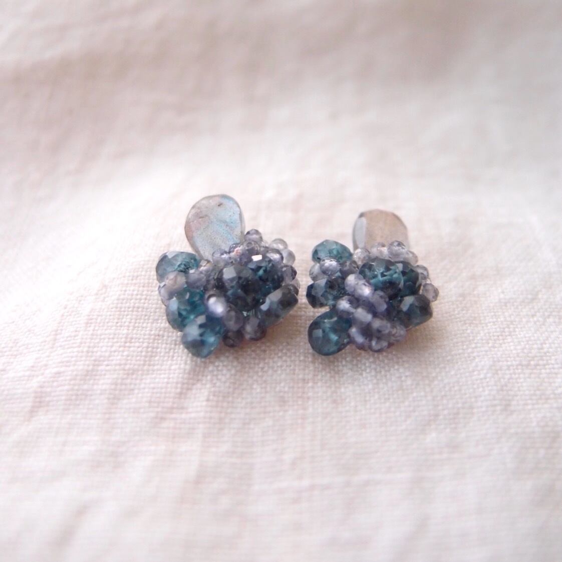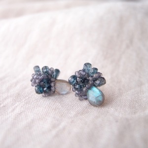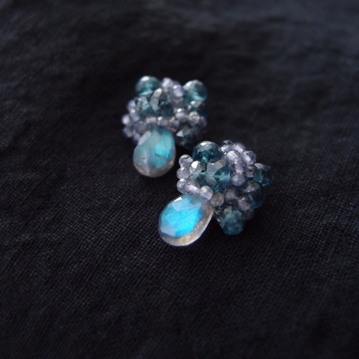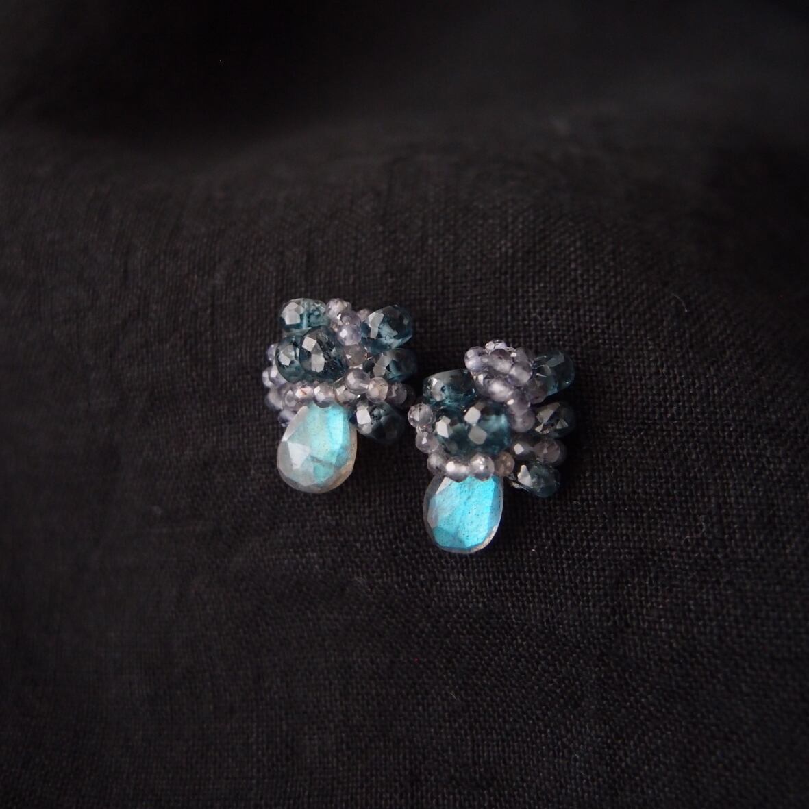 【天然石刺繍/ピアス】labradorite × kyanite × iolite