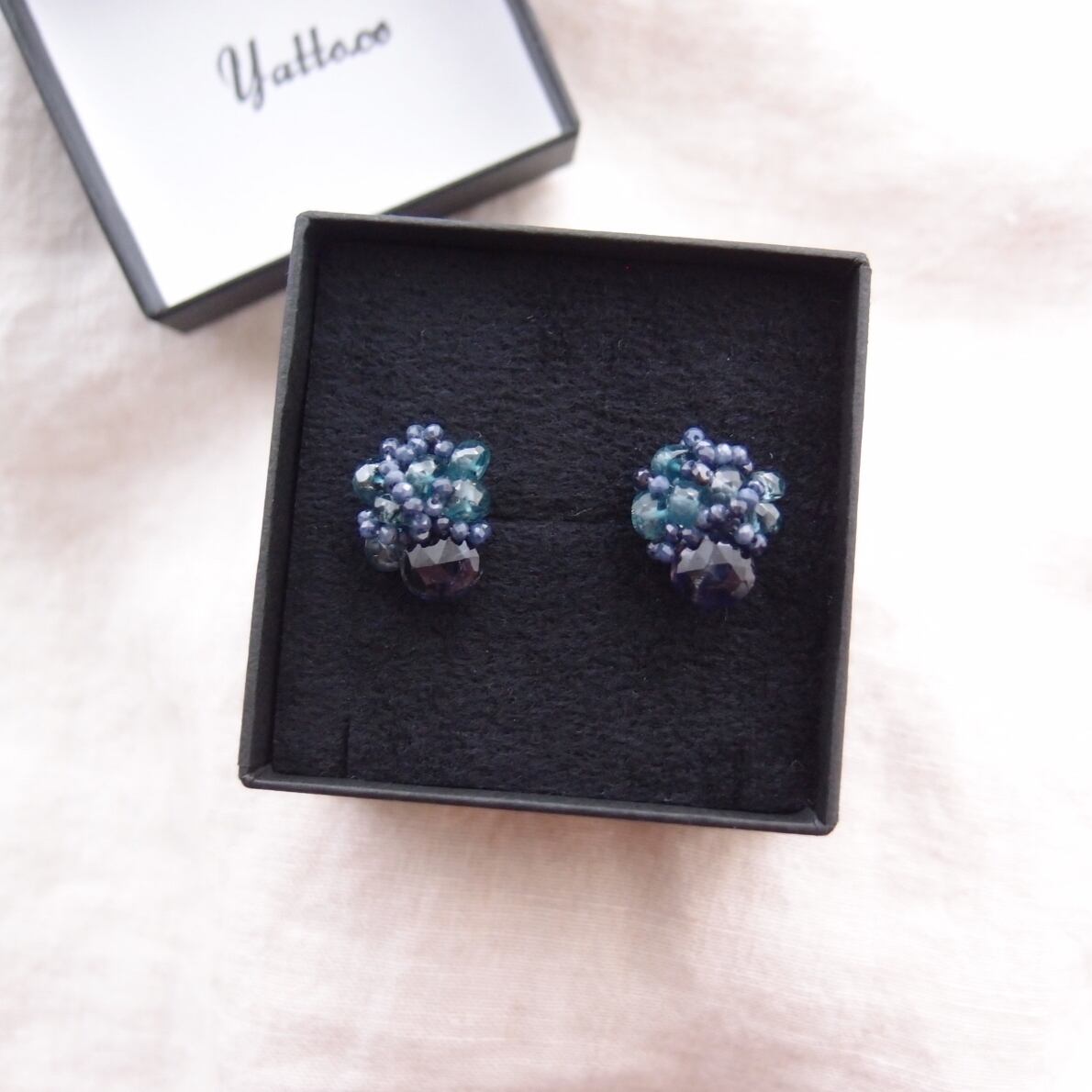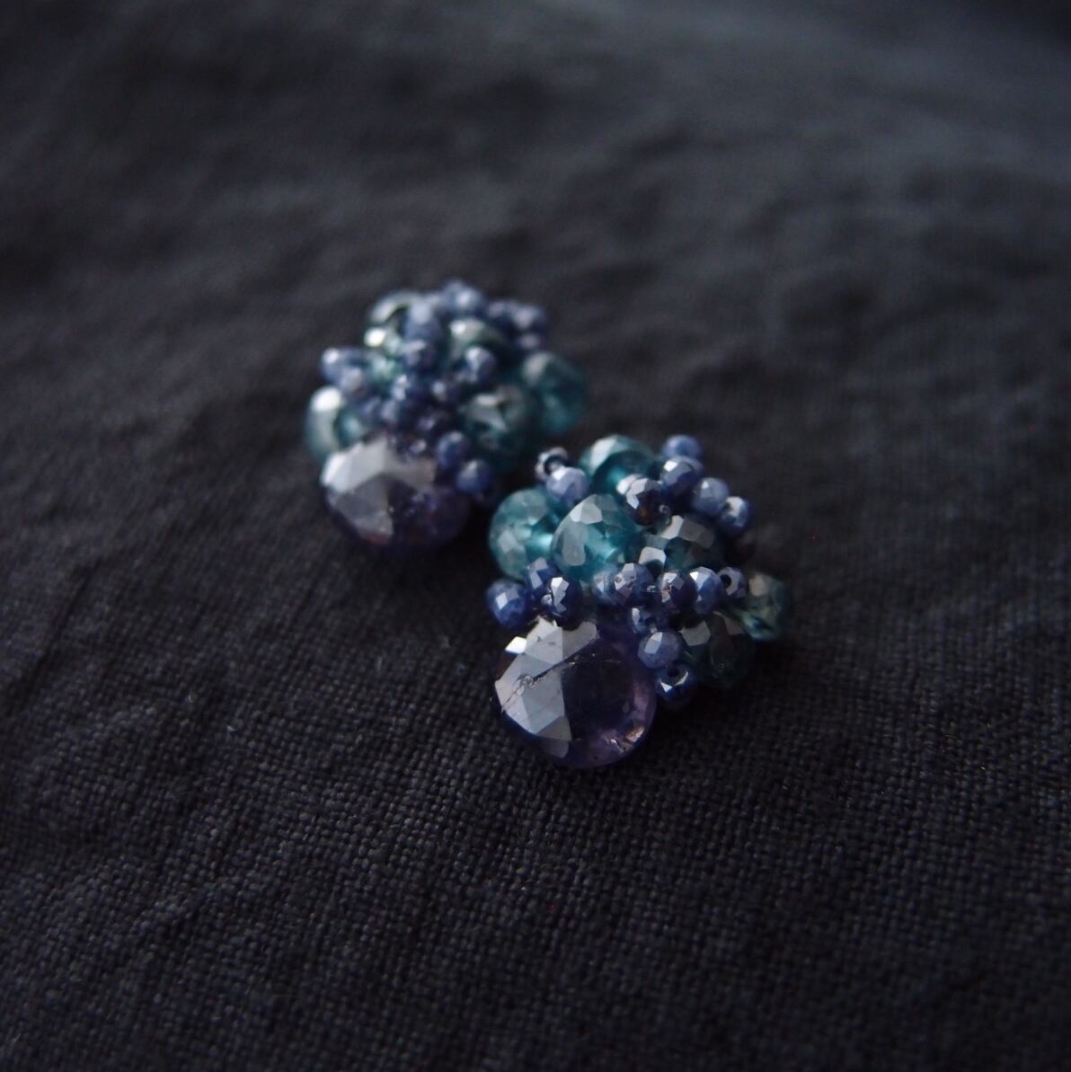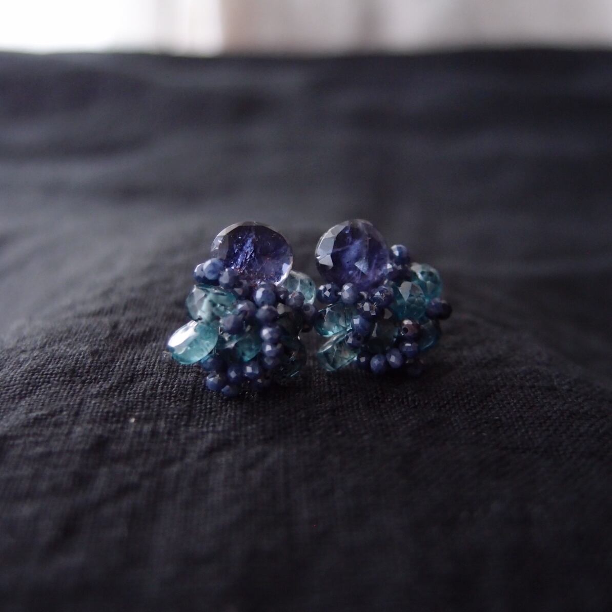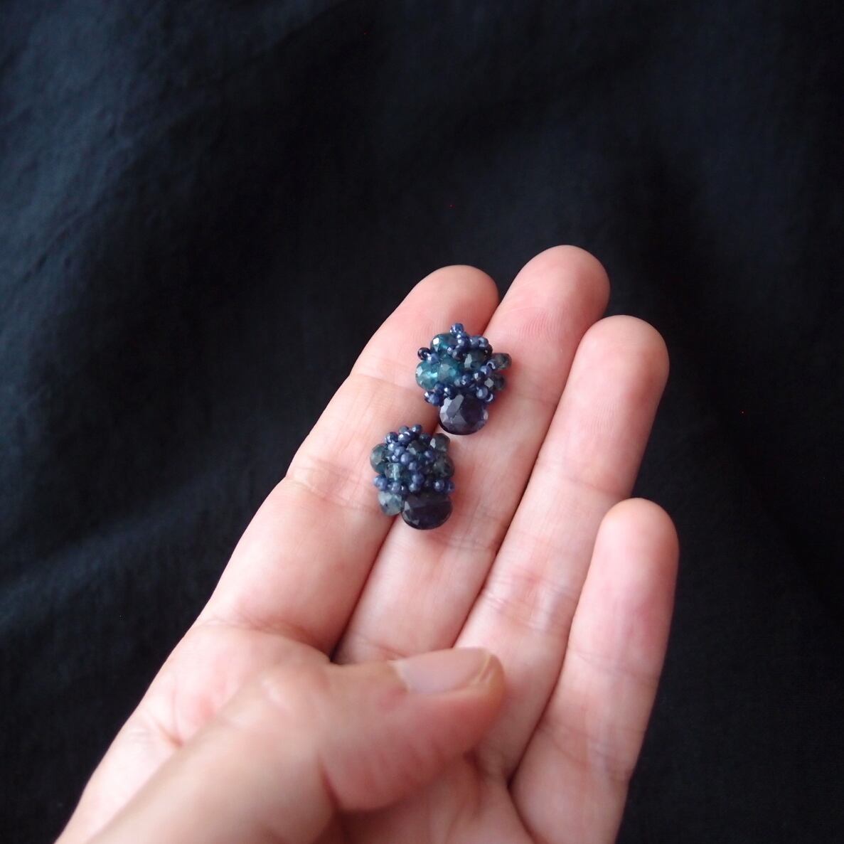 【天然石刺繍/ピアス】iolite × bluesapphire × kyanite