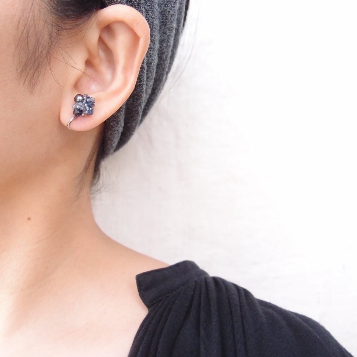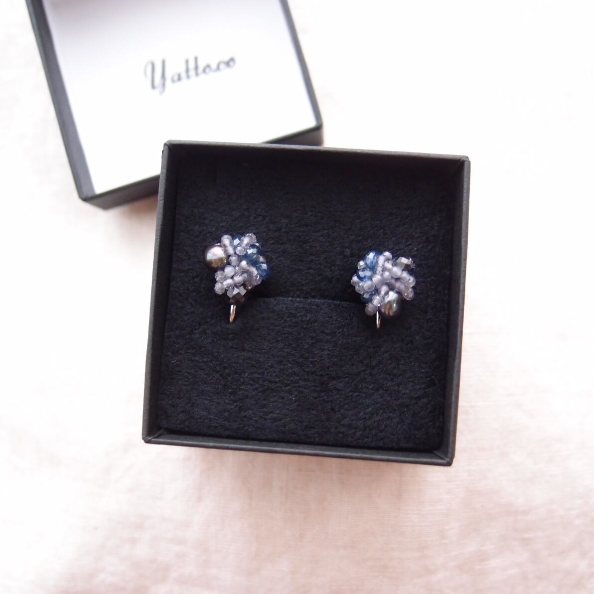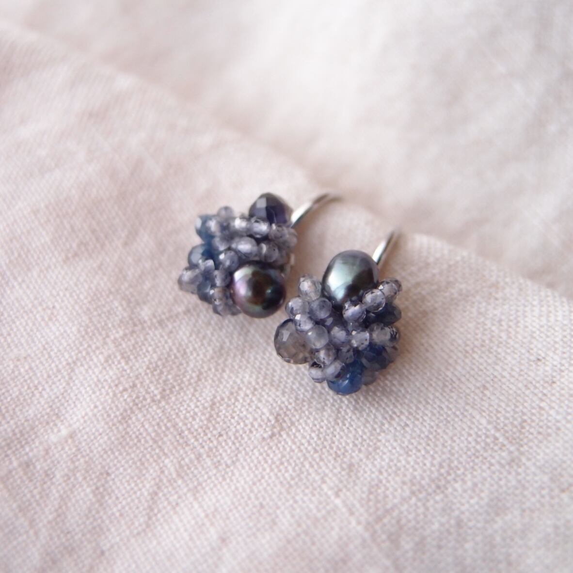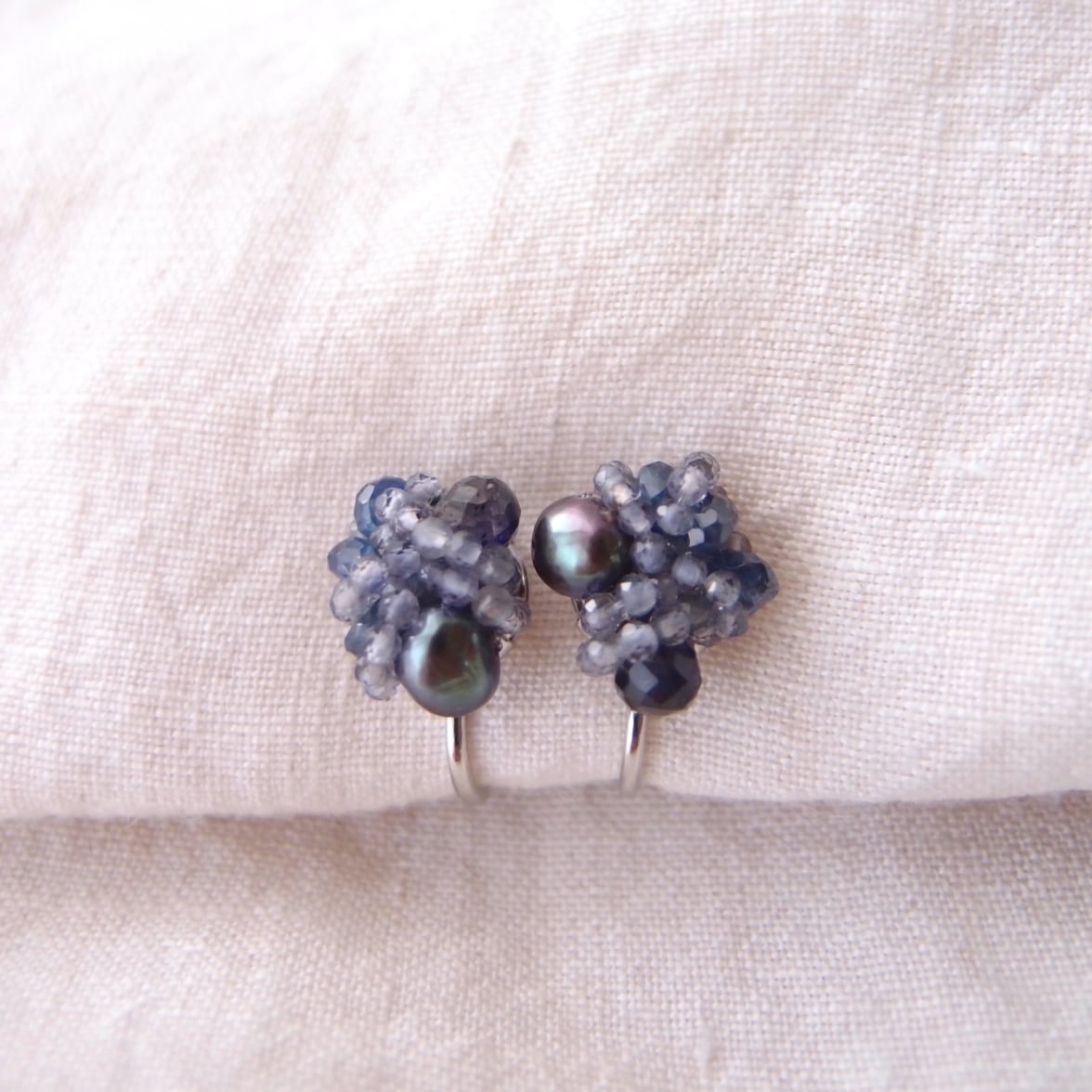 【天然石刺繍/イヤリング】iolite × pearl × bluesapphire
