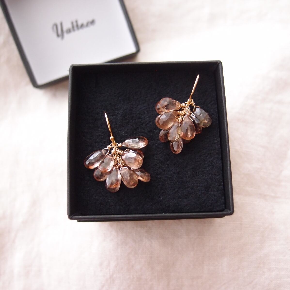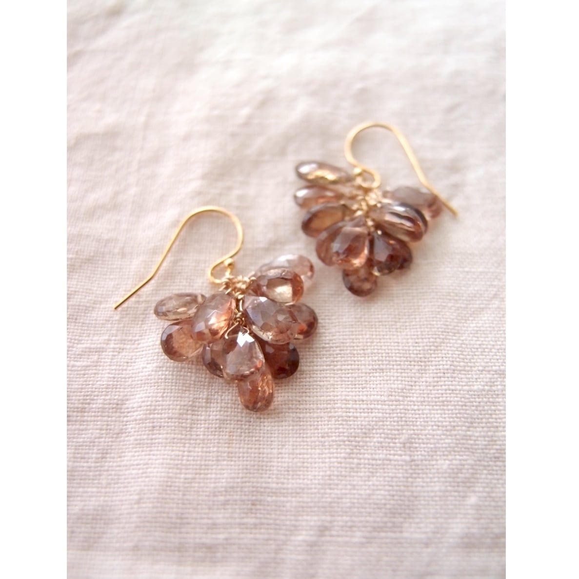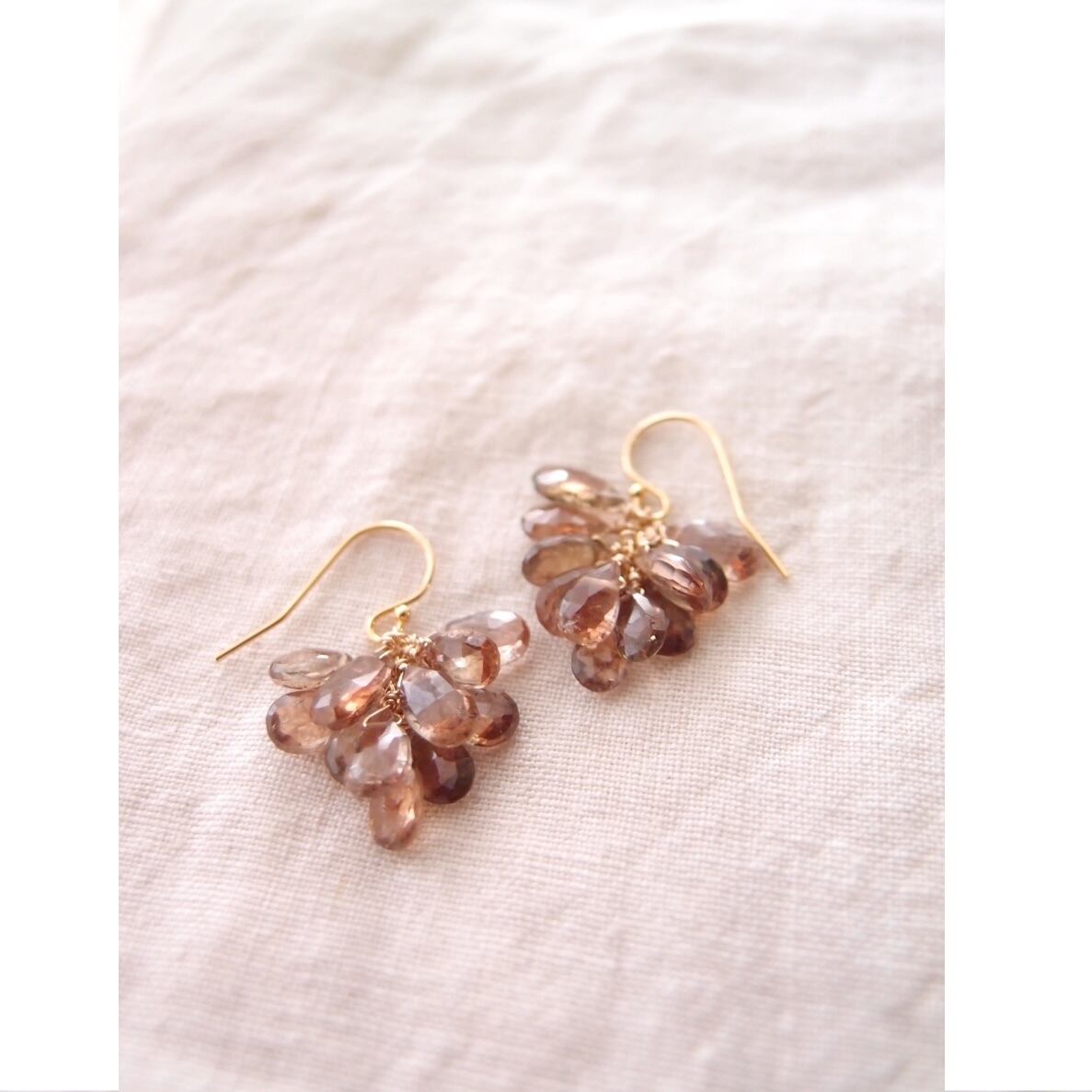 繊細なカットが大人っぽいアンダリュサイトの房ピアス。