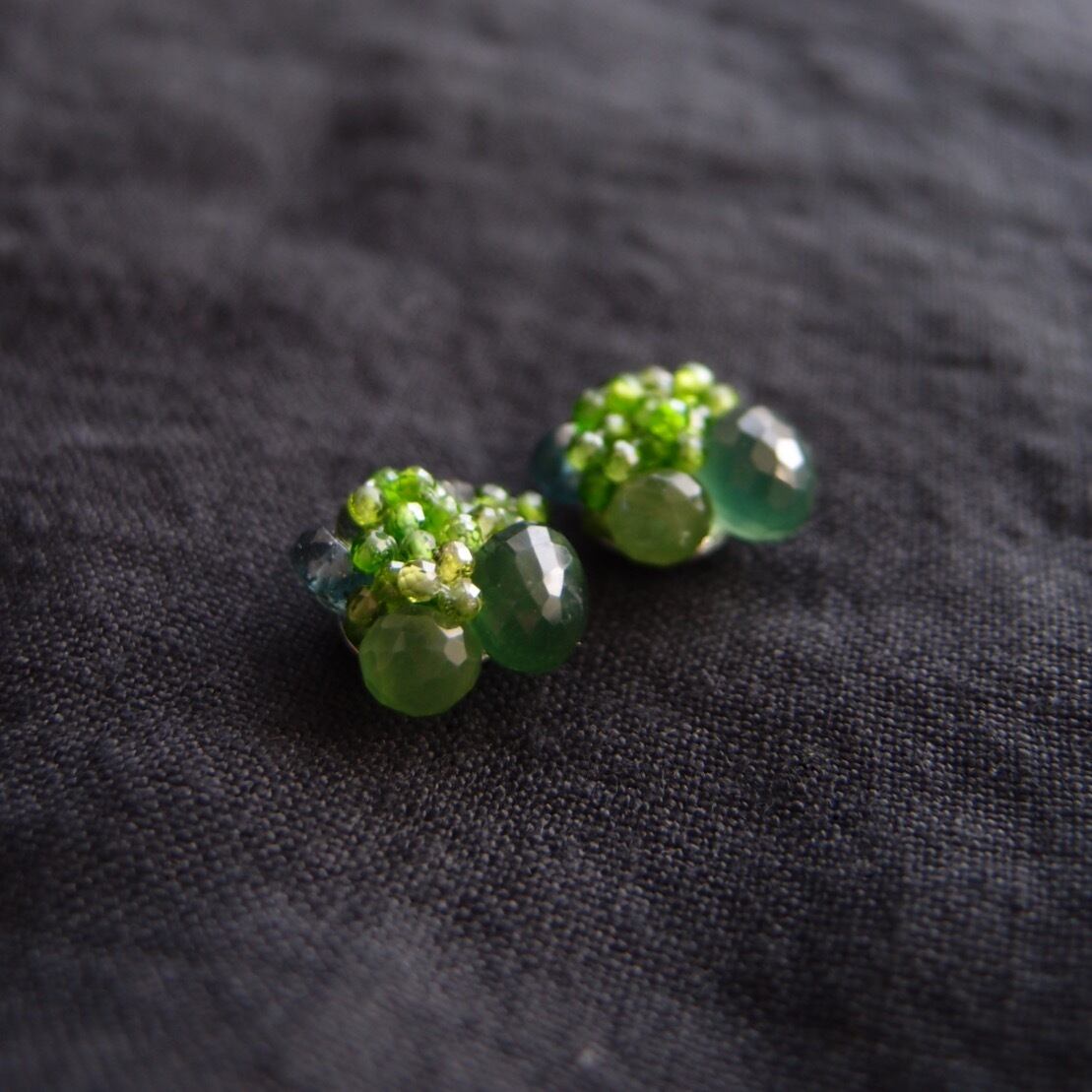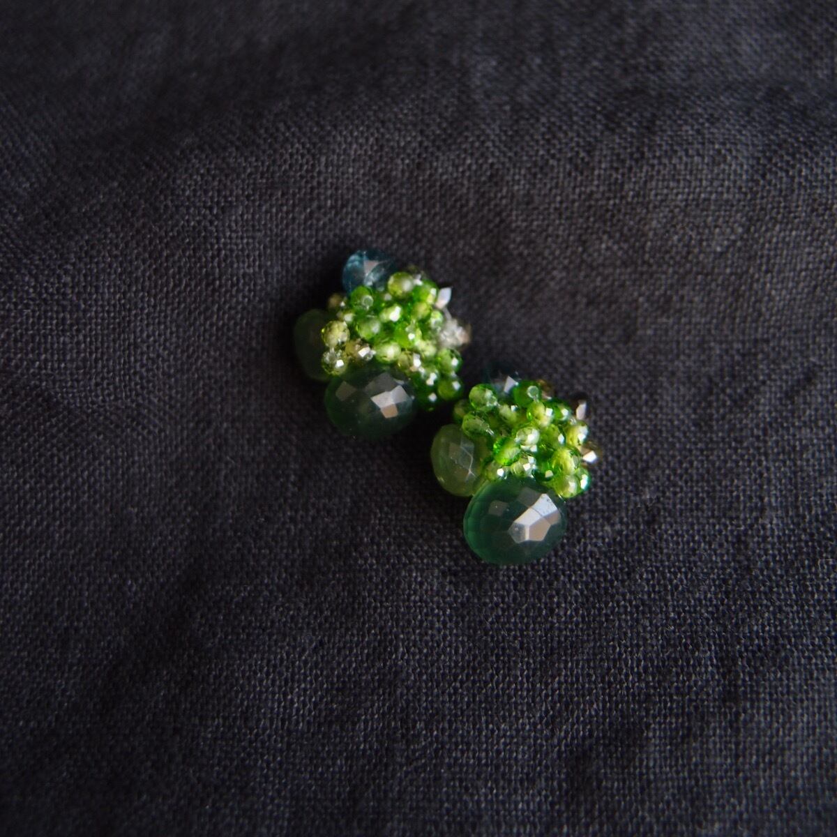 【天然石刺繍/ピアス】 serpentine × tourmaline × chromediopside × kyanite