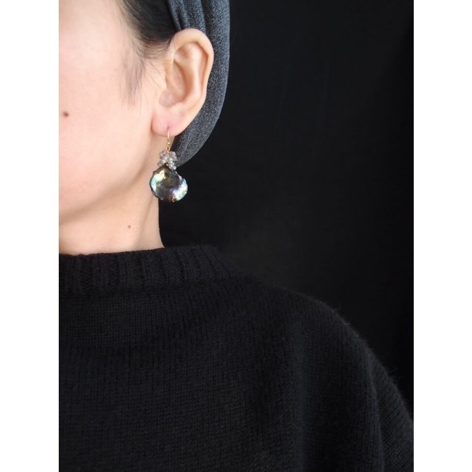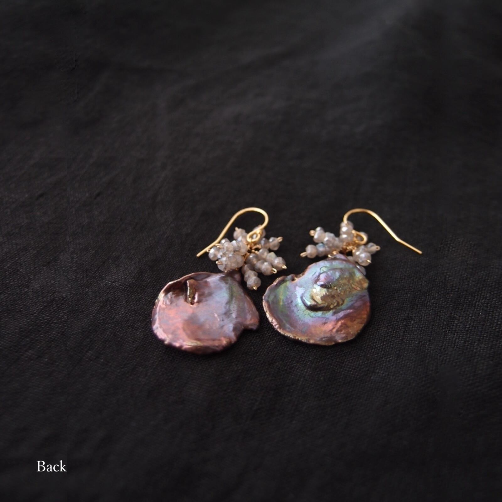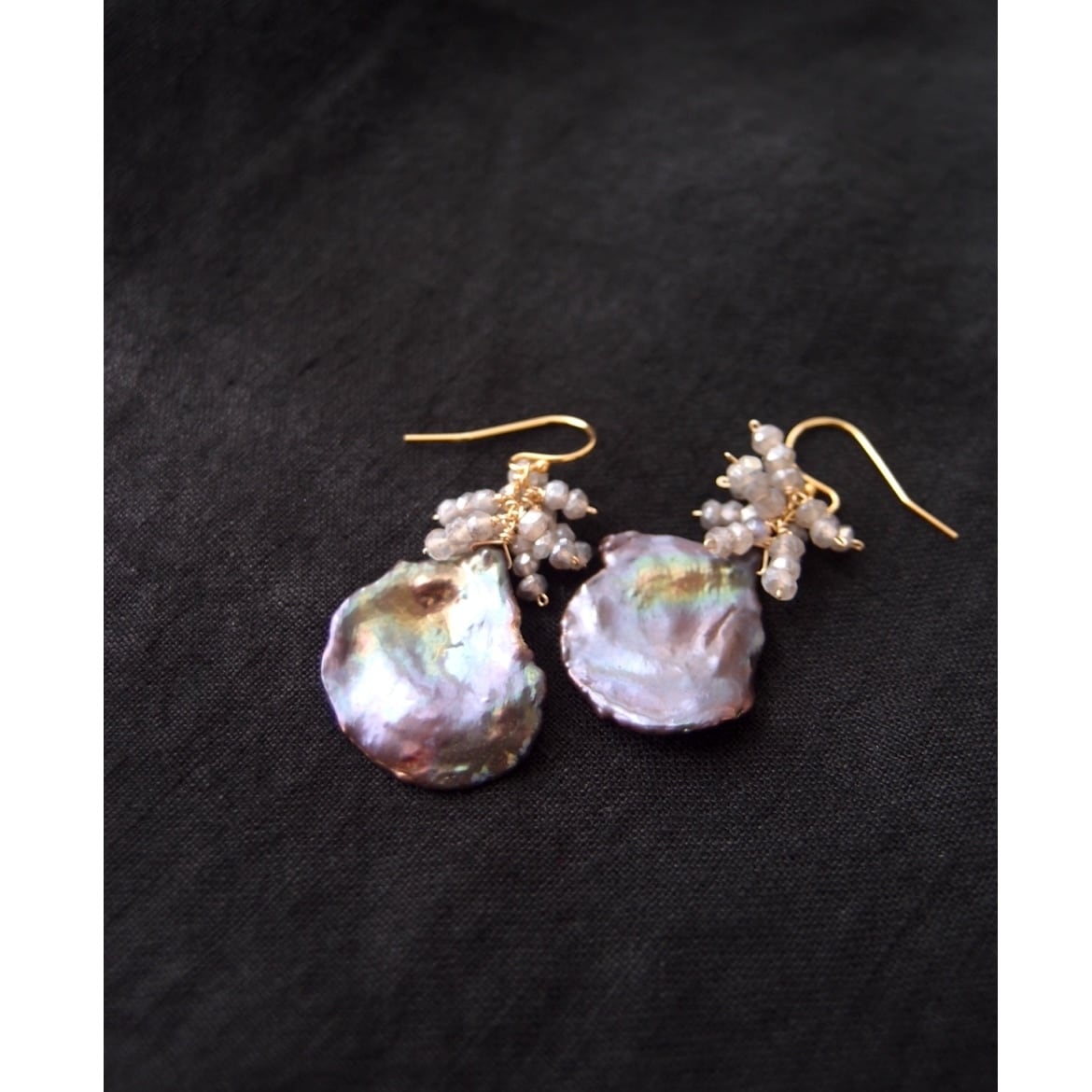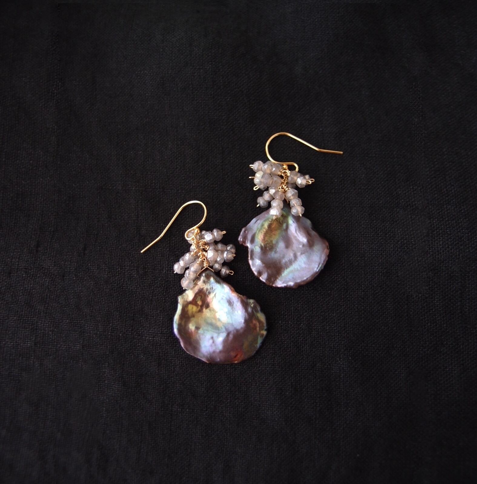 【K14gf】BIG Petal Pearl Earrings/Labradorite (ice gray)