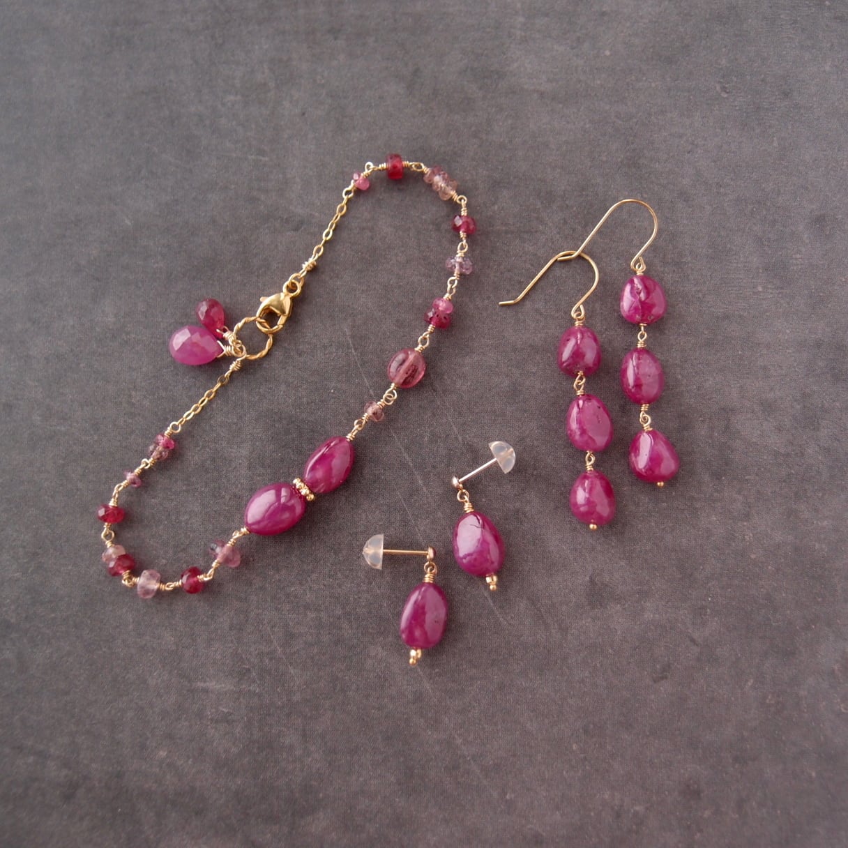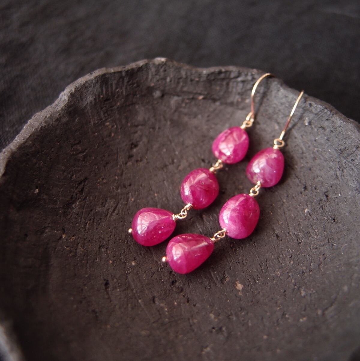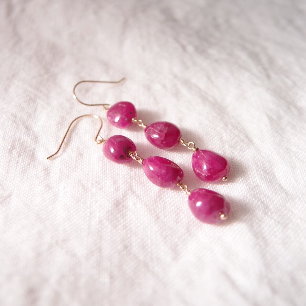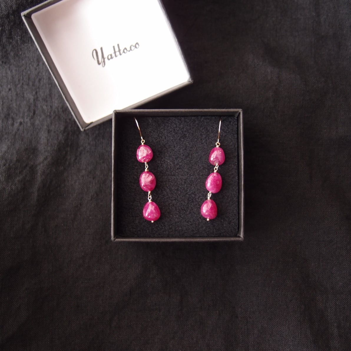 【K10】Ruby Long Earrings/ルビー ロングピアス