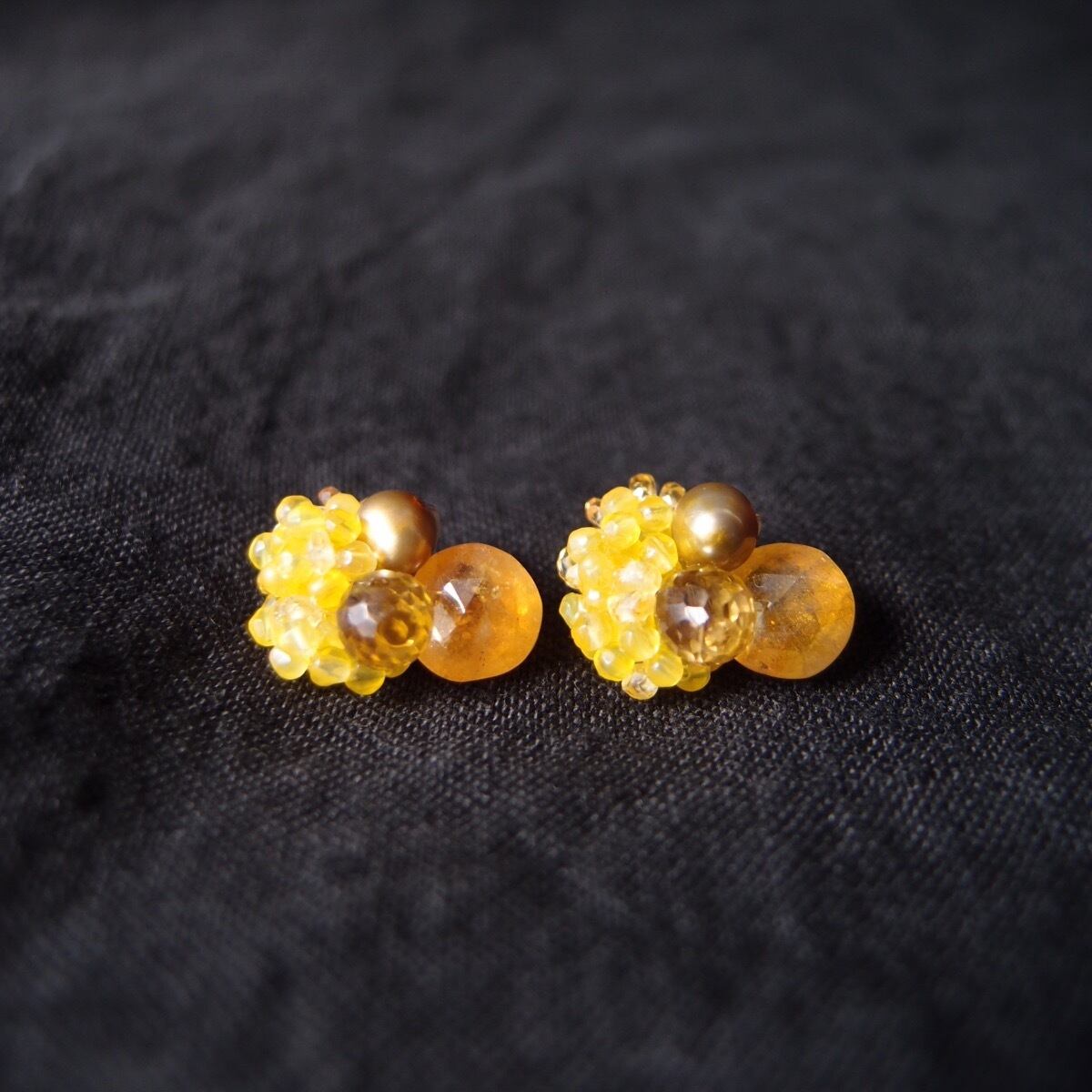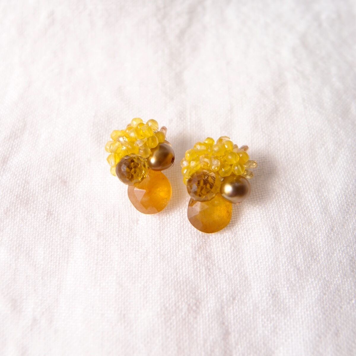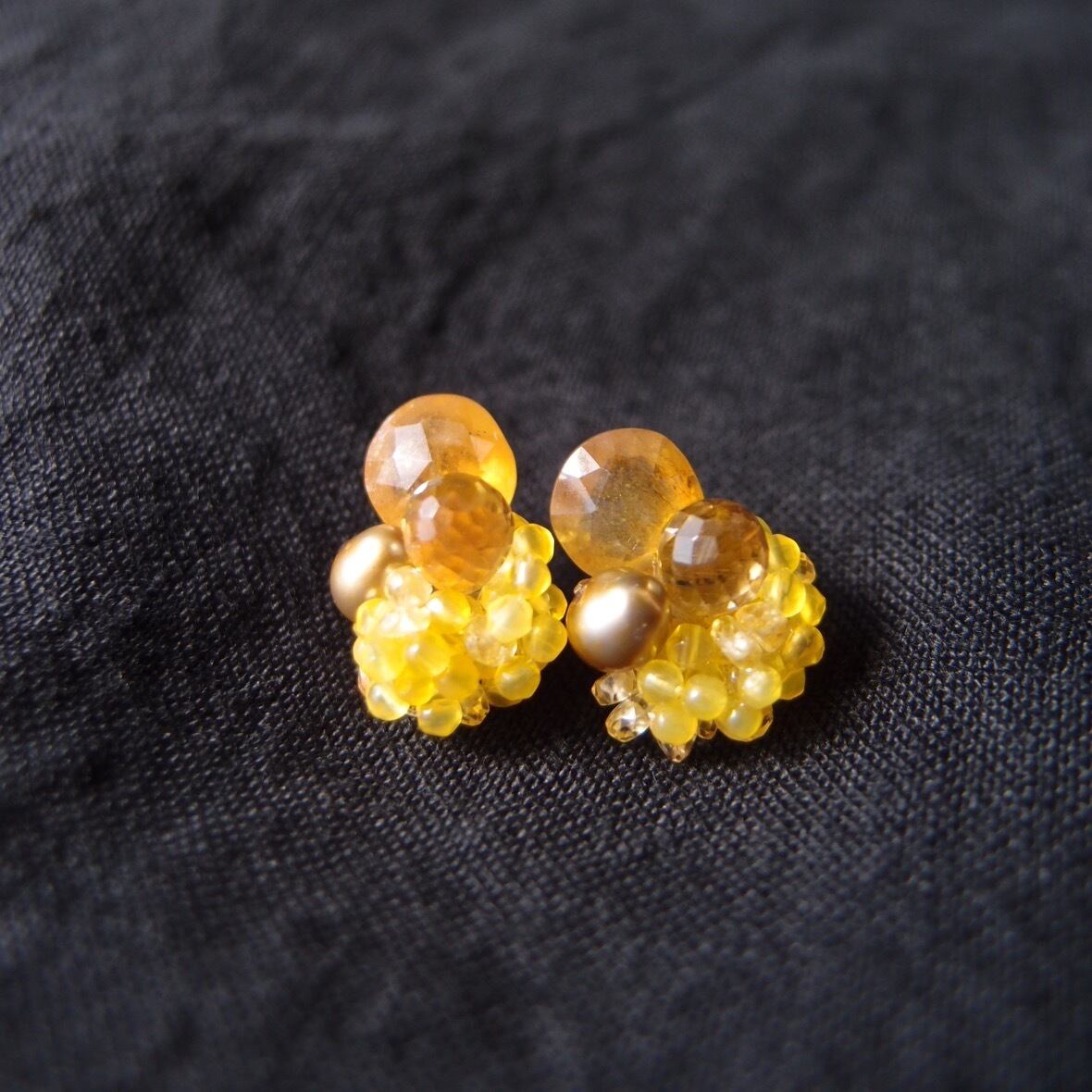 【天然石刺繍/ピアス】yellow sapphire × pearl × agate