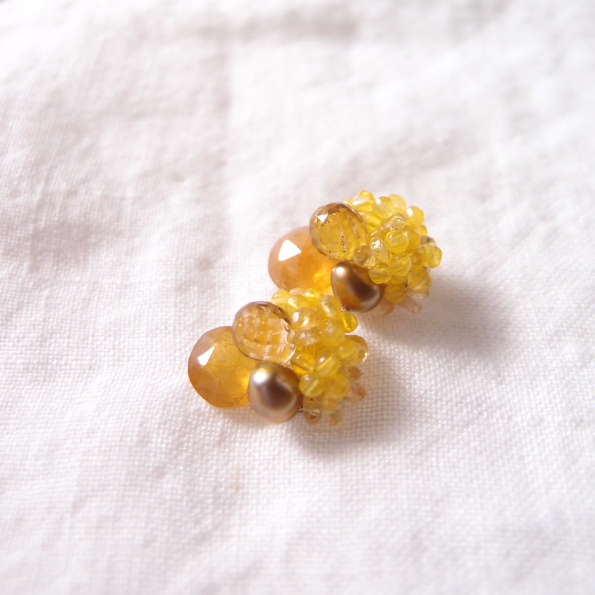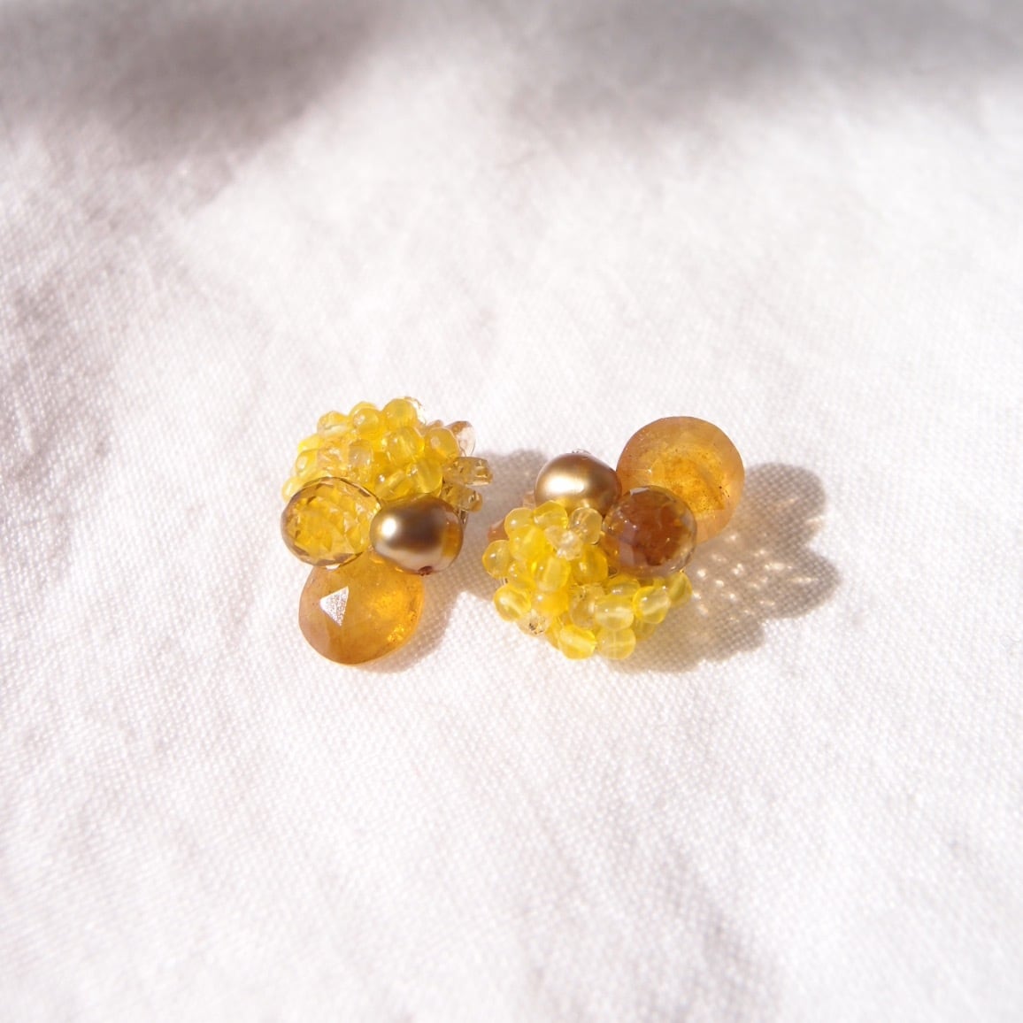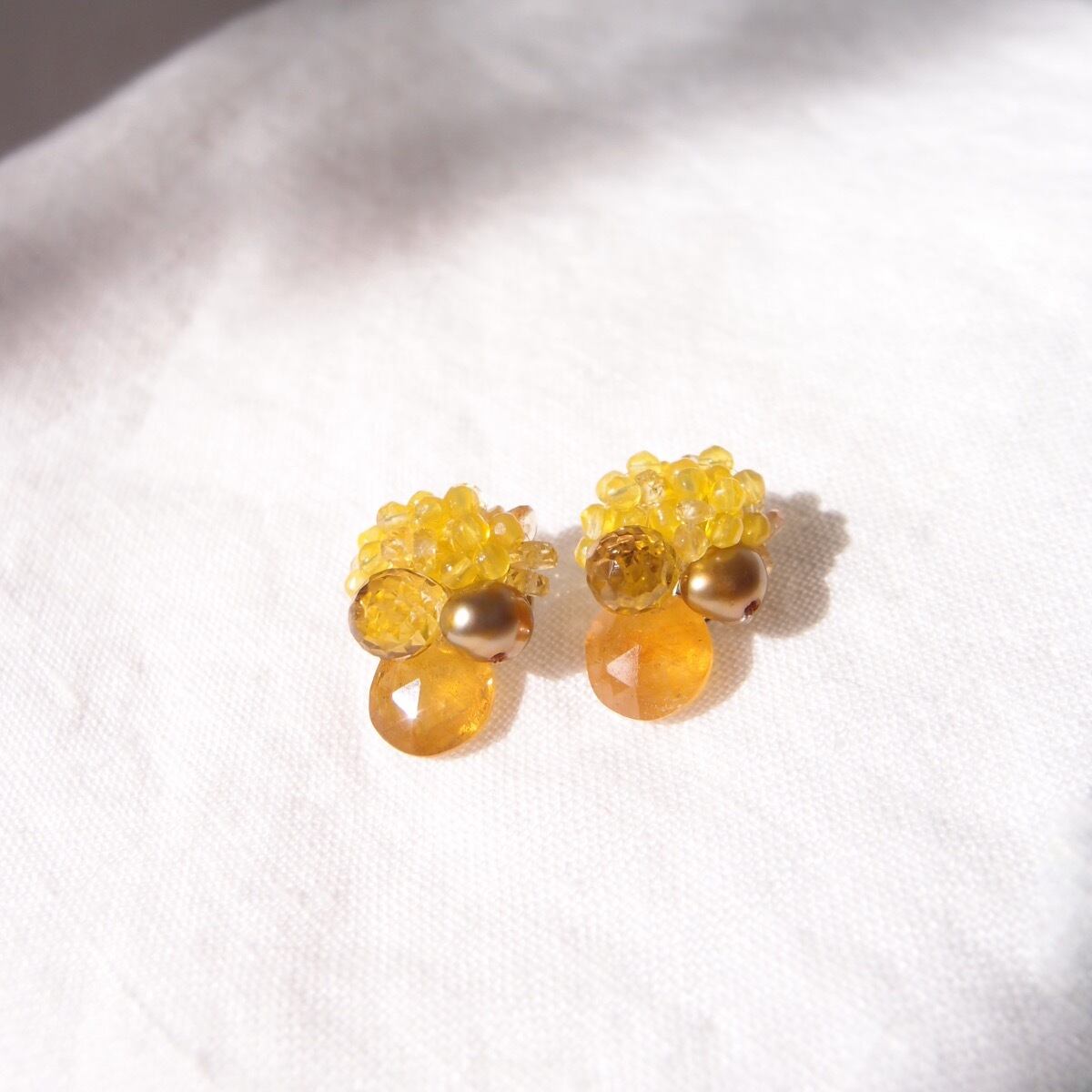 【天然石刺繍/ピアス】yellow sapphire × pearl × agate