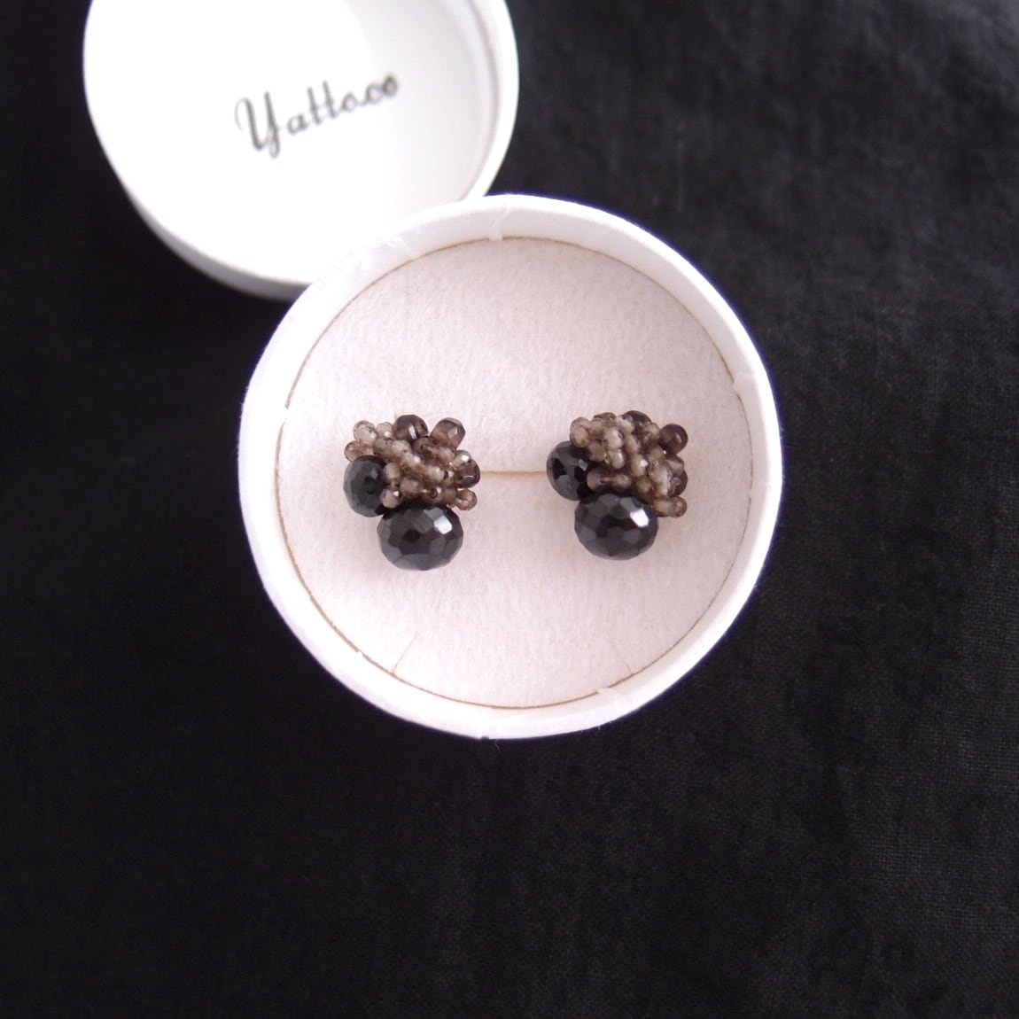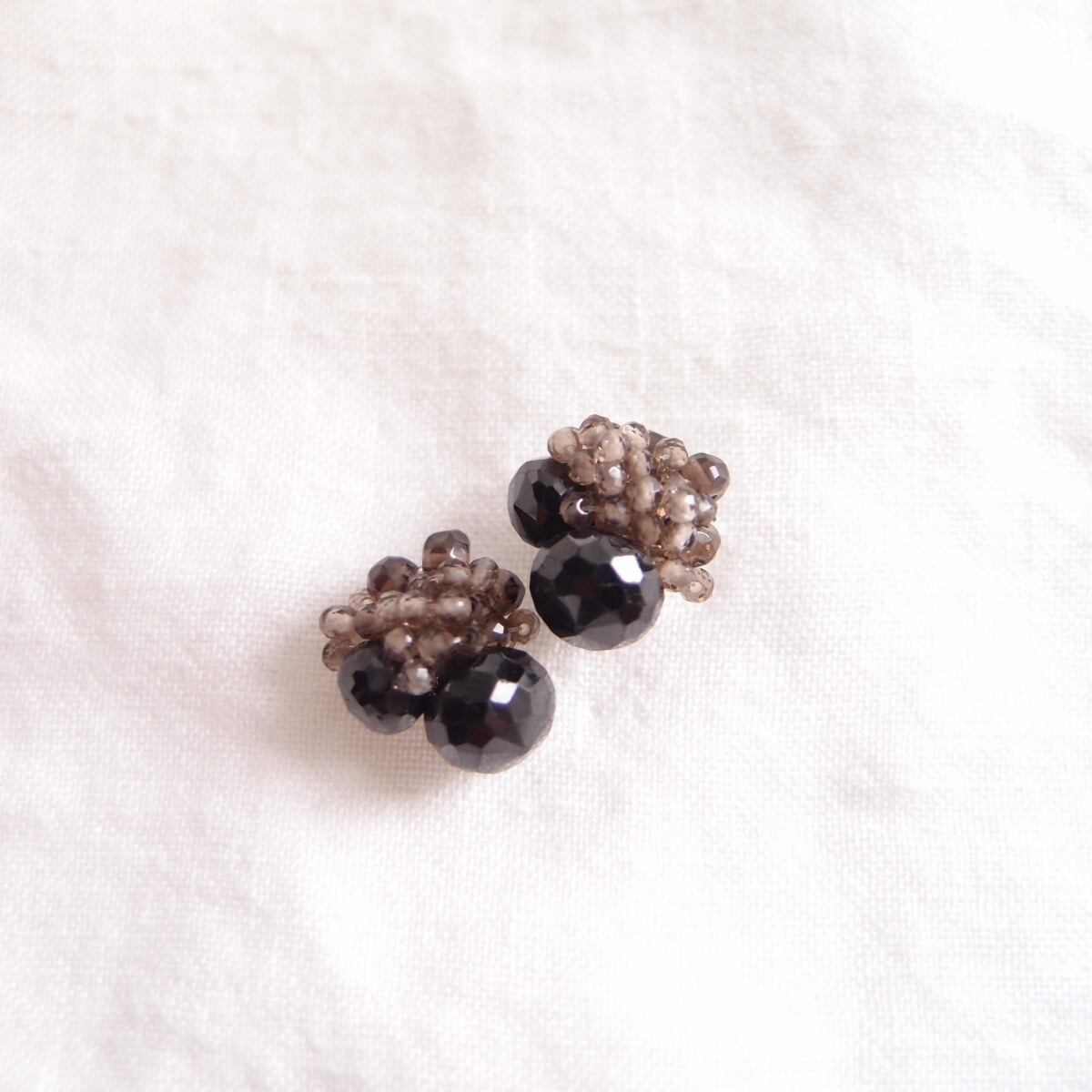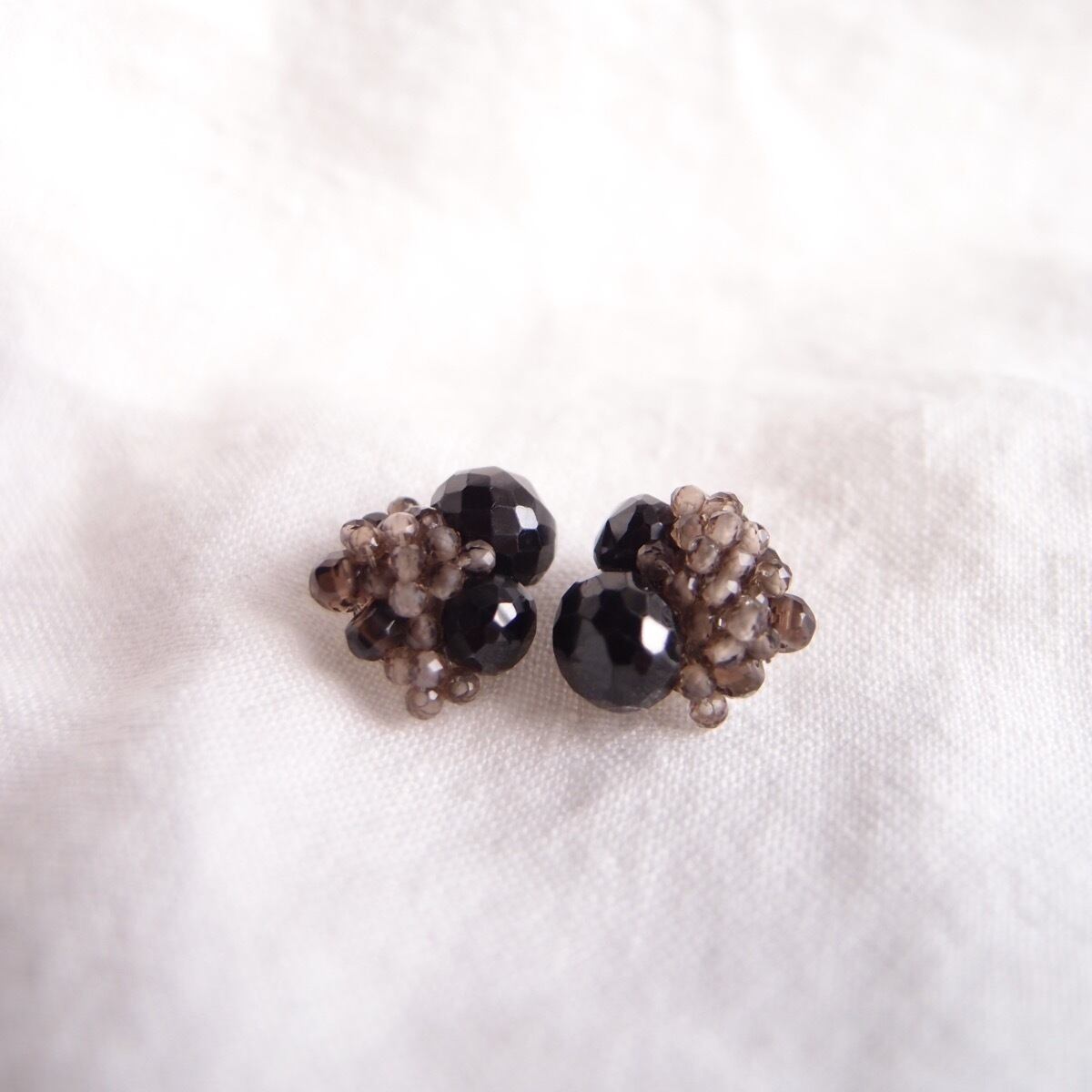 【天然石刺繍/ピアス】smoky quartz × black spinel(onion)