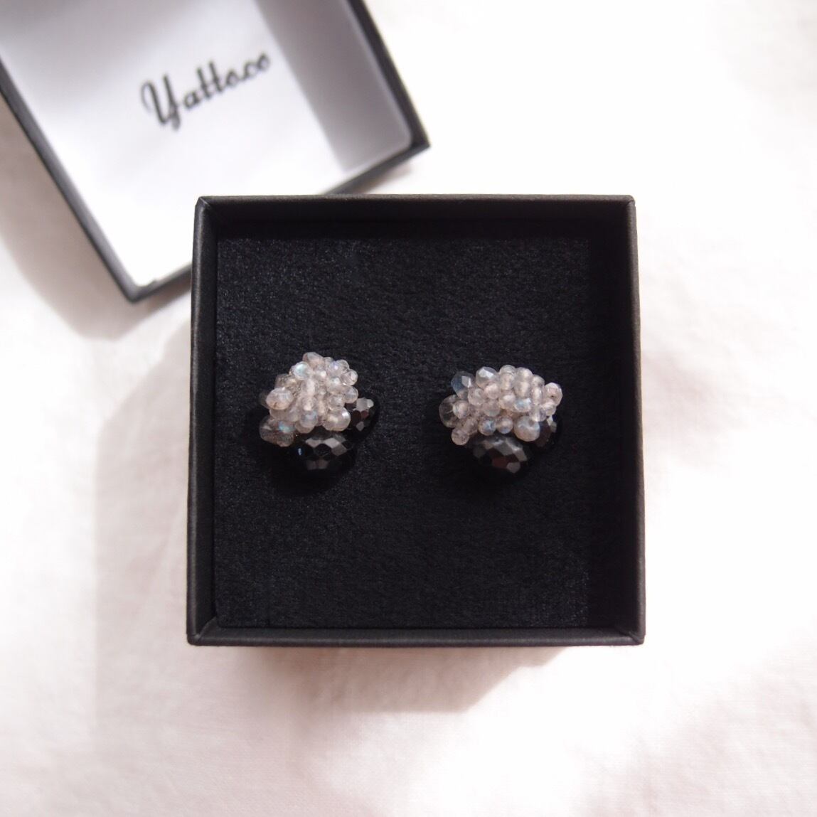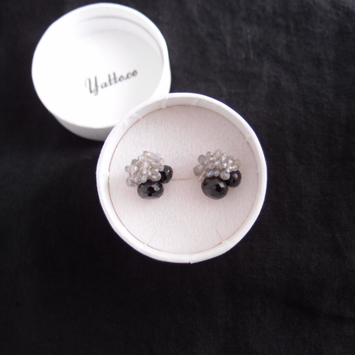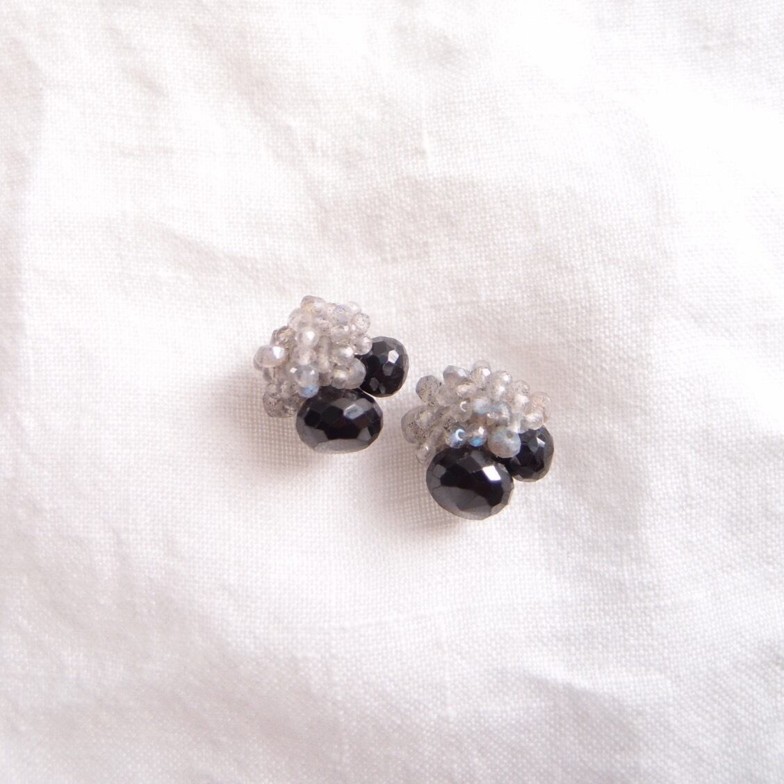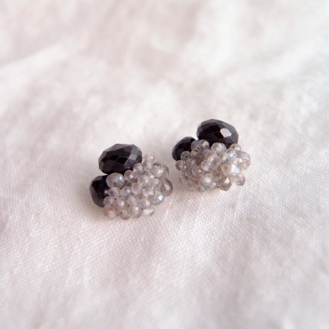 【天然石刺繍/ピアス】labradorite × black spinel(onion)