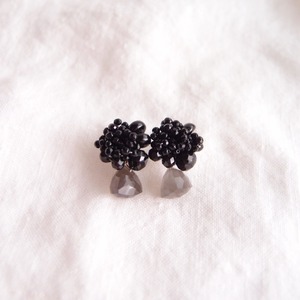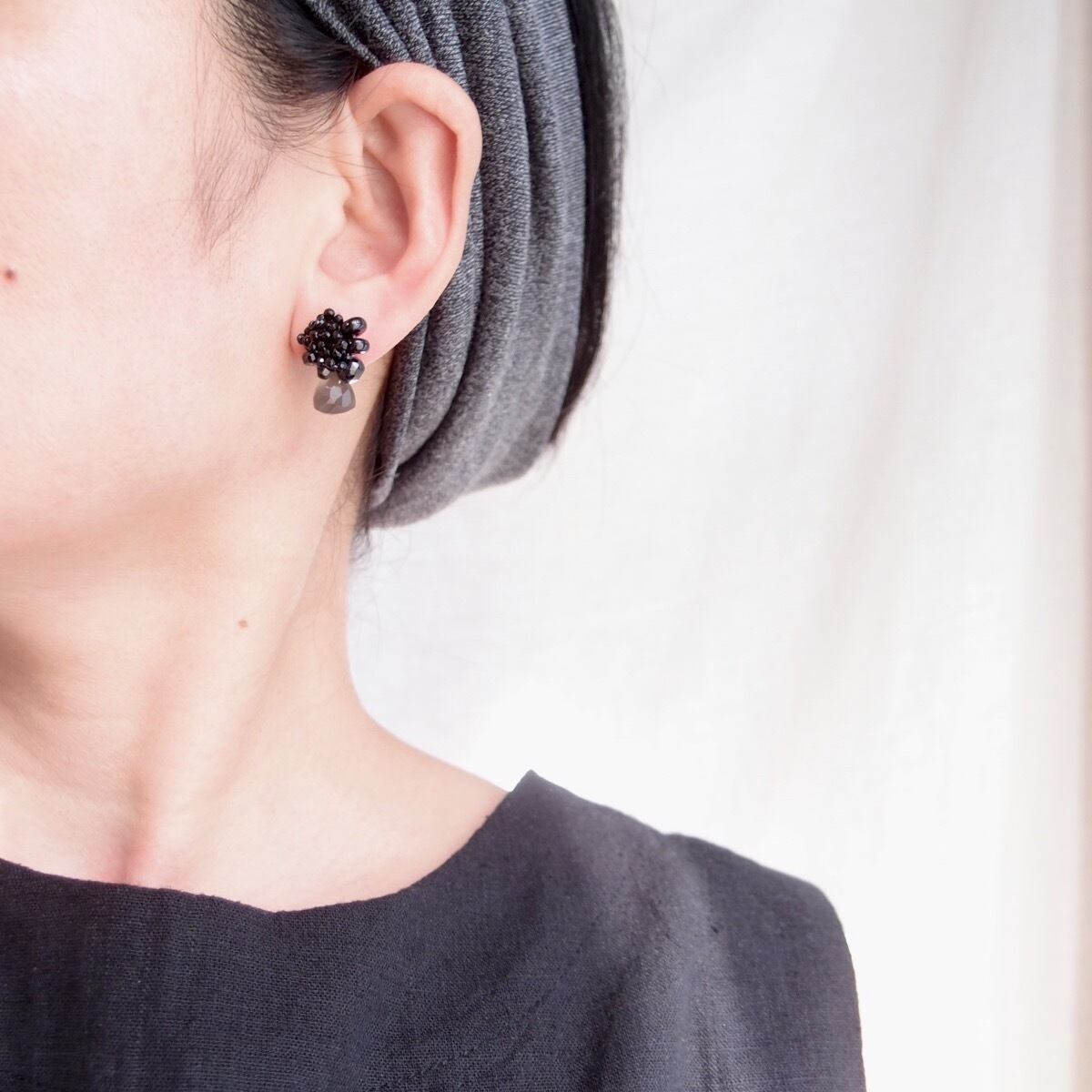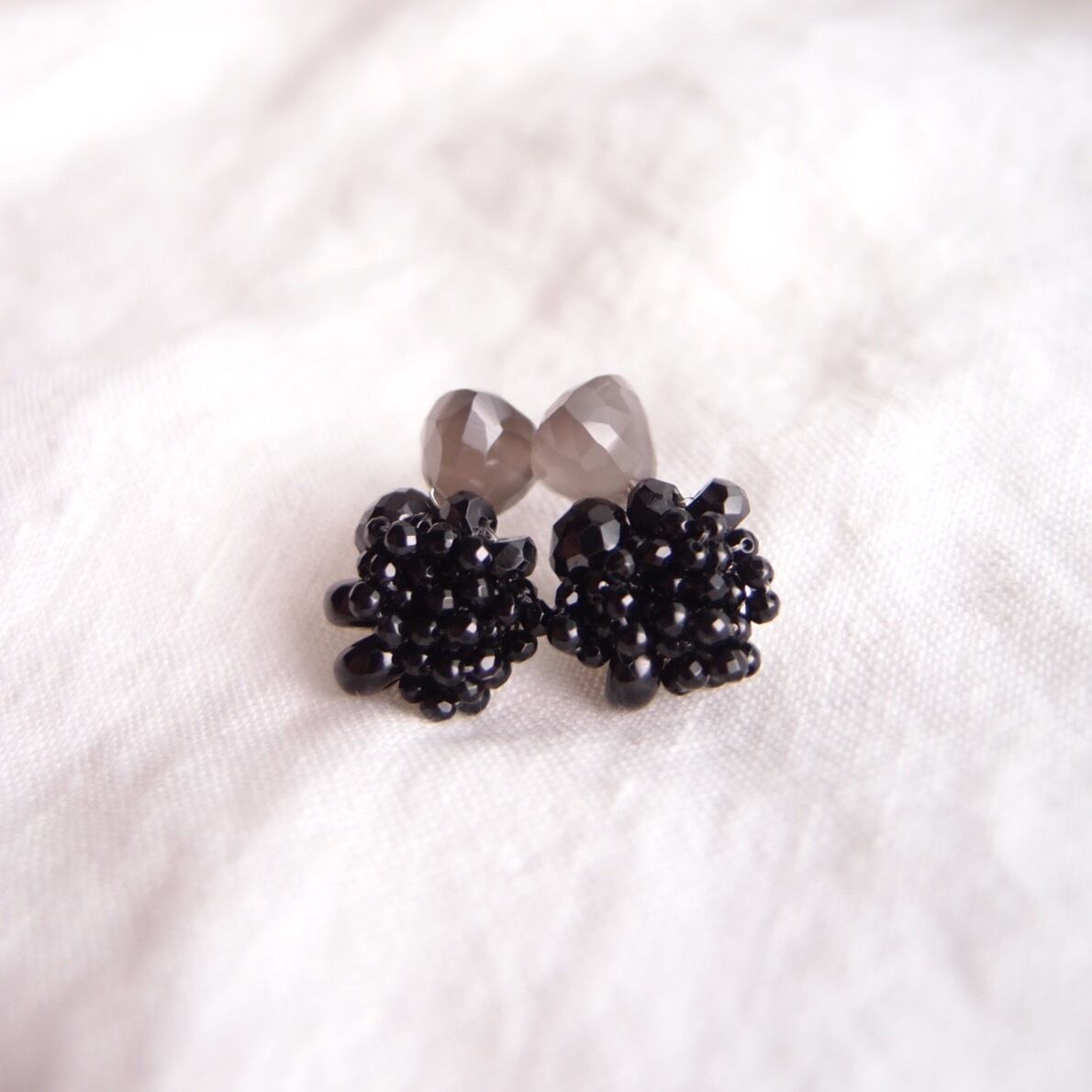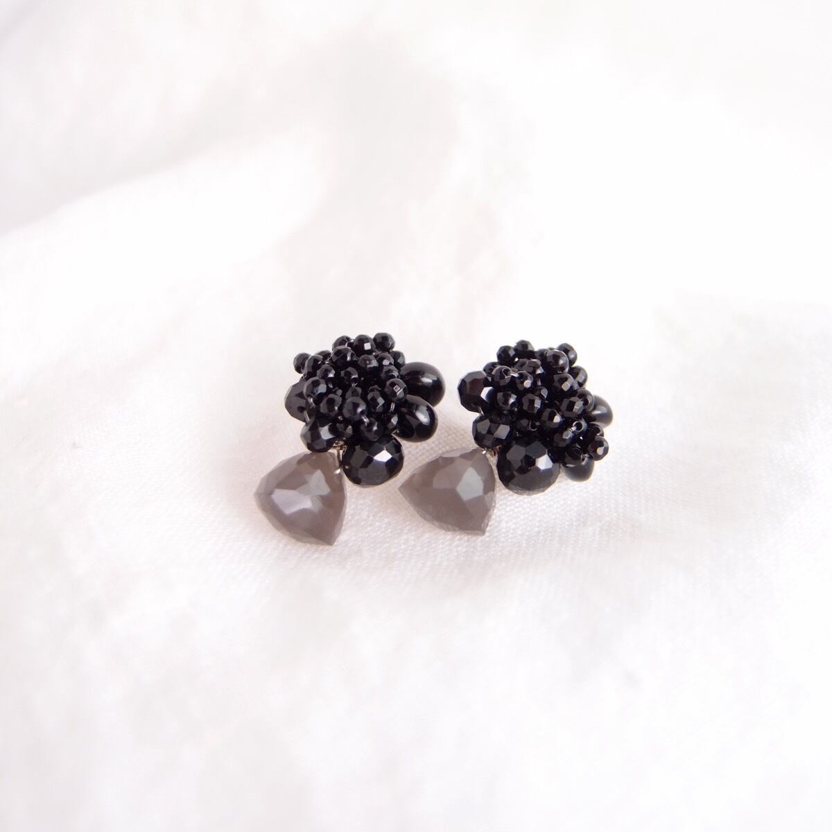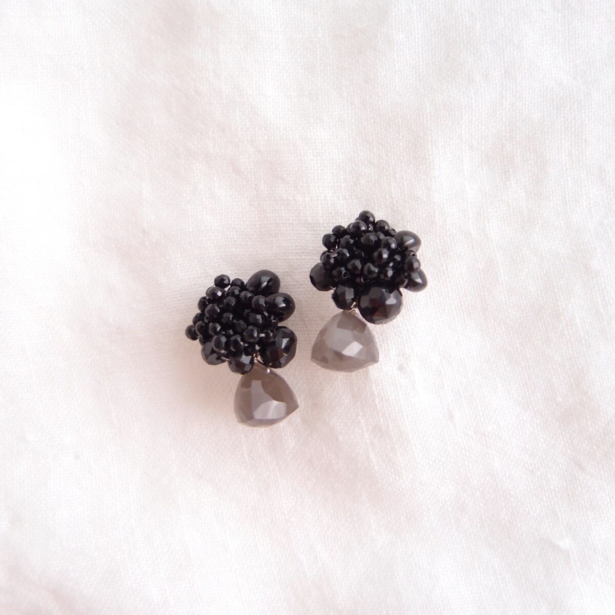 【天然石刺繍/ピアス】black onyx × graymoonstone(trilliant)
