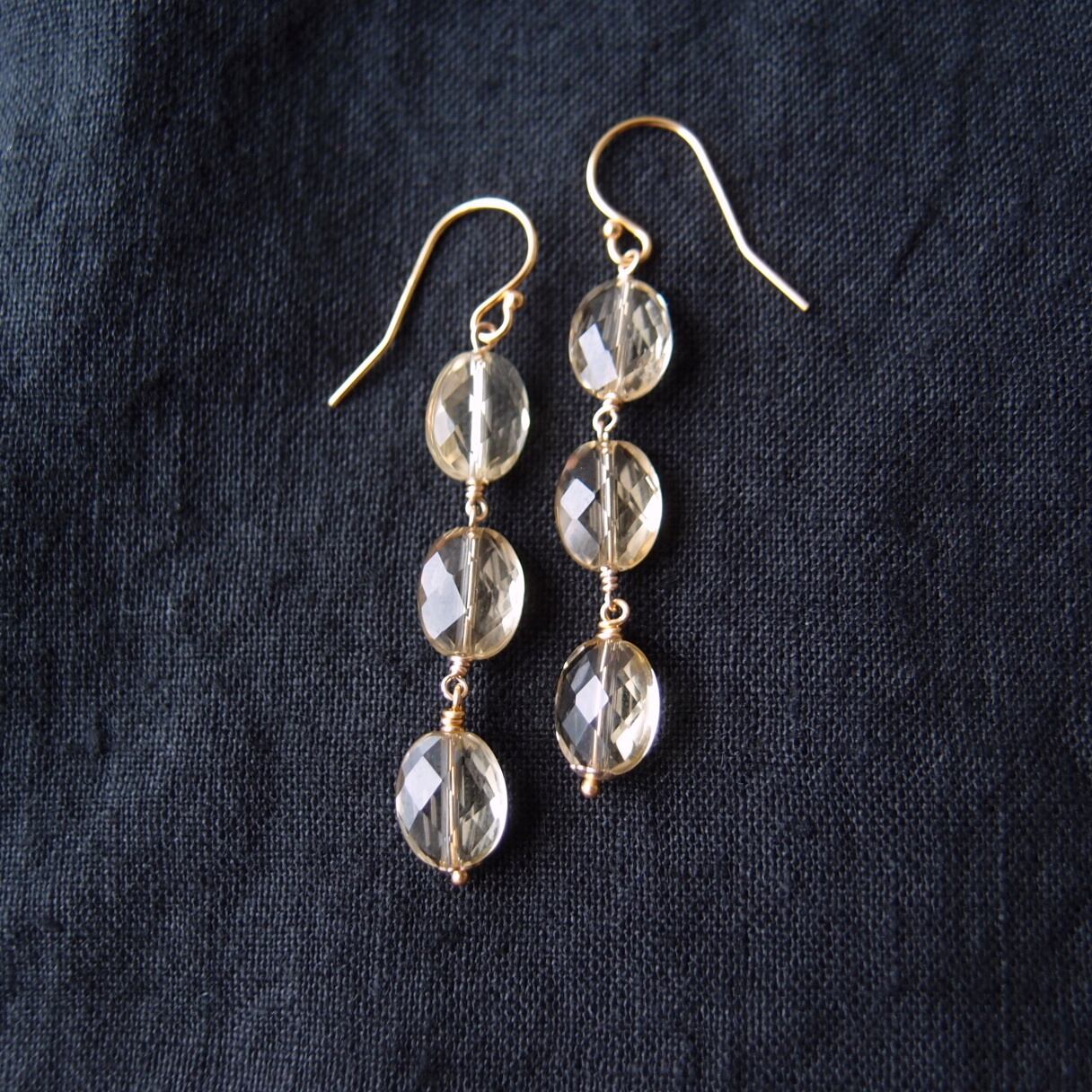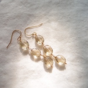 【K14gf/受注制作】Lemon Quartz Long Earrings/レモンクォーツ ロングピアス(Oval)