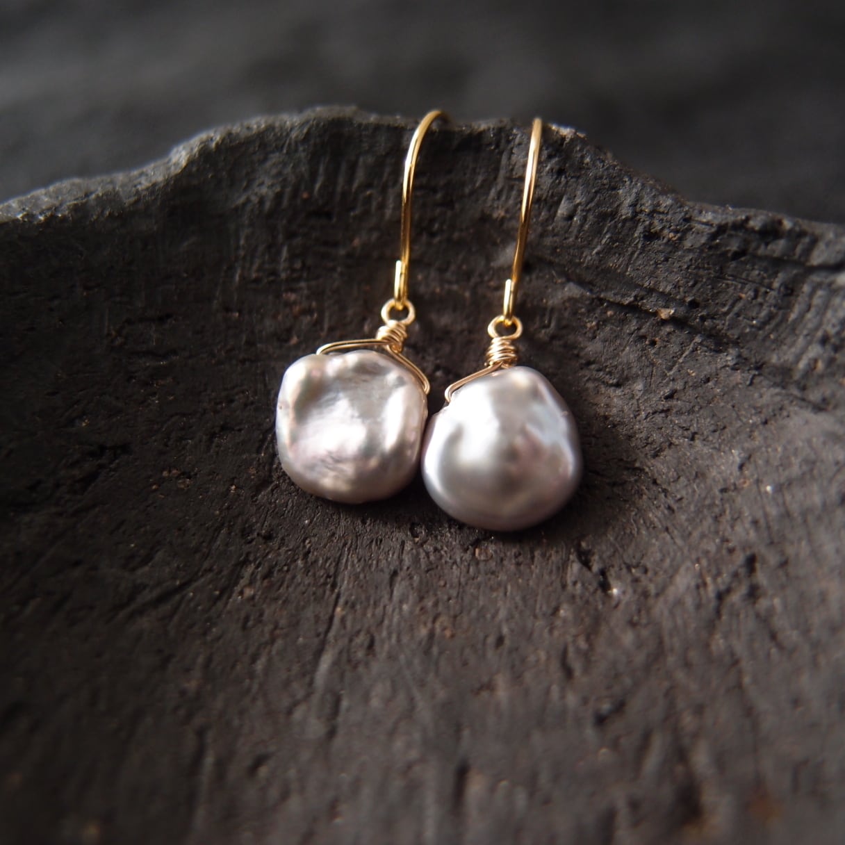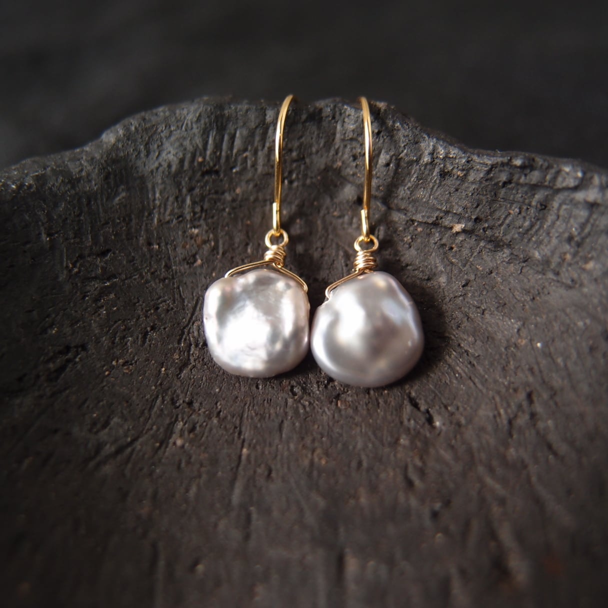 再入荷【K14gf】Petit Petal Earrings/バロックパール プチピアス(Gray)