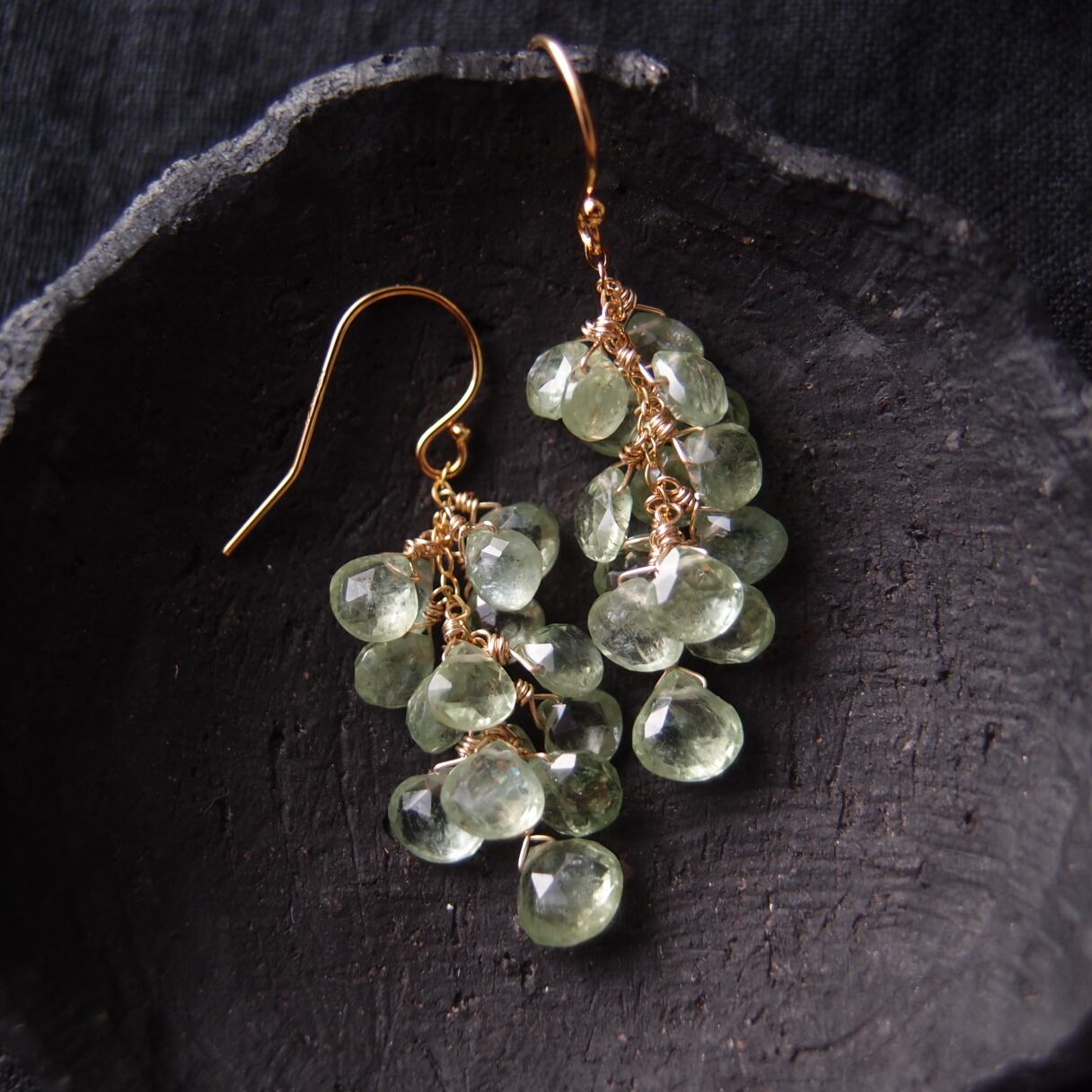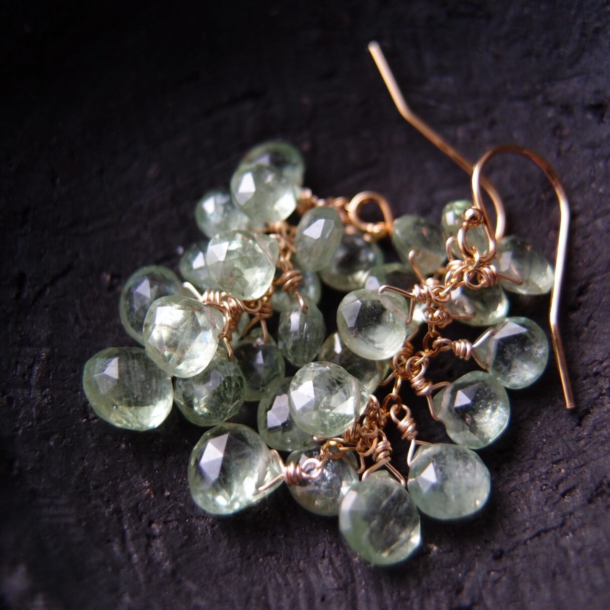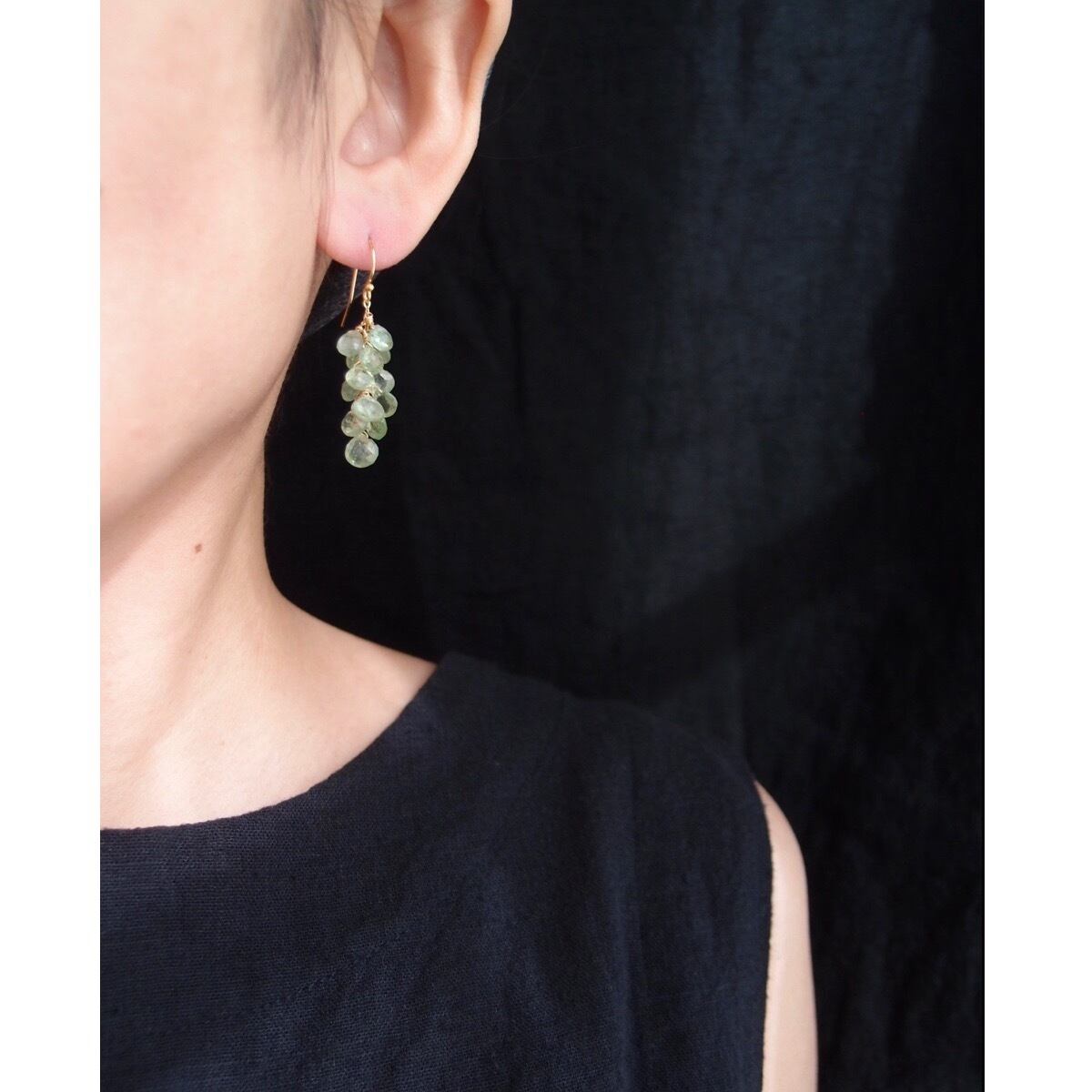 Drop Long earrings【K14gf】グリーンカイヤナイトのロングピアス