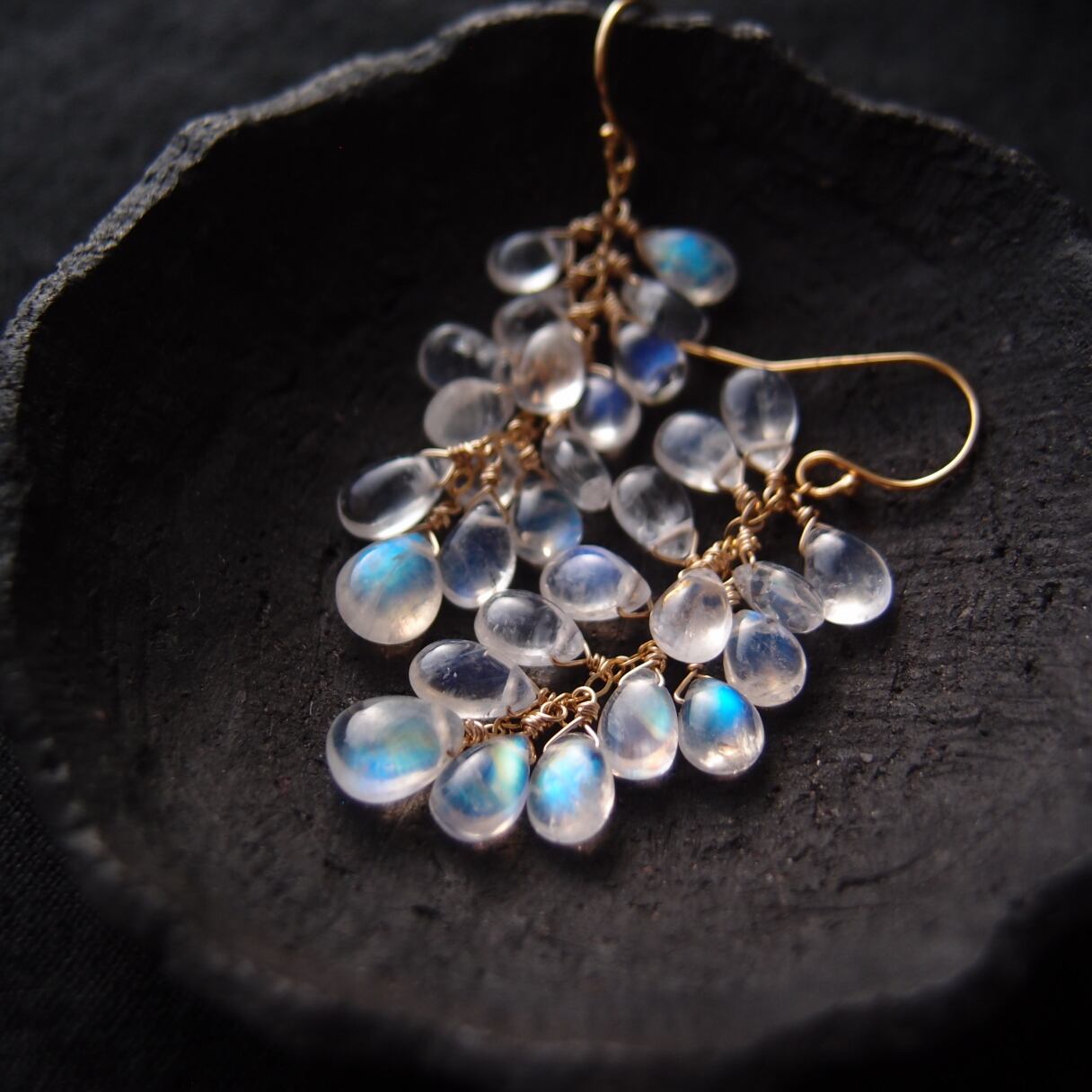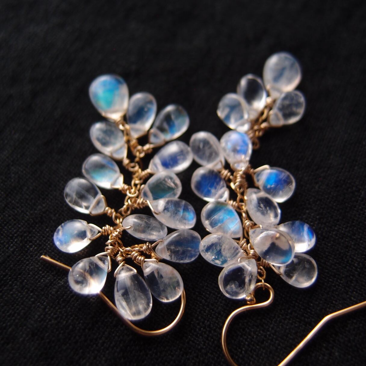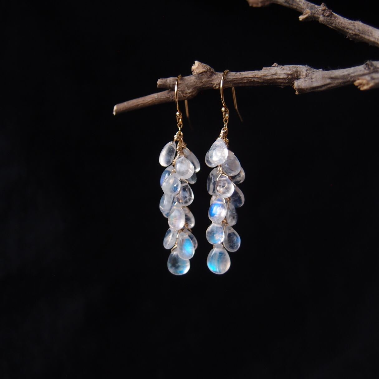 Drop Long earrings【K14gf】ブルームーンストーンのロングピアス