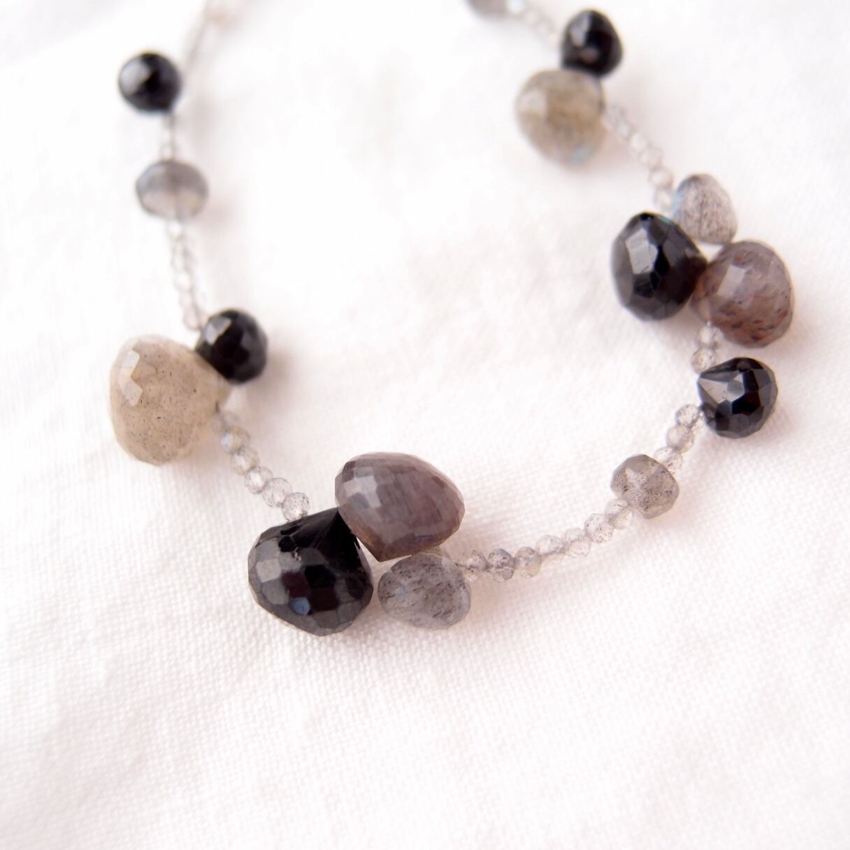 多面カットがキラキラと輝く繊細なラブラドライトをベースに、