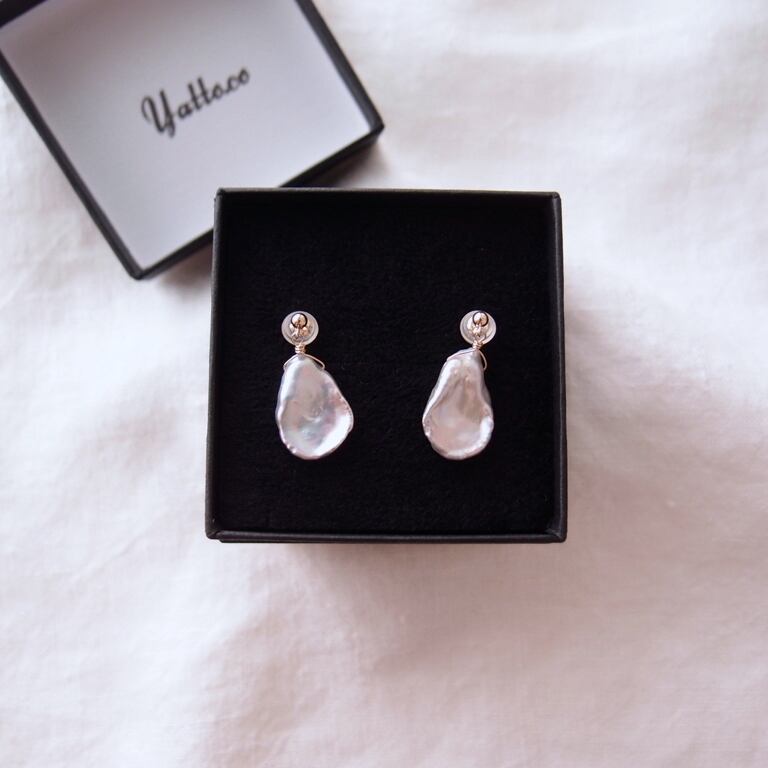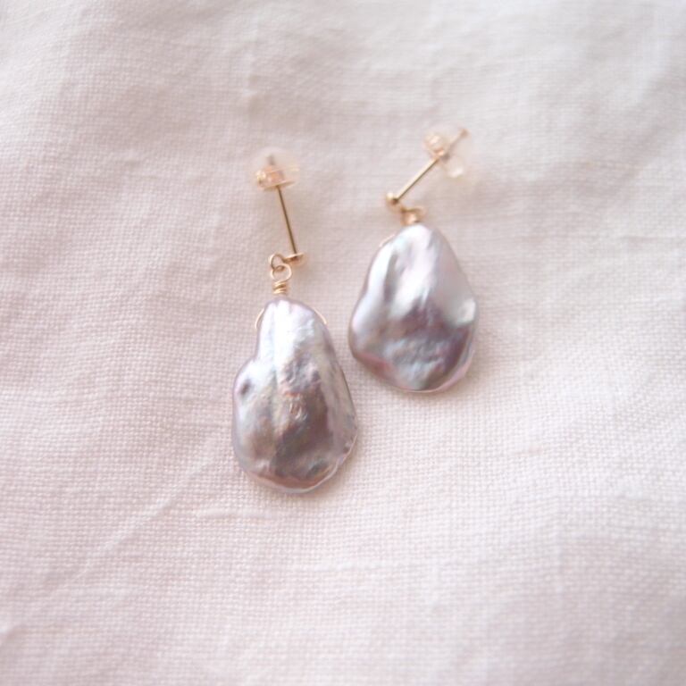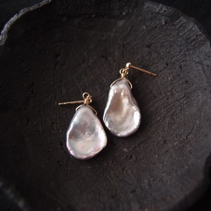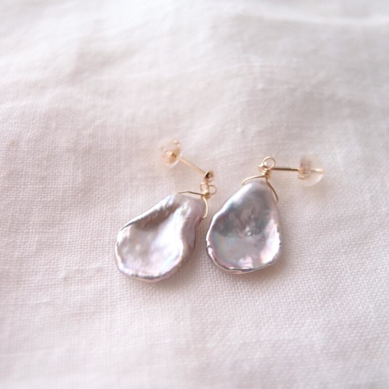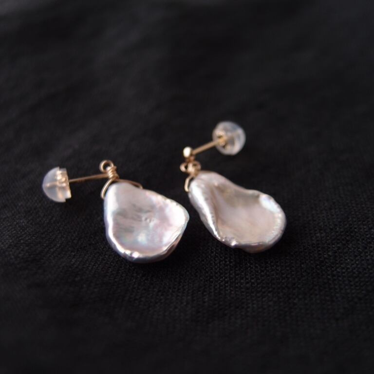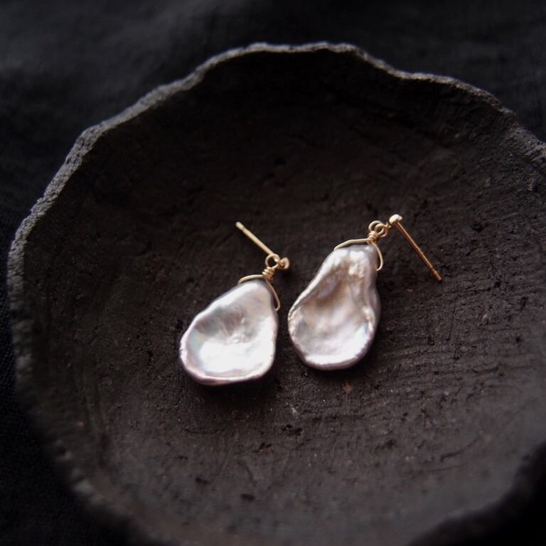 【K10YG】Petal Pearl Earrings・Gray/花びらパール スタッドピアス