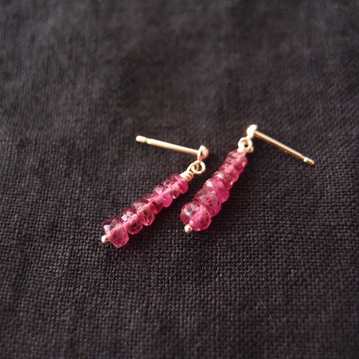 【K10YG】Rubellite Earrings/ルベライト スタッドピアス