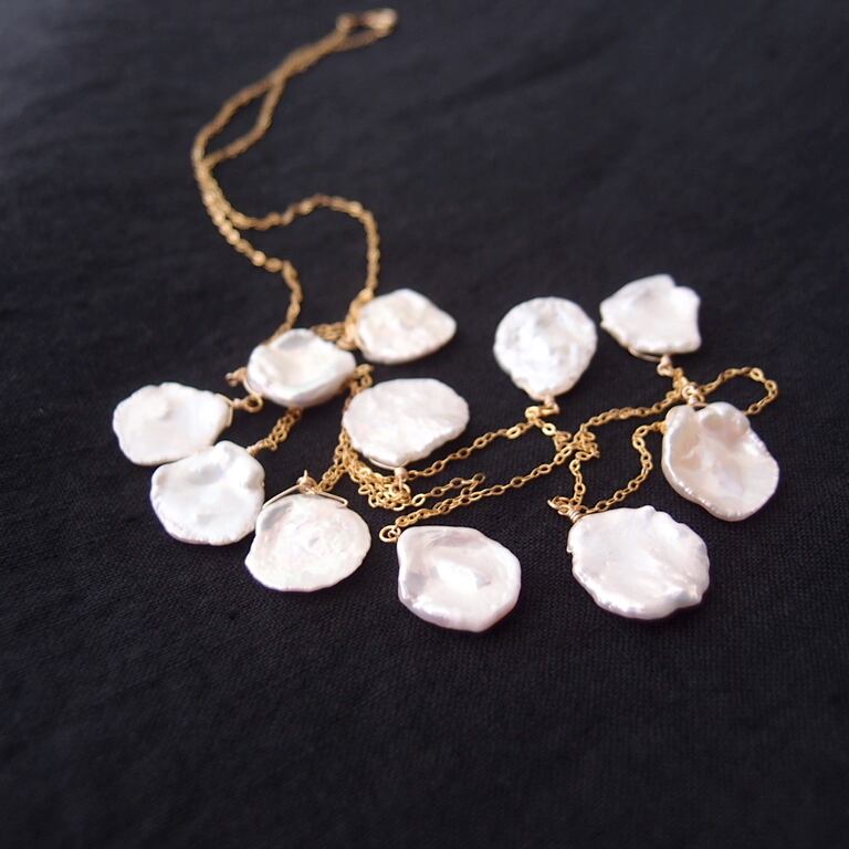 【K14gf】Petal Pearl Necklace/花びらパール ステーションネックレス