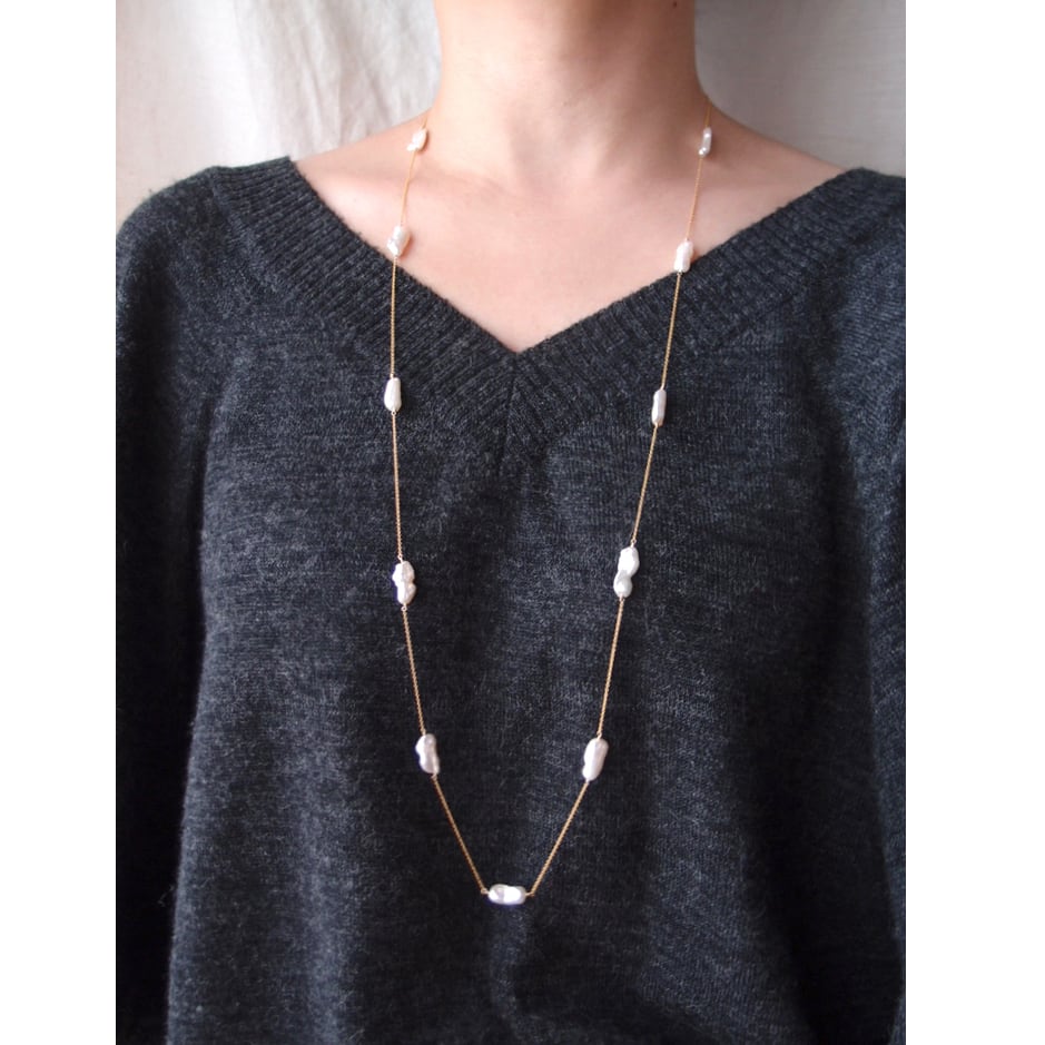 コンパクトなスティックパールのステーションネックレス。