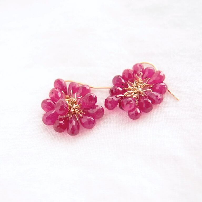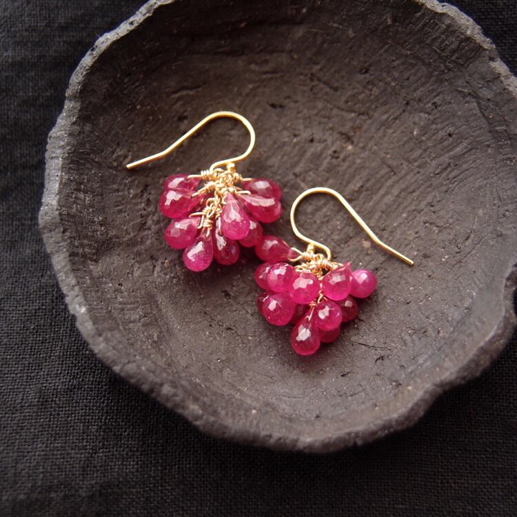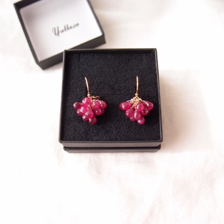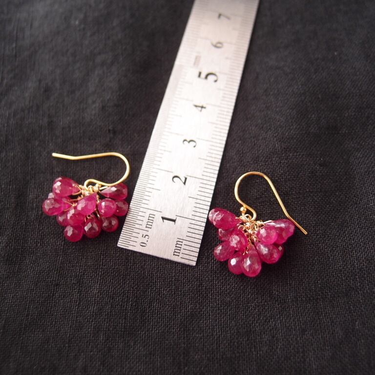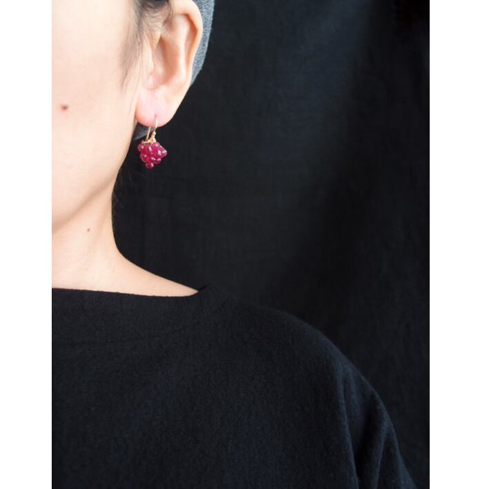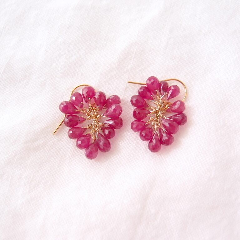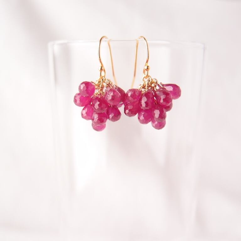 【K14gf】Ruby Earrings/ルビーのふさふさピアス