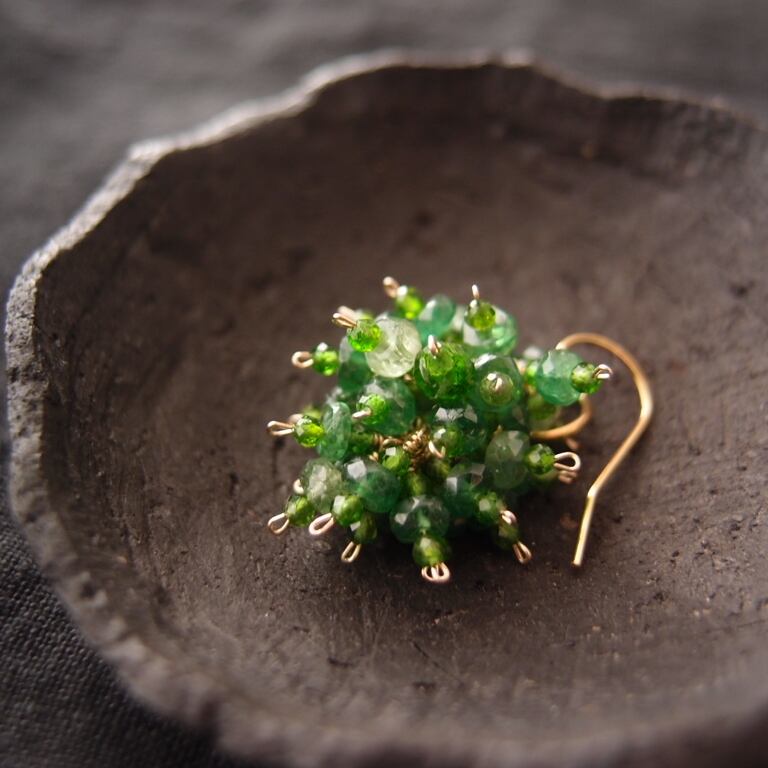 【K14gf・受注制作】Green Garnet Earrings/グリーンガーネット プチピアス(残りわずか)