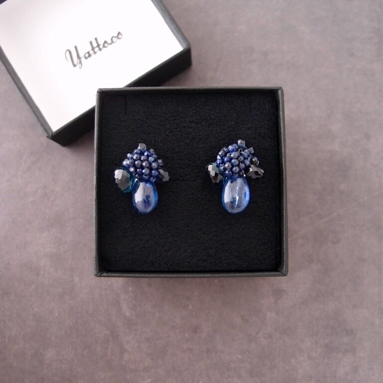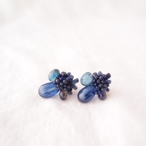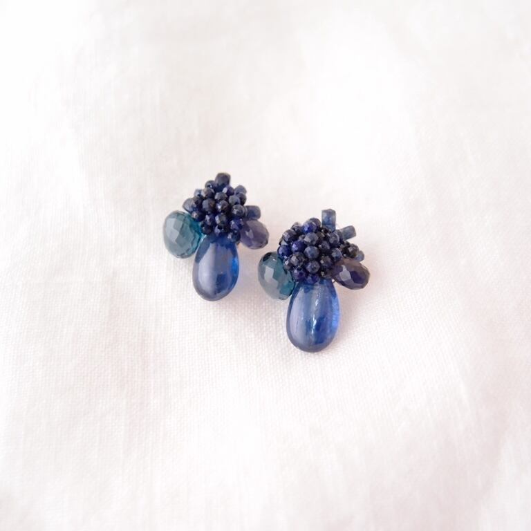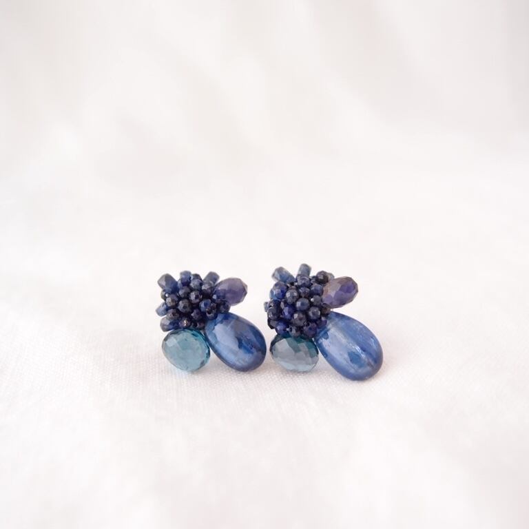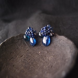 上質なロイヤルブルーカイヤナイトの刺繍ピアス。