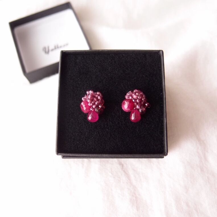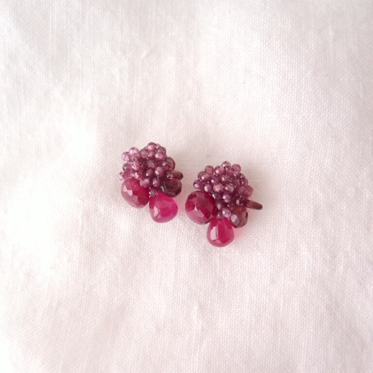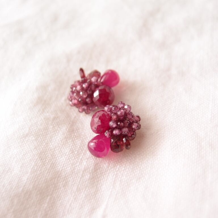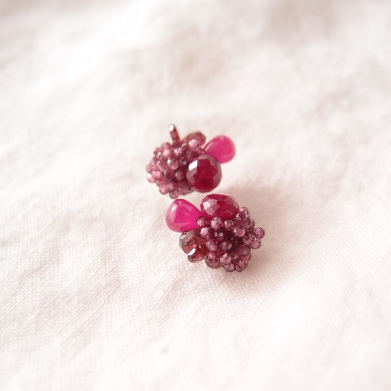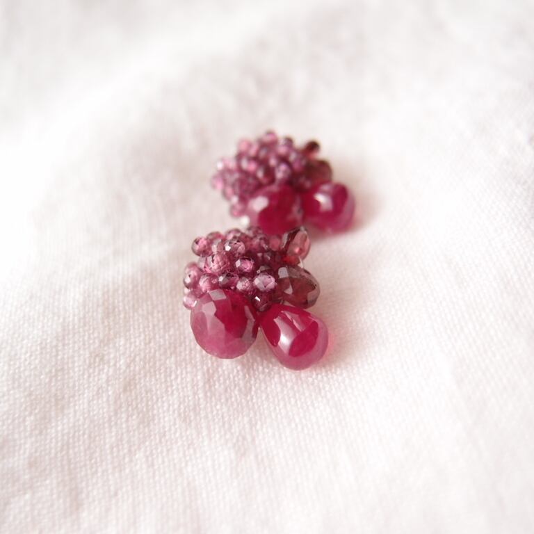【天然石刺繍/ピアス】 Ruby × Tourmaline × Rubellite × Garnet Earrings