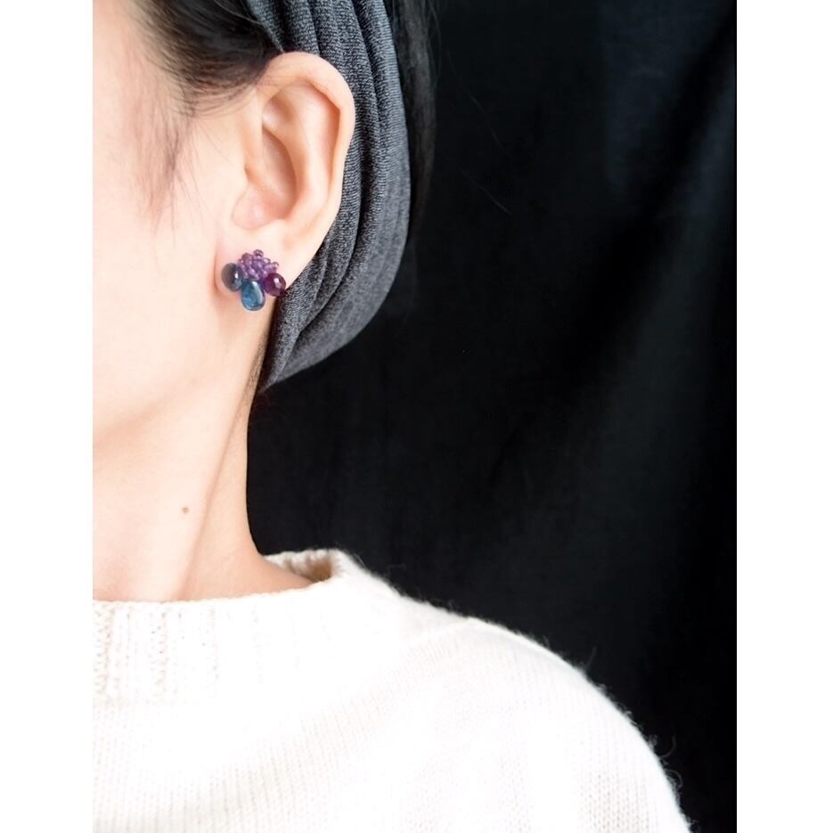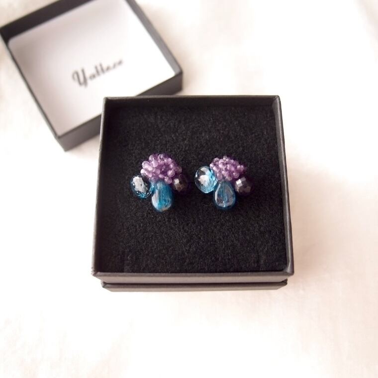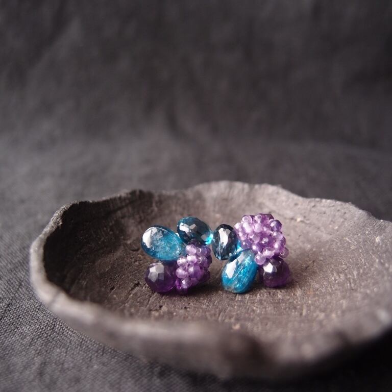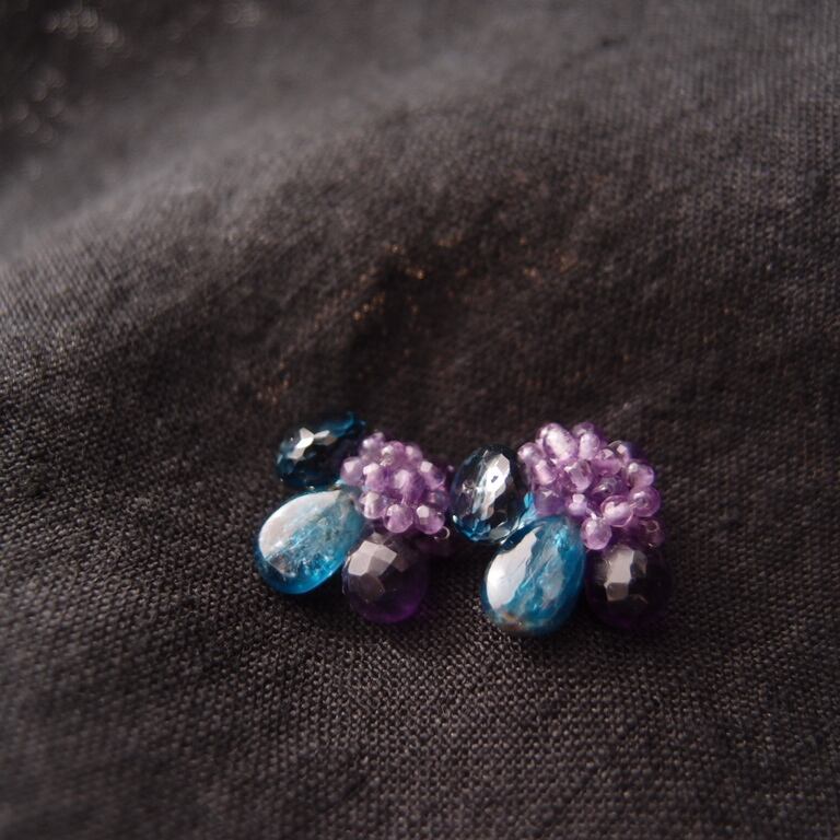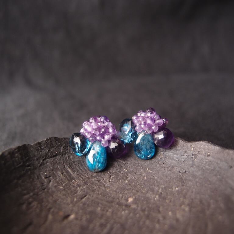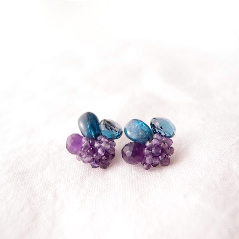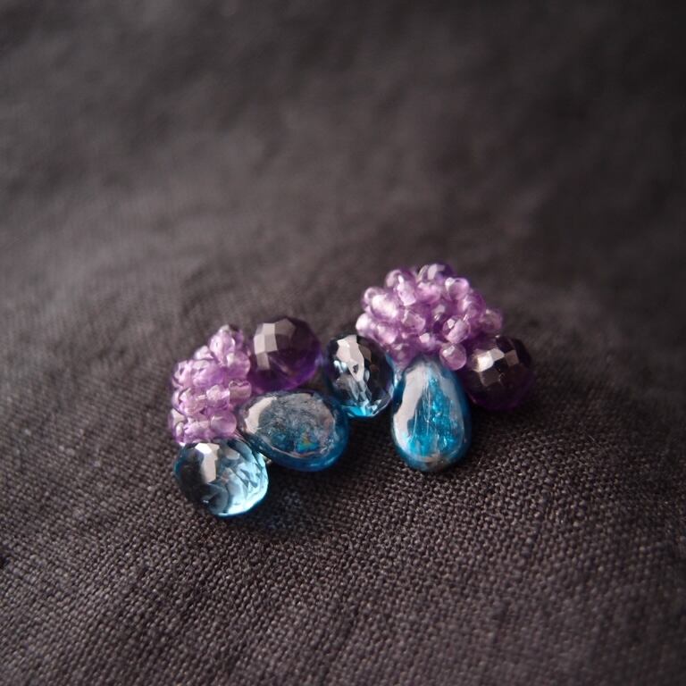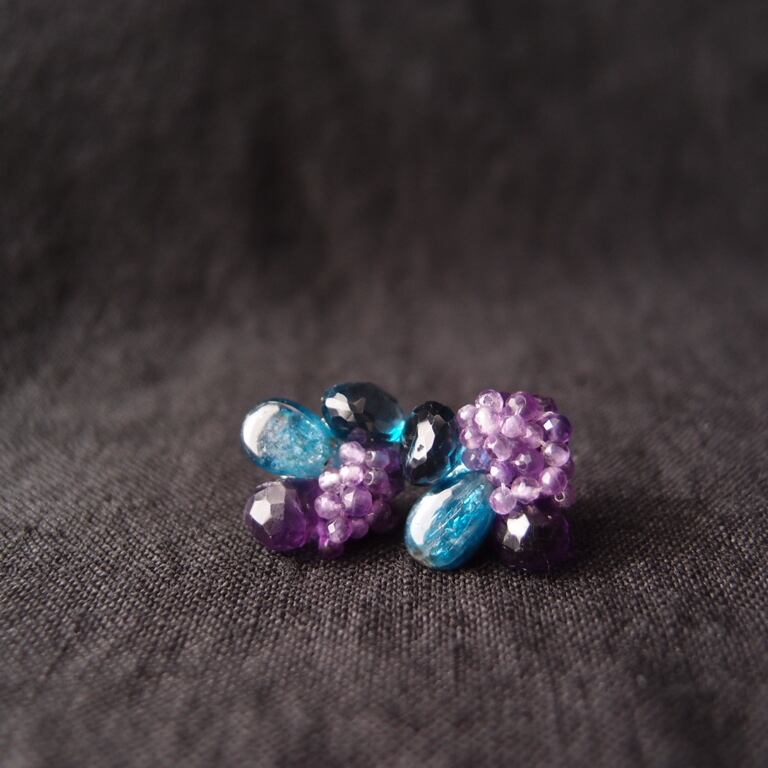 【天然石刺繍/ピアス】Peacock Blue Kyanite × Londonblue Topaz × Amethyst Earrings