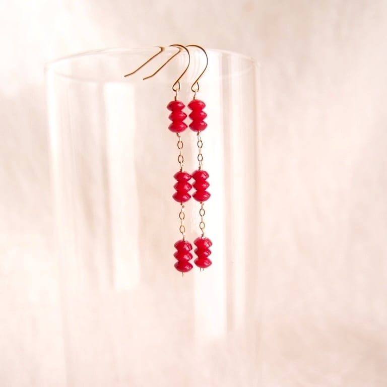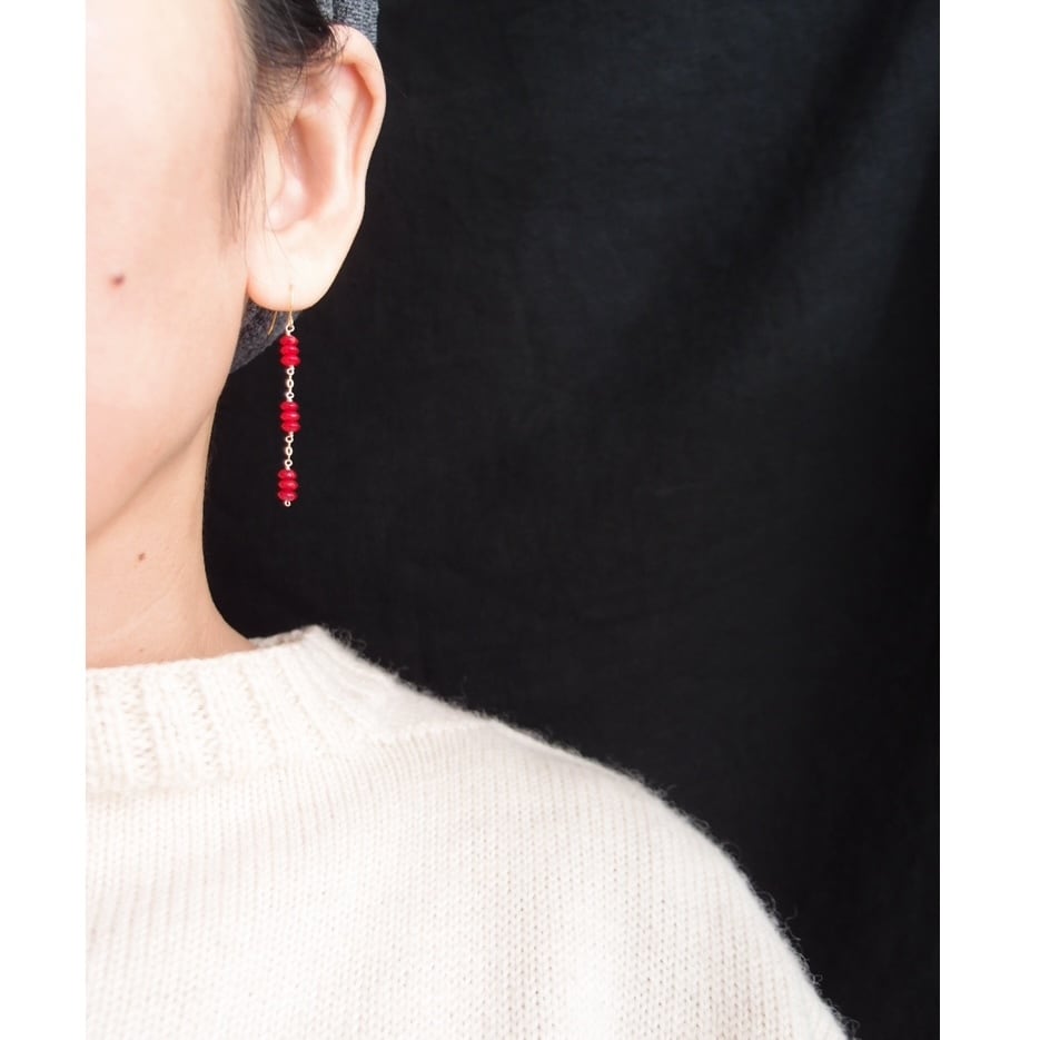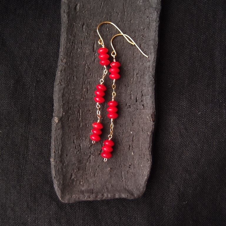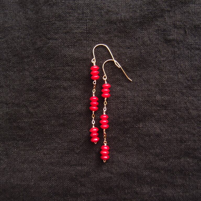 【K14gf・受注制作】Redcoral Long Earrings/レッドコーラル ロングピアス