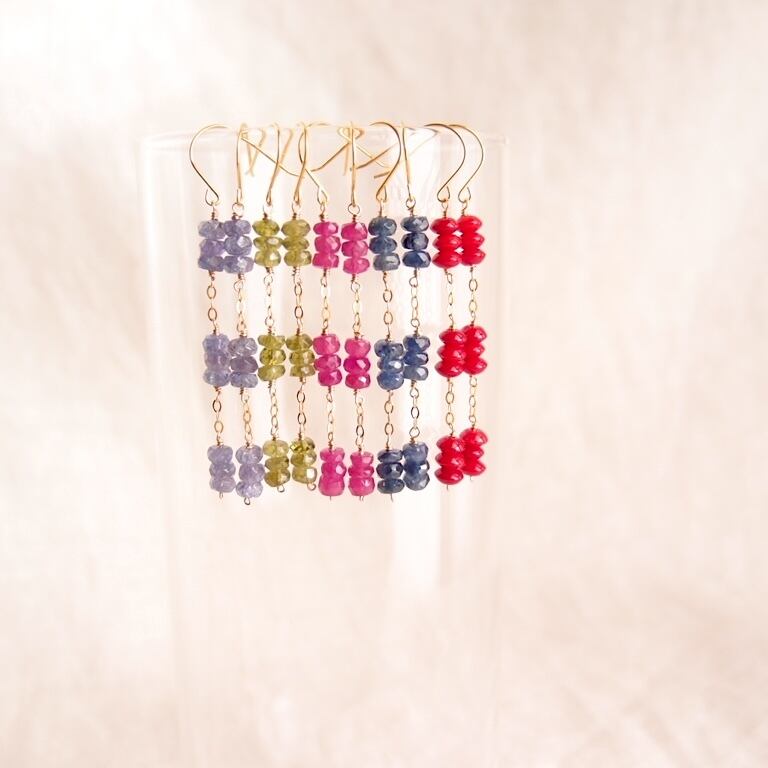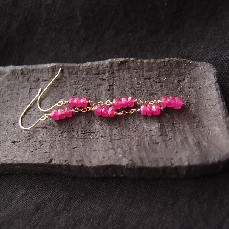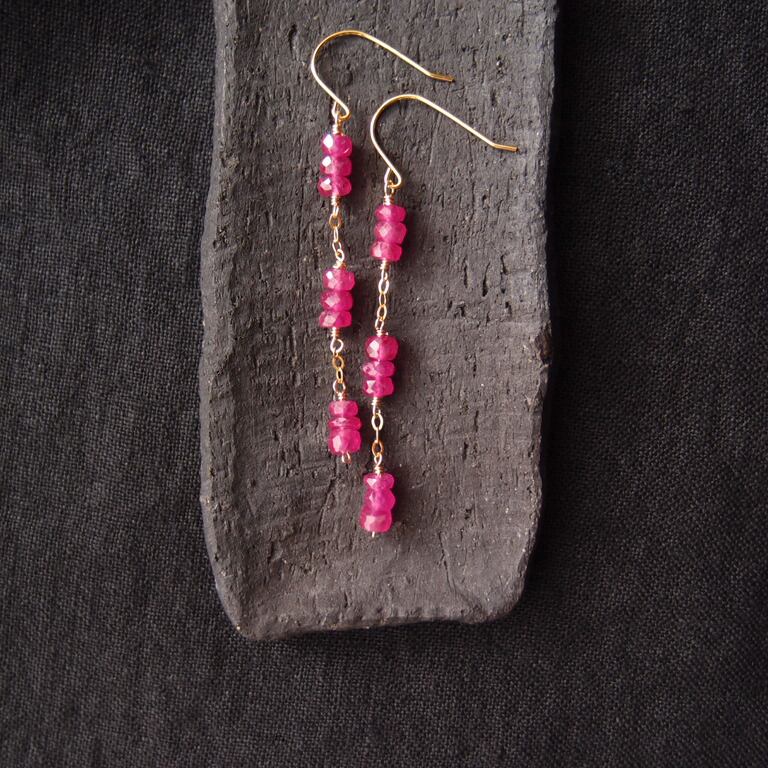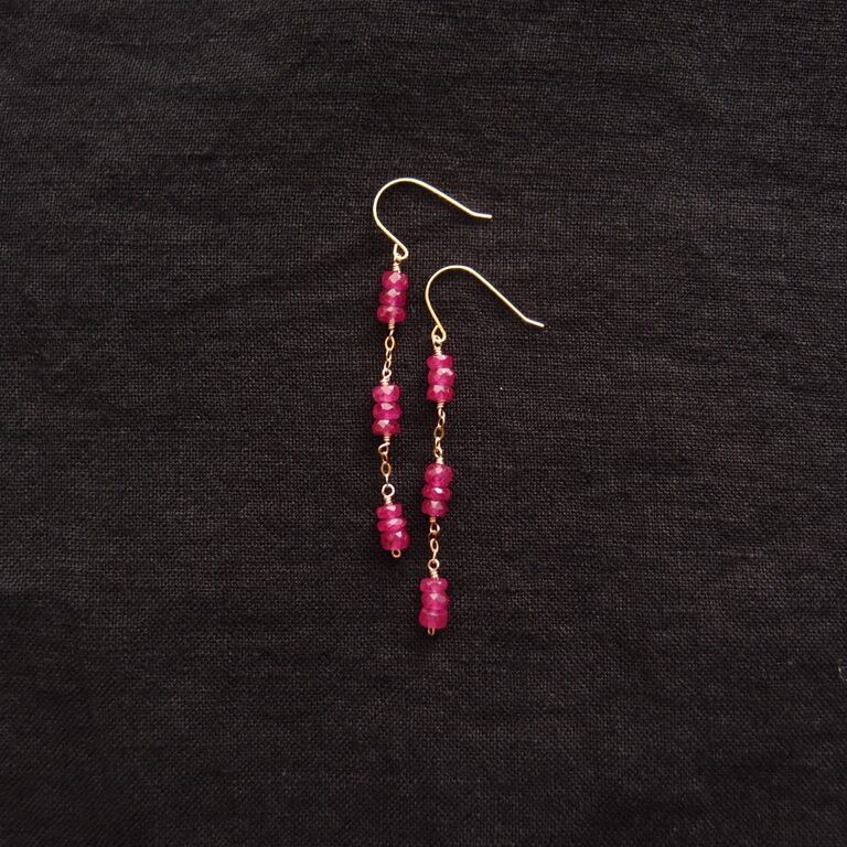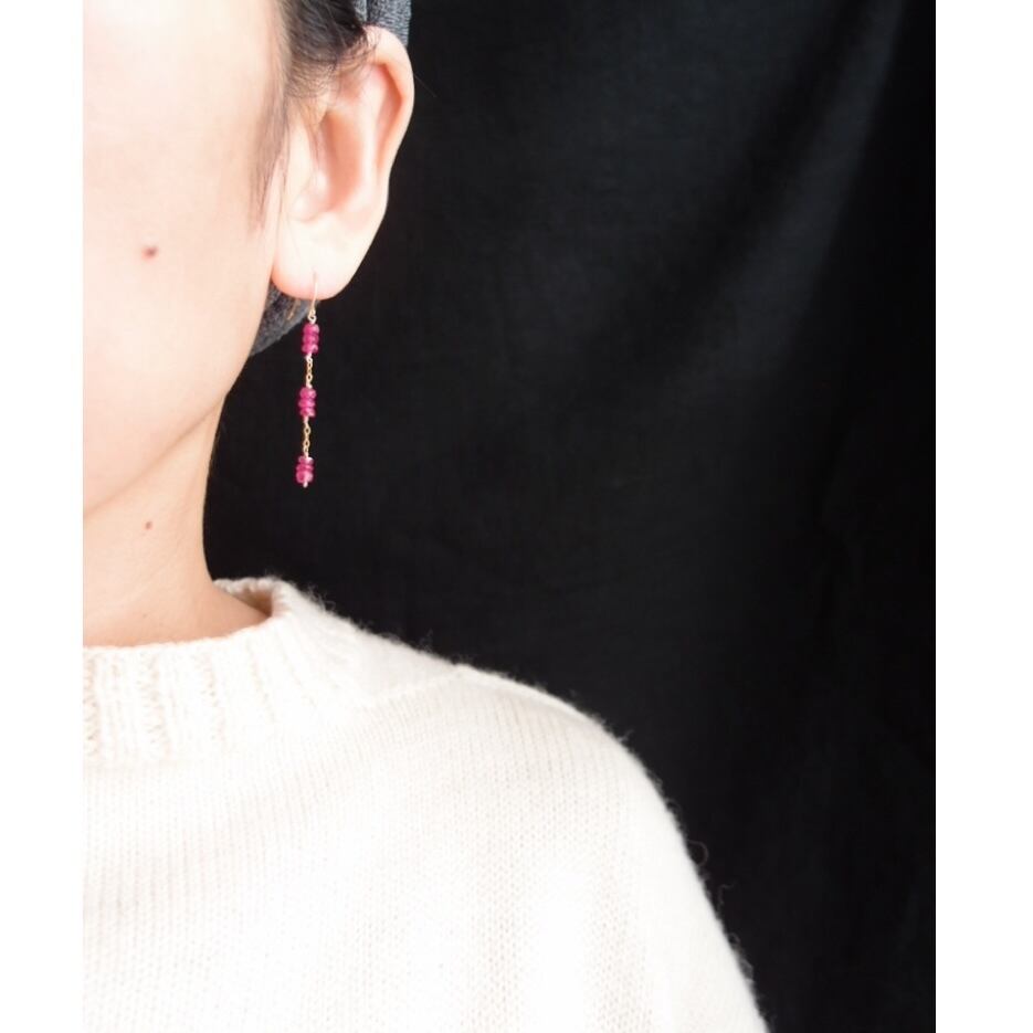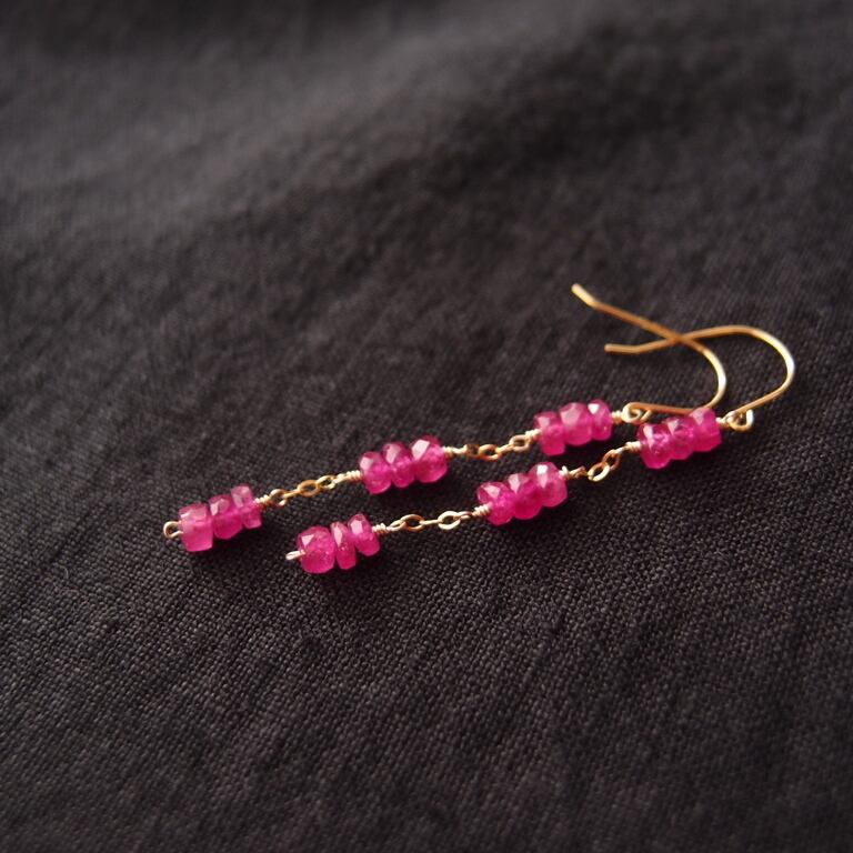【K14gf】Ruby Long Earrings/宝石質ルビー ロングピアス