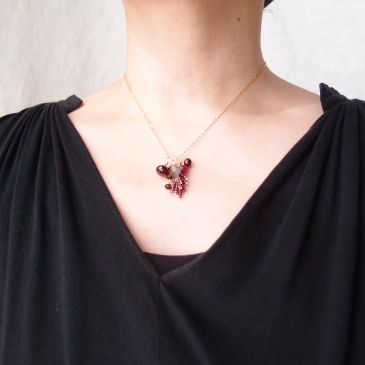 つぶつぶガーネットは、うっすら紫&ワインの2種類を使用。
