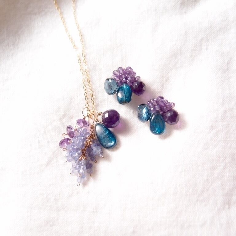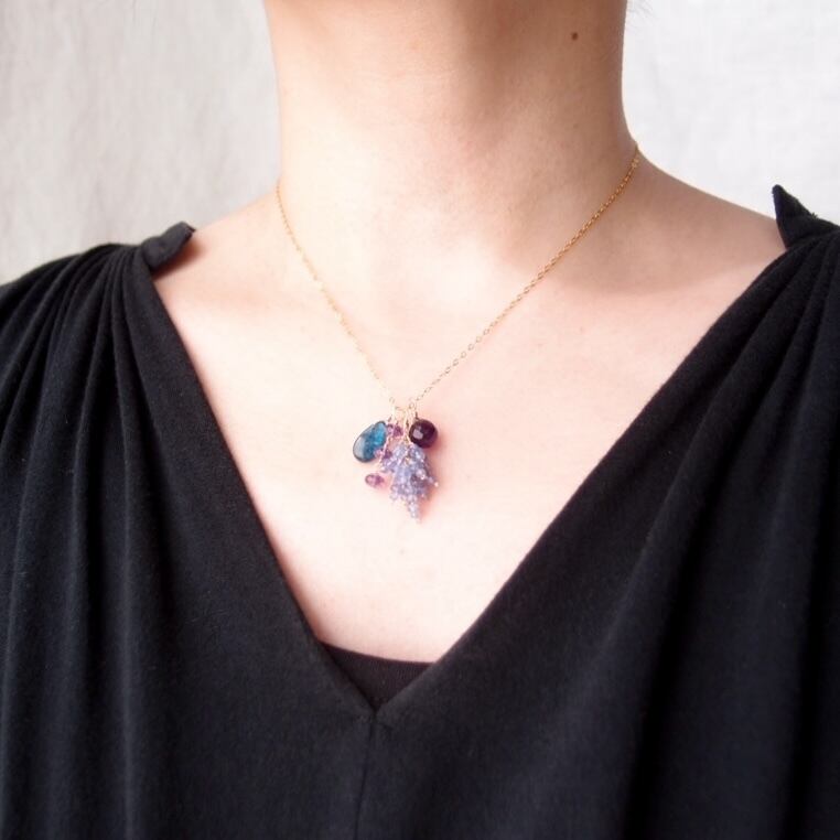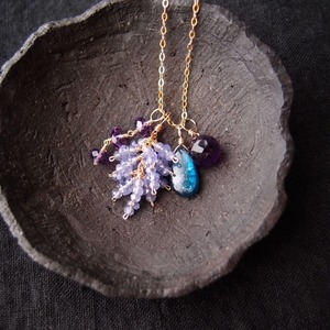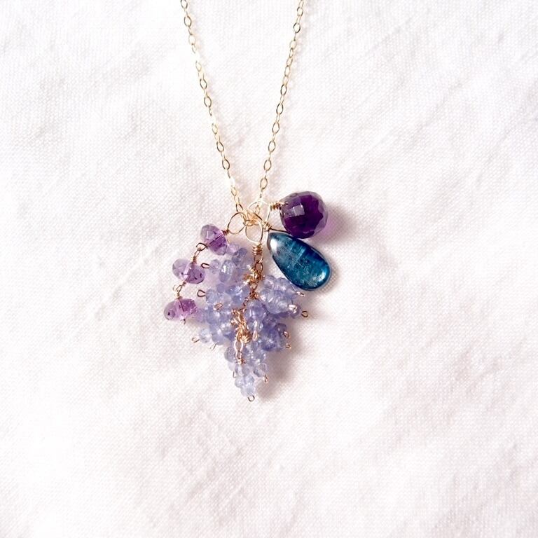 Necklace Charm Set【K14gf】Peacock Blue Kyanite × Tanzanite × Amethyst