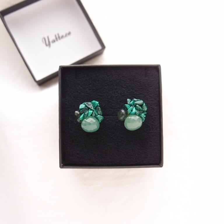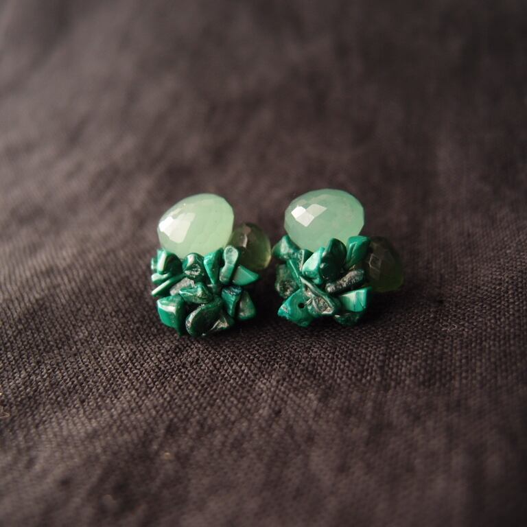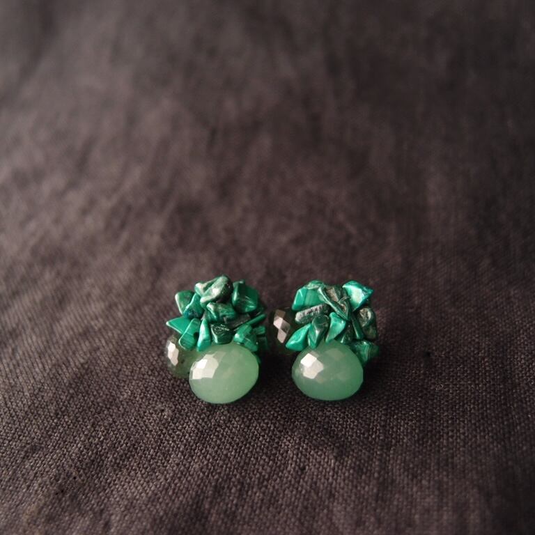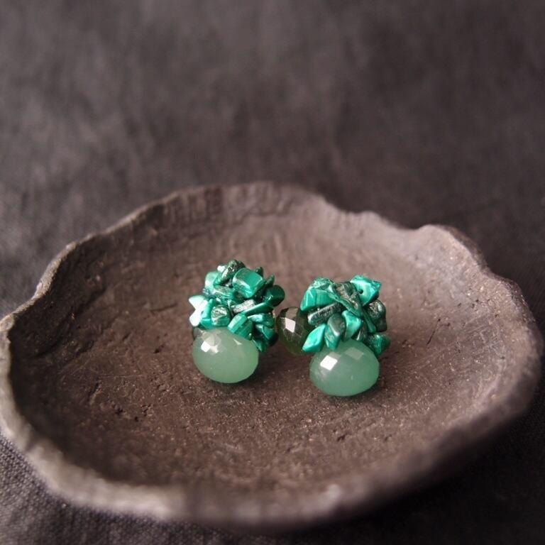 【天然石刺繍/ピアス】Malachite × Aventurine × Serpentine