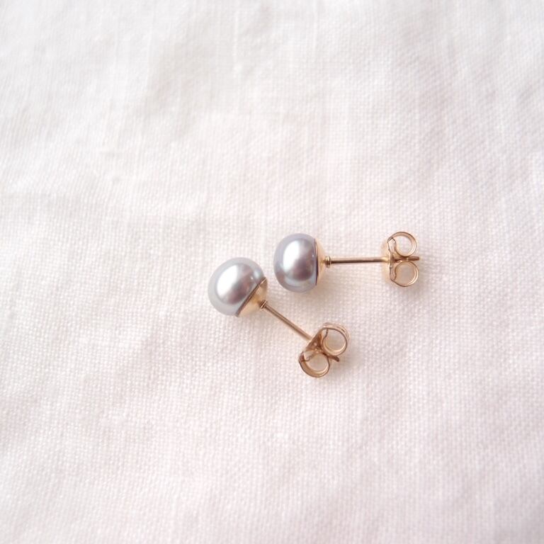 【K14gf】Baby Baroque Pearl Earrings/Gray・ベビーバロックパール スタッドピアス(S)