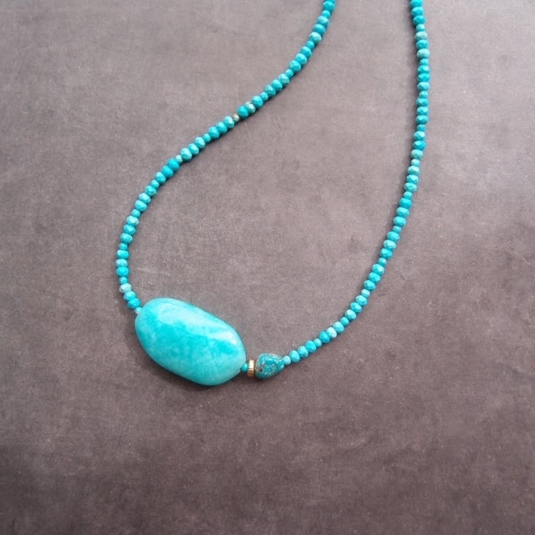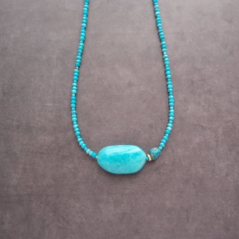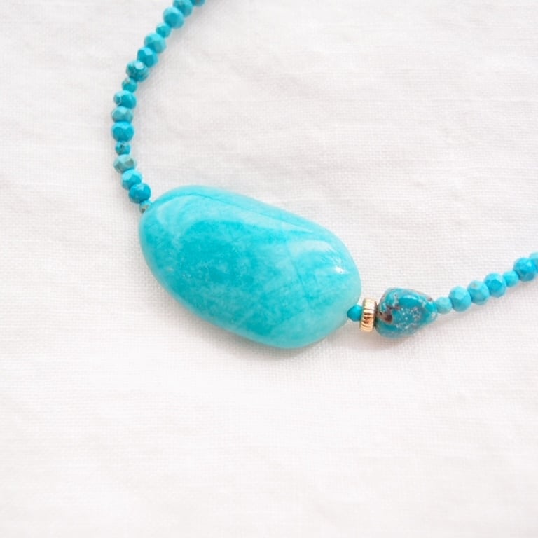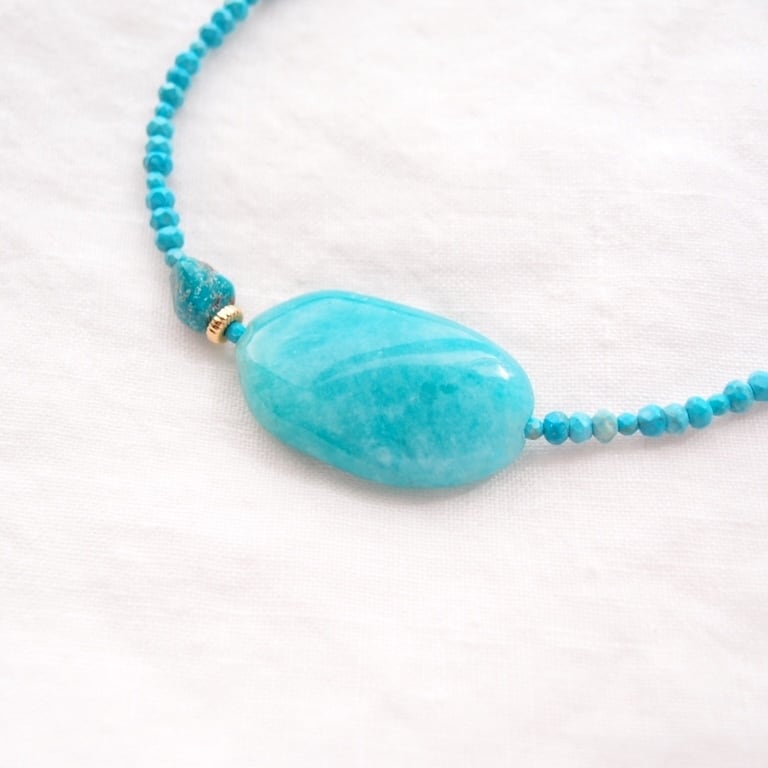 大粒のアマゾナイトが目を惹く、