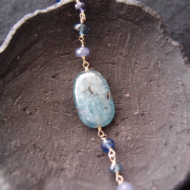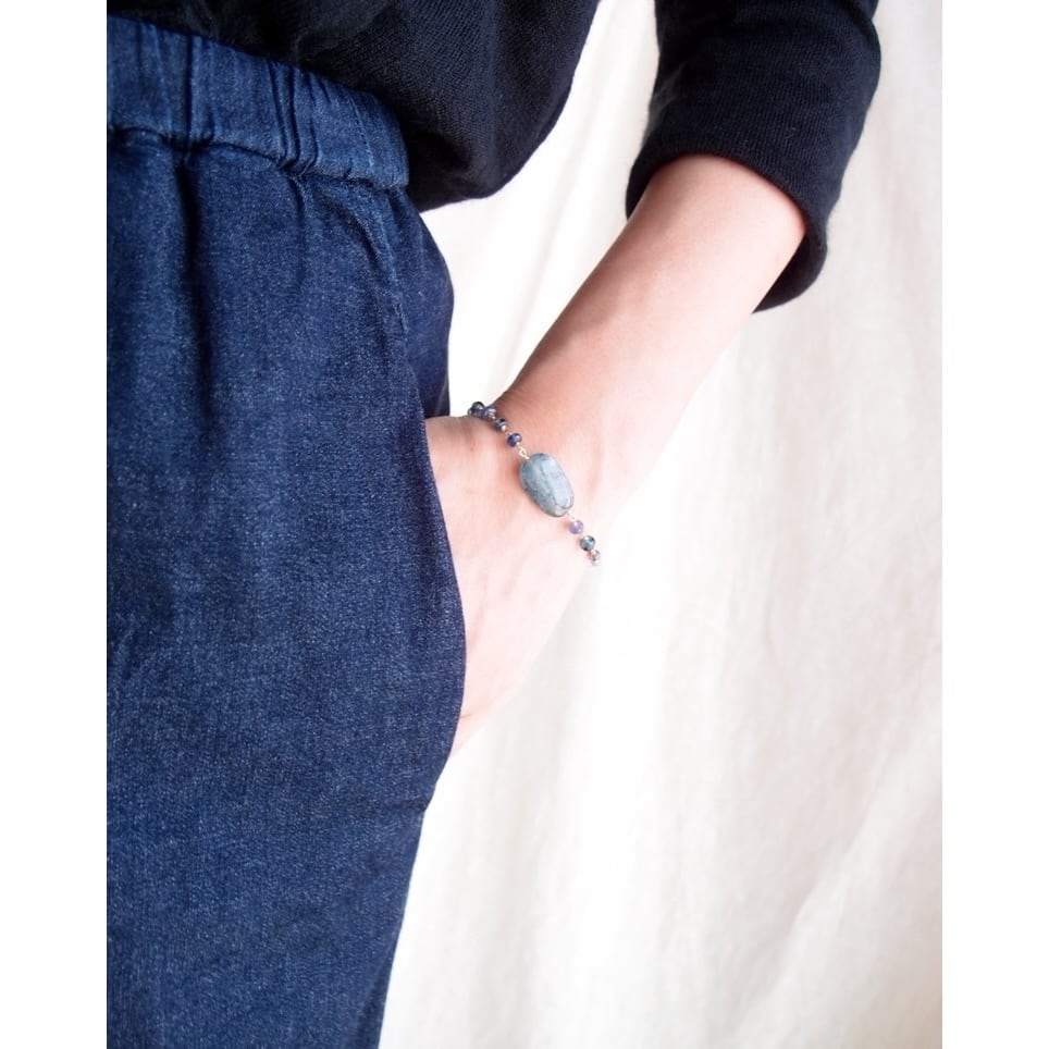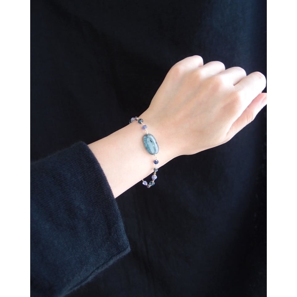 カイヤナイトが印象的な青いブレスレット。