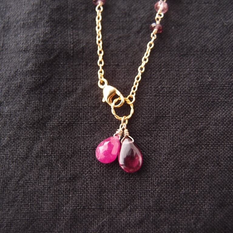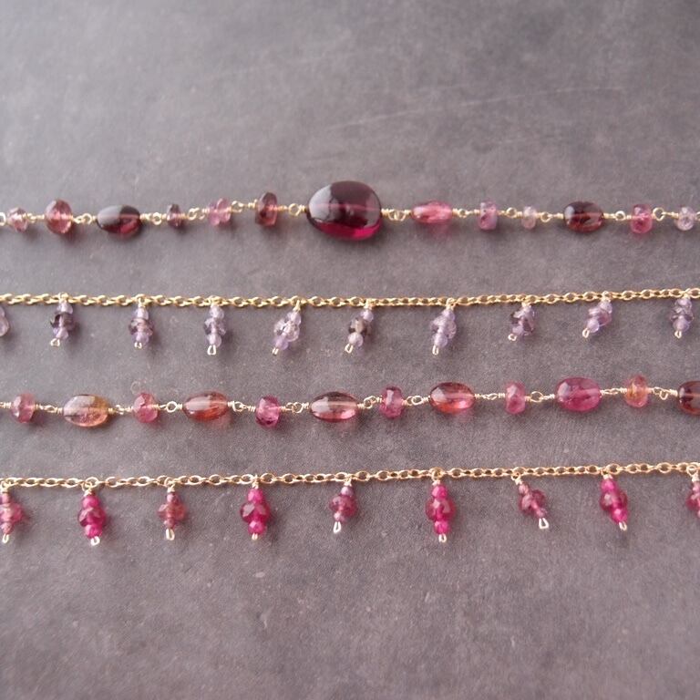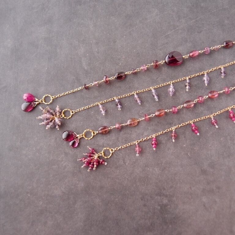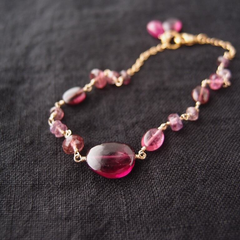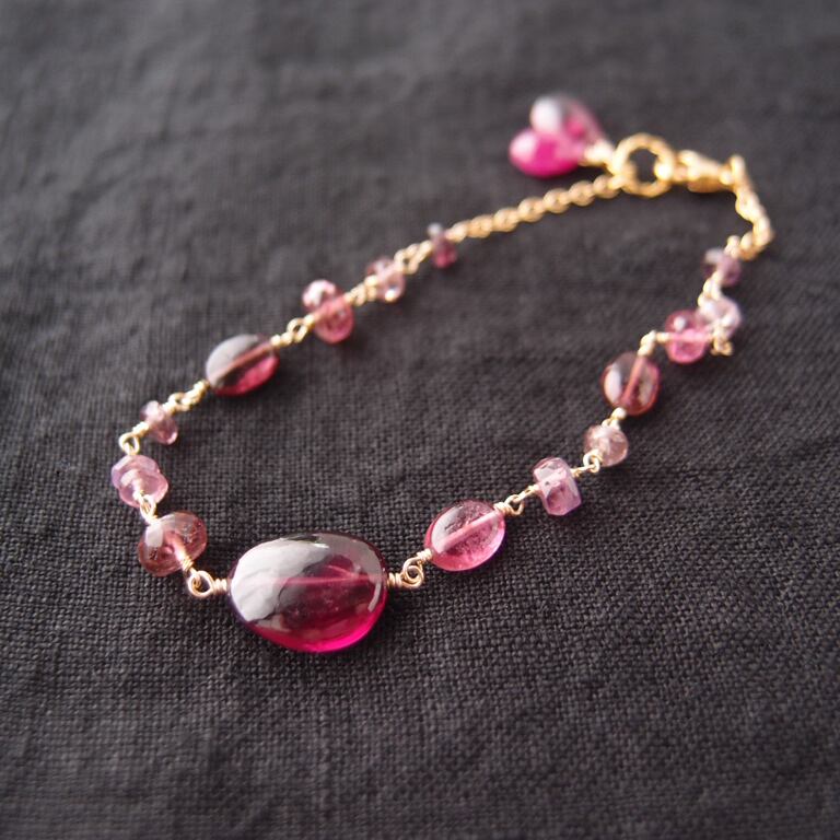 【K14gf】Rhodolite Garnet Mixed Stone Bracelet/ロードライトガーネット ブレスレット