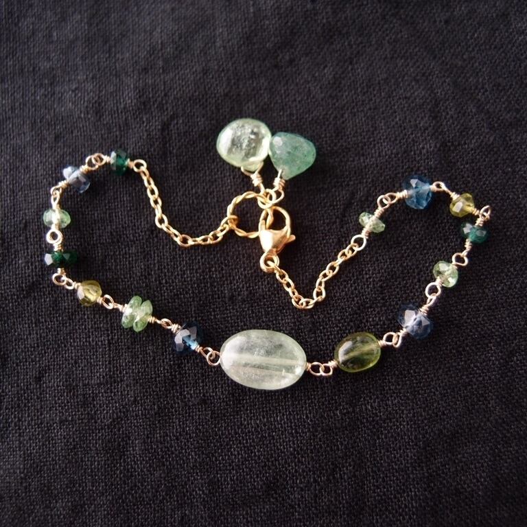【K14gf】Green Kyanite Mixed Stone Bracelet/グリーンカイヤナイト ブレスレット