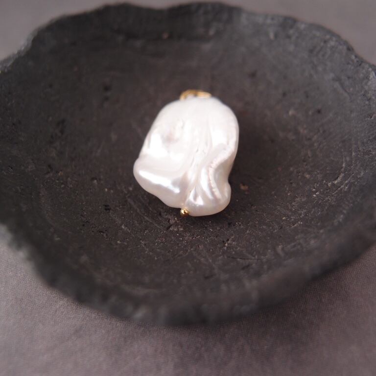 自然のなかで偶然につくられたフォルムが美しい、ビワパールのネックレスチャーム。