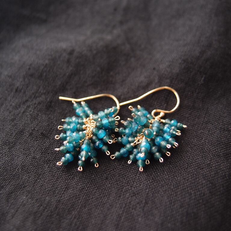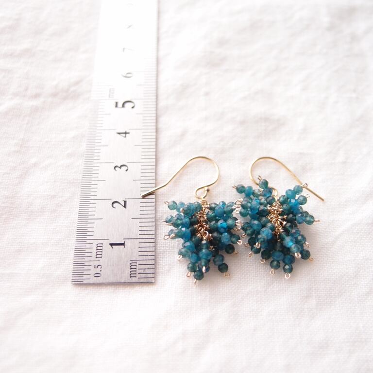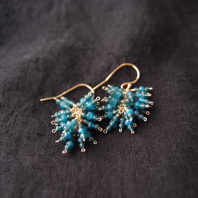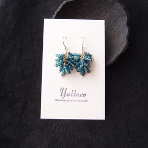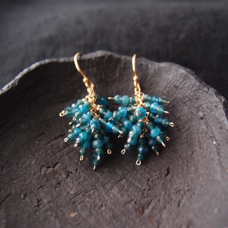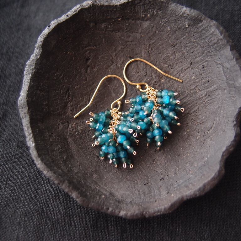 【K14gf】Blue Green Jade × Apatite Earrings/ブルーグリーンジェード×アパタイト フリンジピアス(Dark)