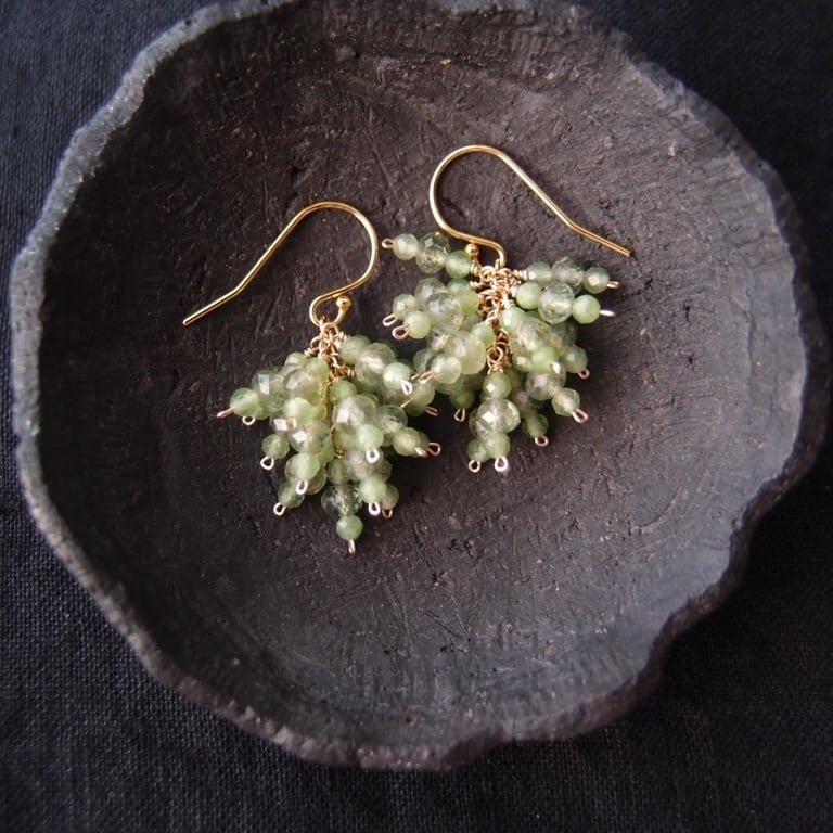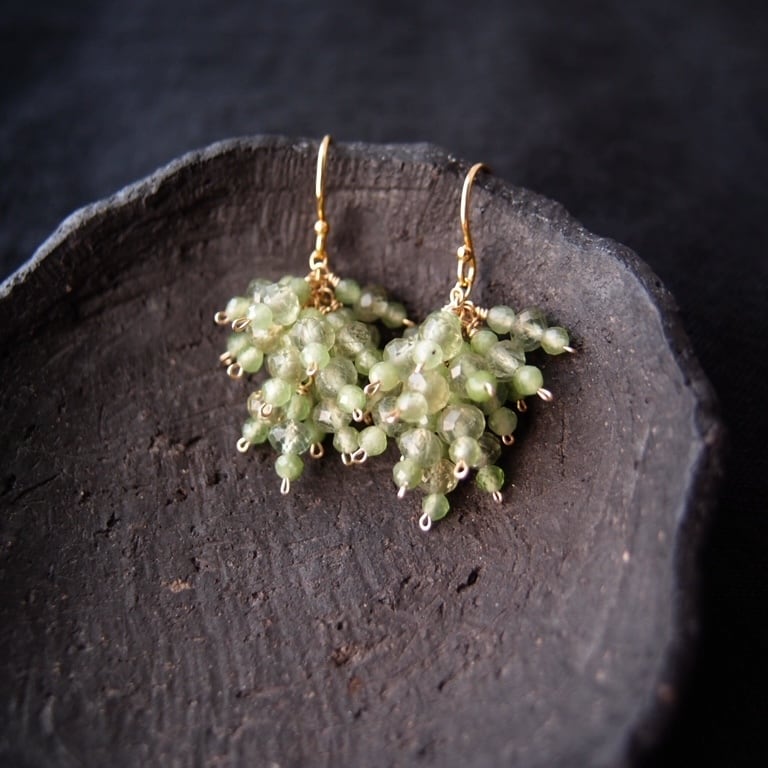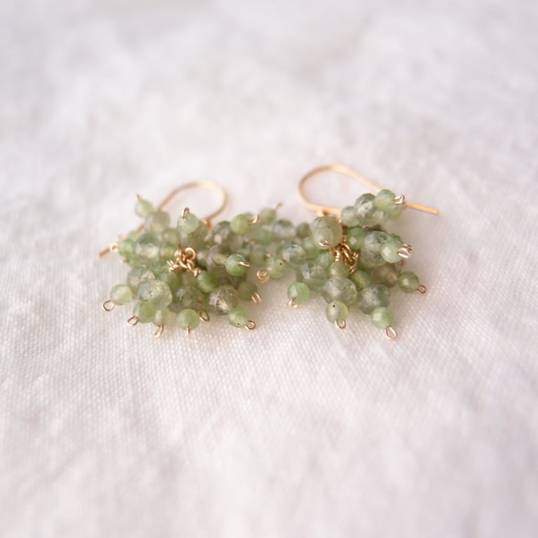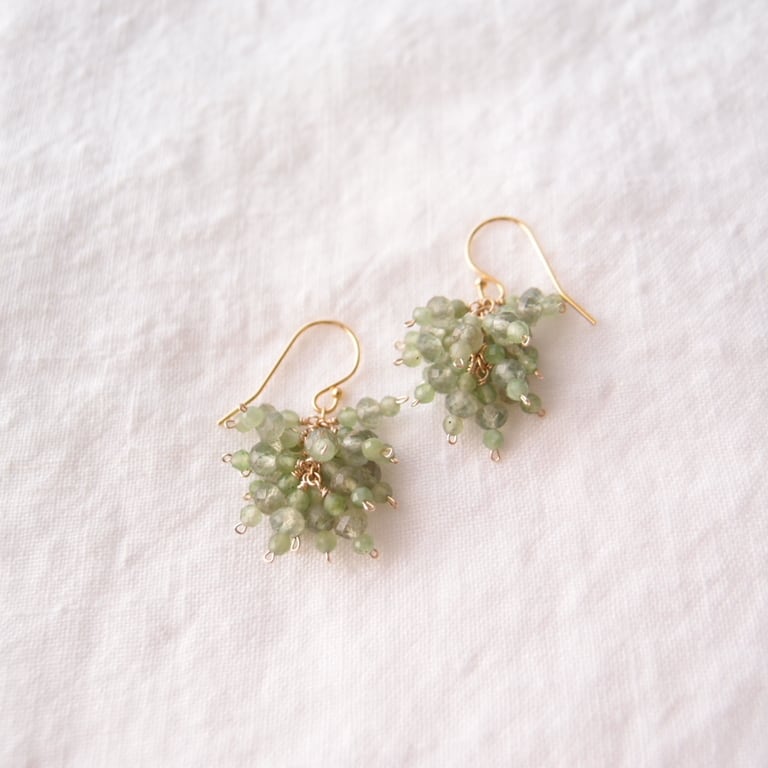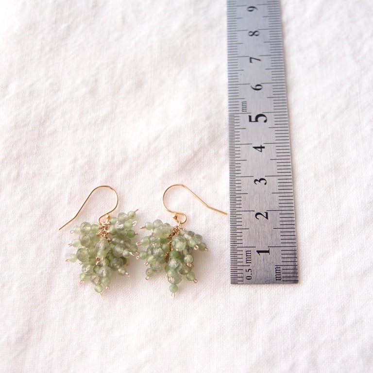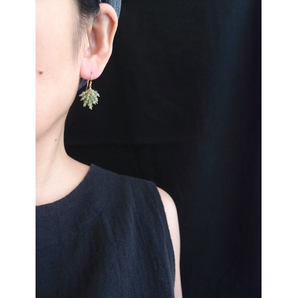 【K14gf】Green Apatite × Nephrite Earrings/グリーンアパタイト×ネフライト フリンジピアス
