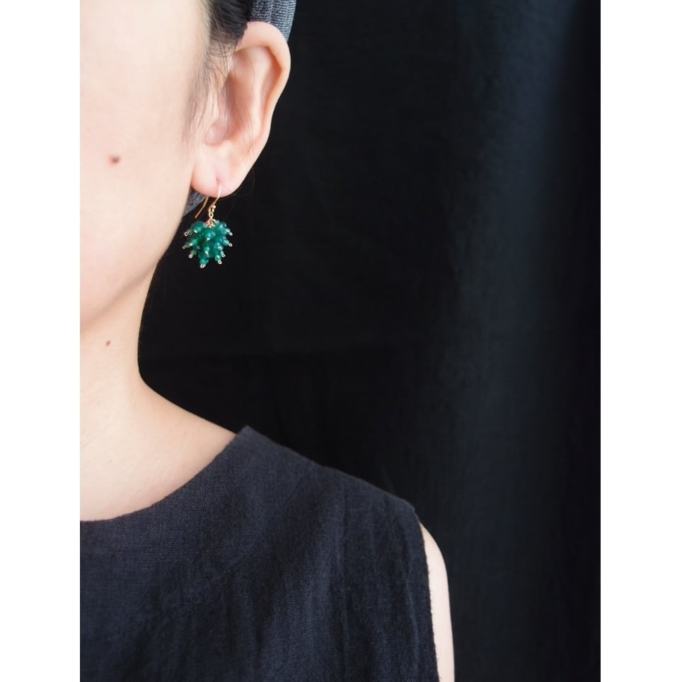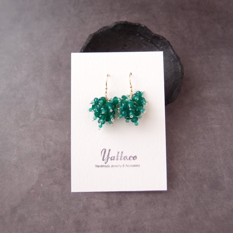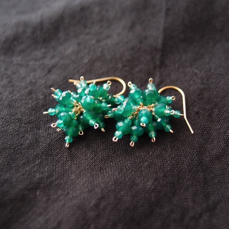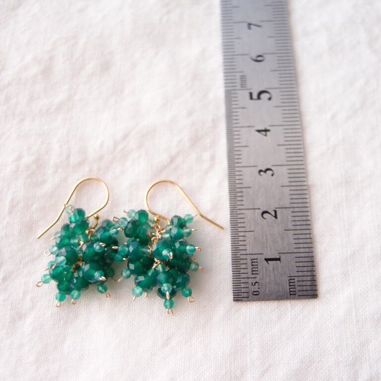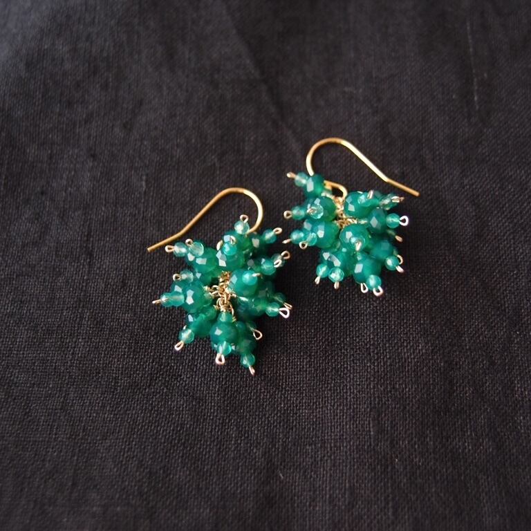 【K14gf】Green Onyx Earrings/グリーンオニキス フリンジピアス
