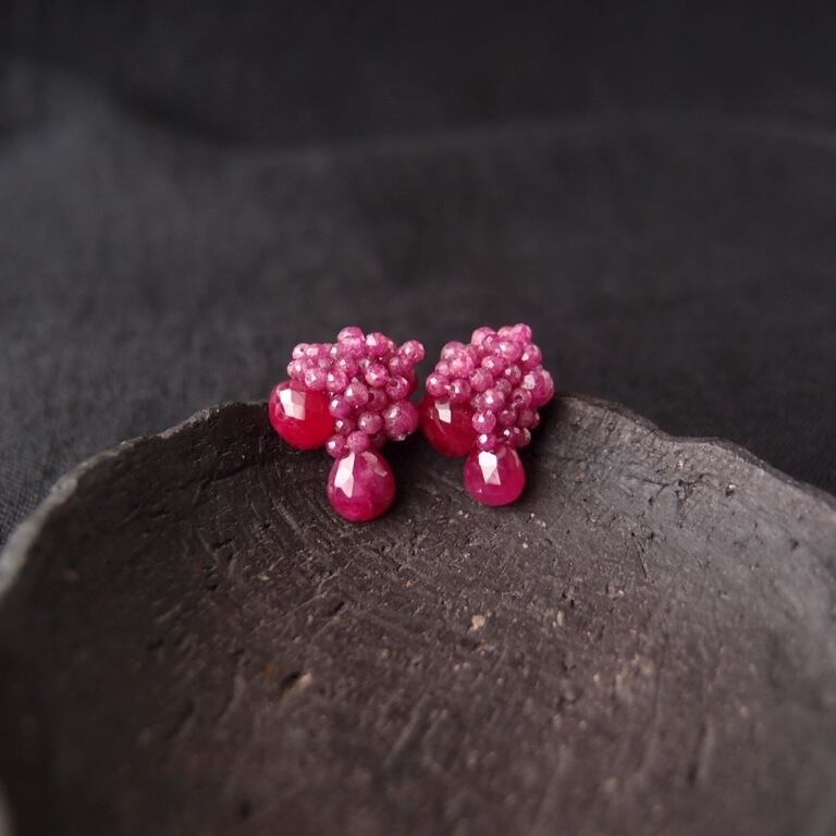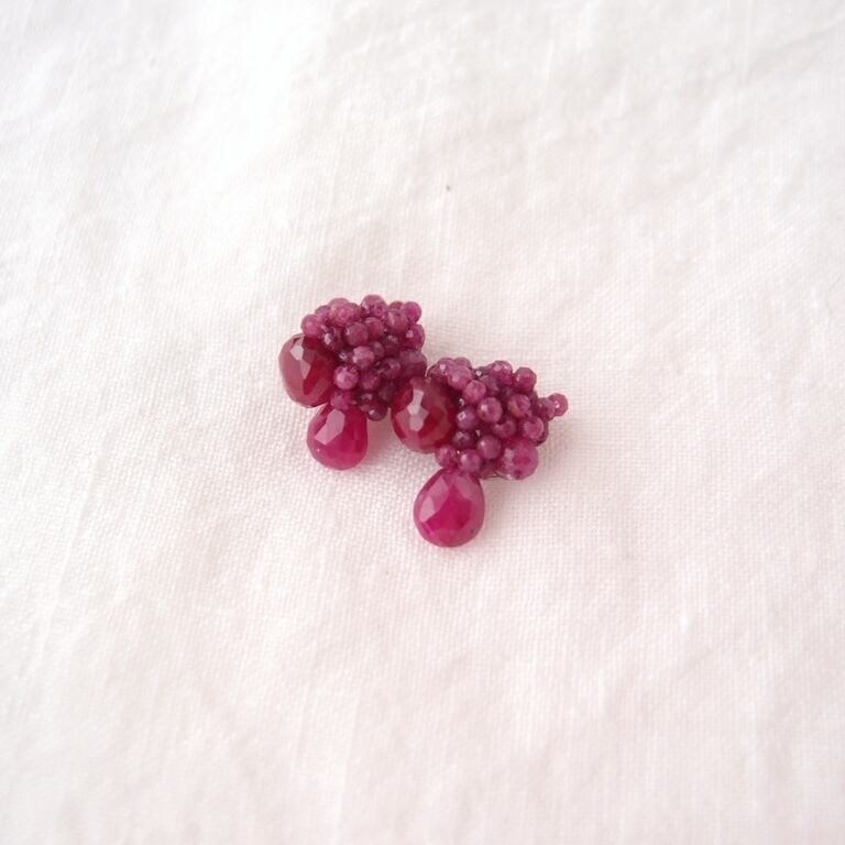 【天然石刺繍/ピアス】Ruby Earrings(Dark)