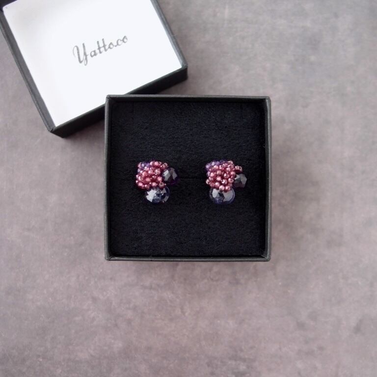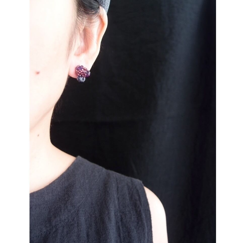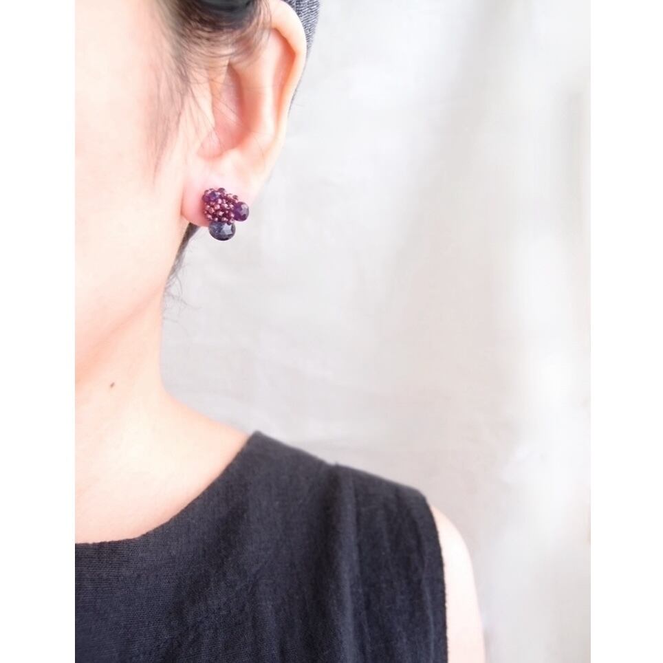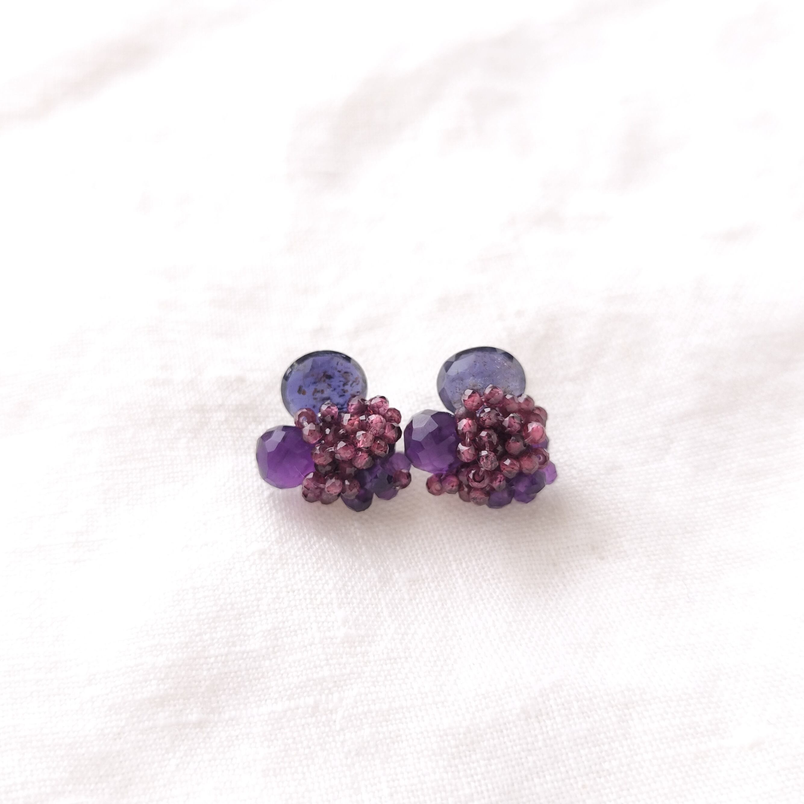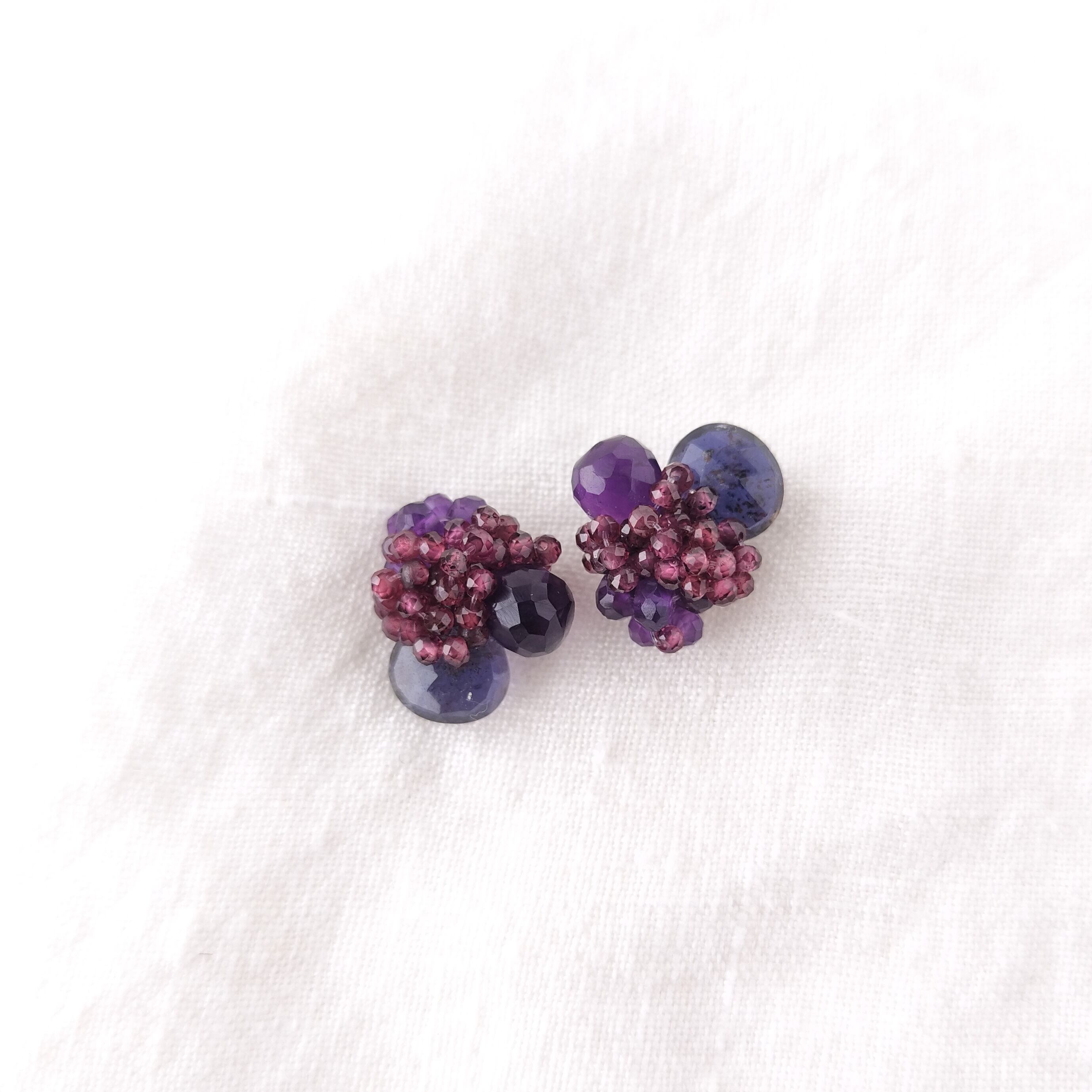 【天然石刺繍/ピアス 】Rhodolite Garnet × Amethyst × Iolite Earrings