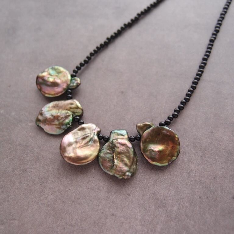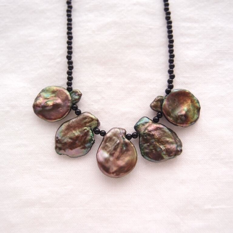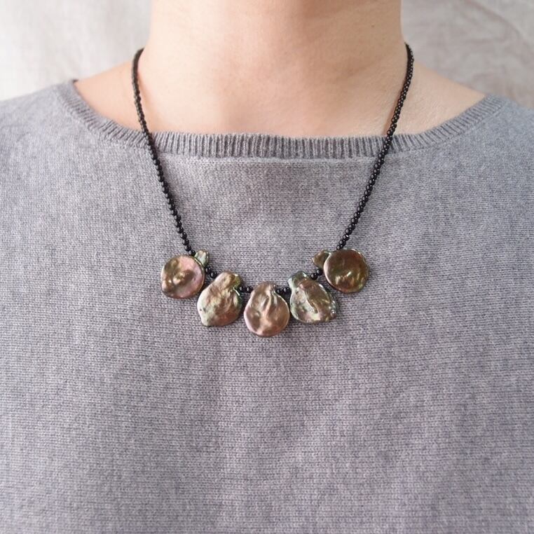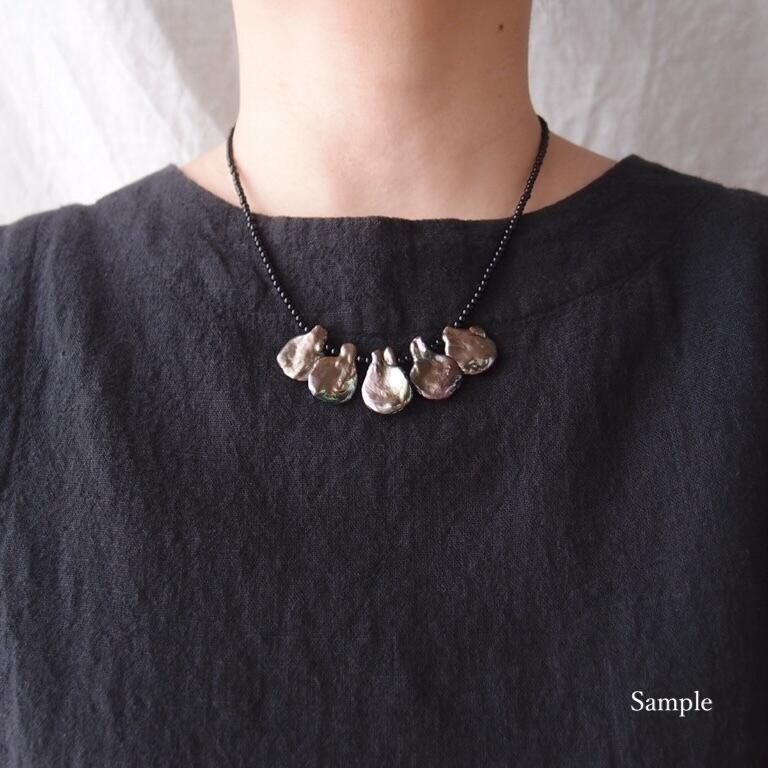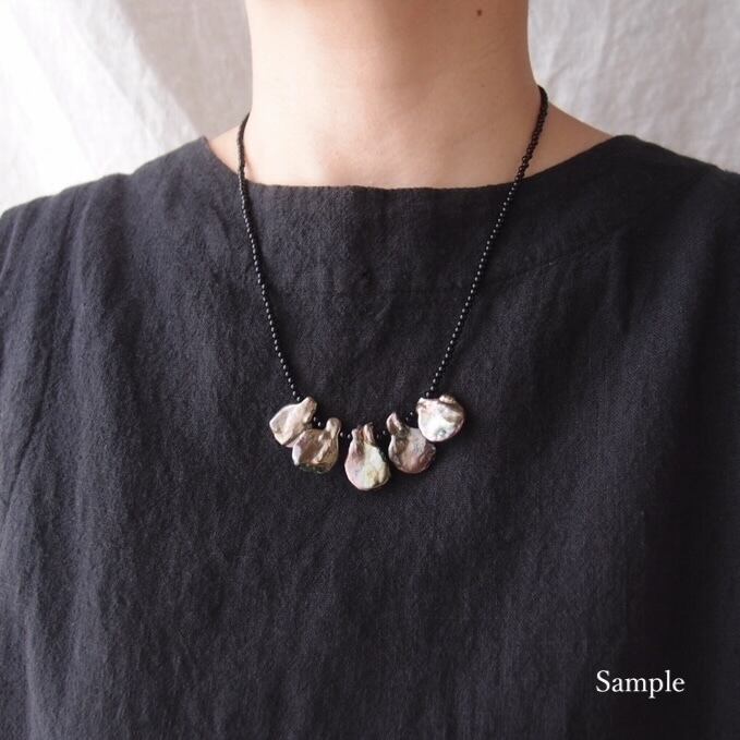 再入荷/Petal Pearl × Black Onyx Necklace/ブラックパール×オニキス ネックレス