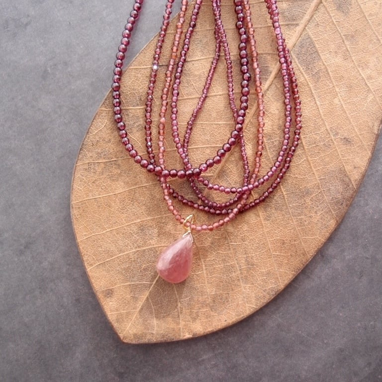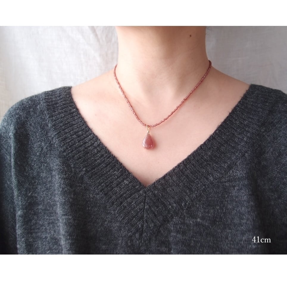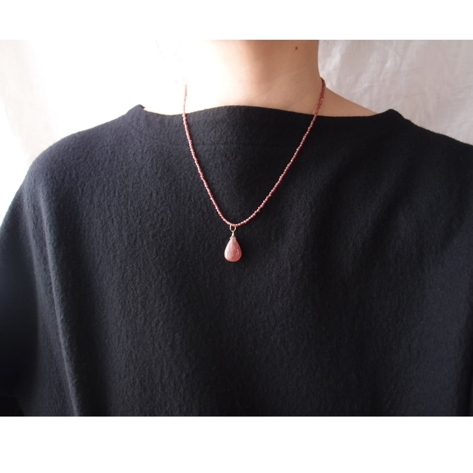 【K14gf】Colored Stone Plane Necklace+Charm Set/プレーンネックレス+チャームセット(garnet × sapphire)