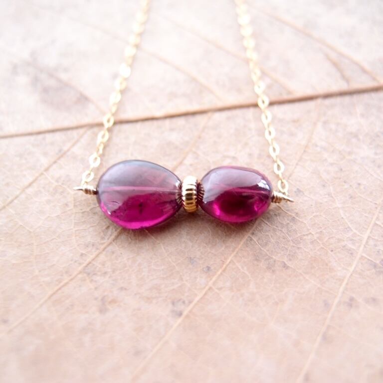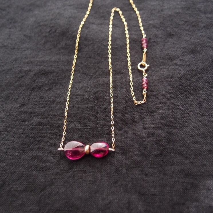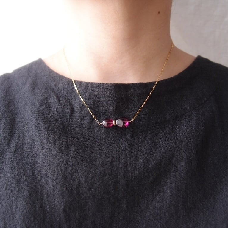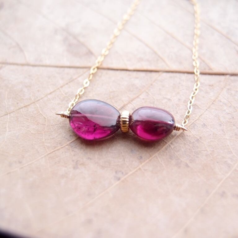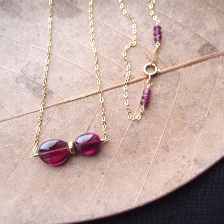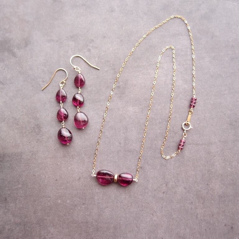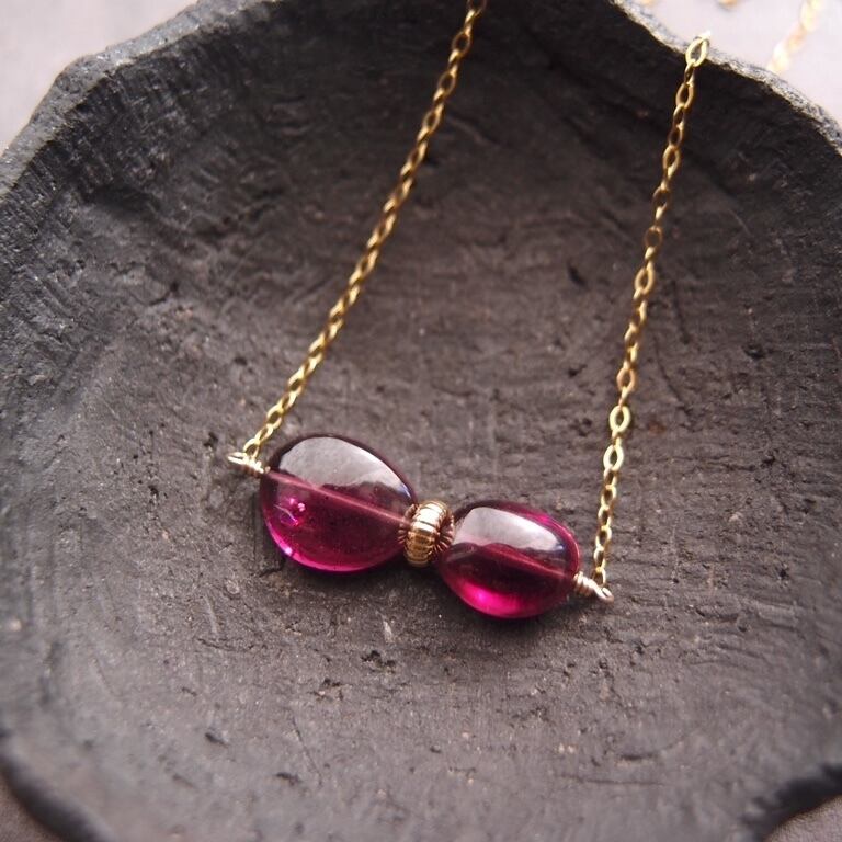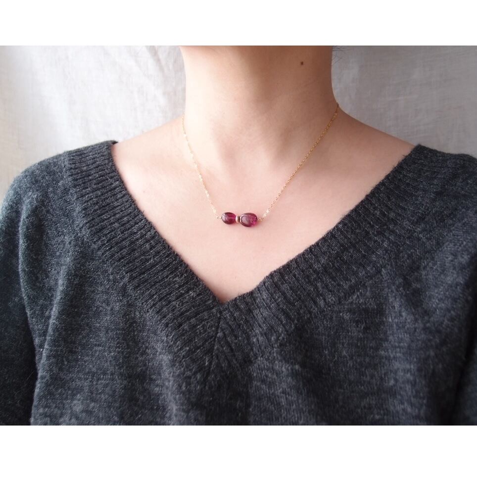 宝石質ロードライトガーネットのネックレス。